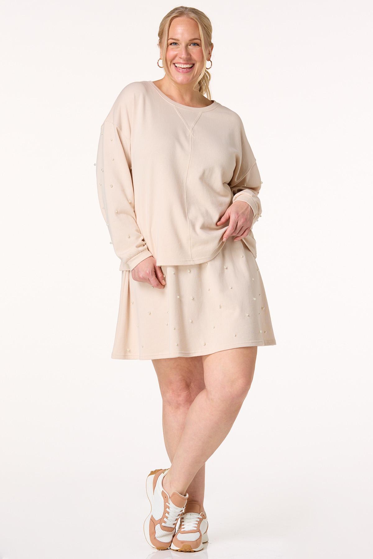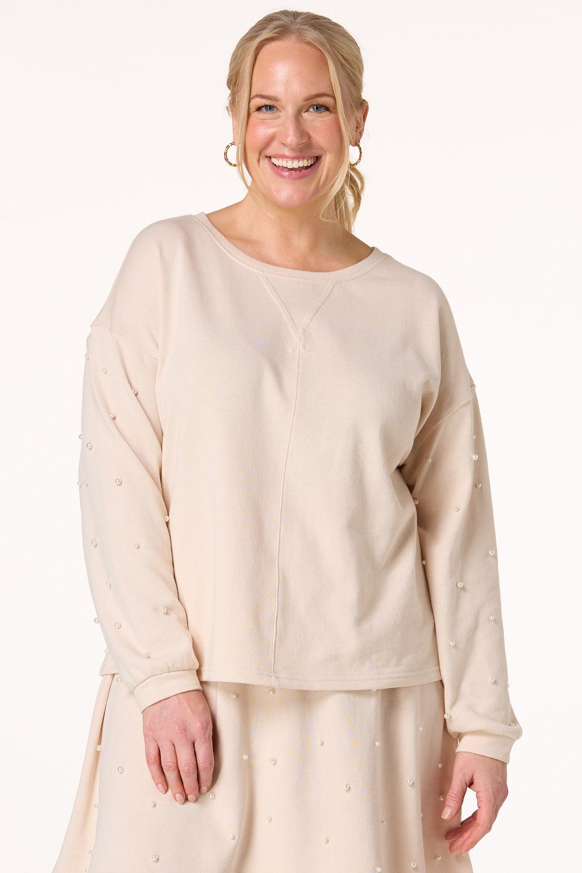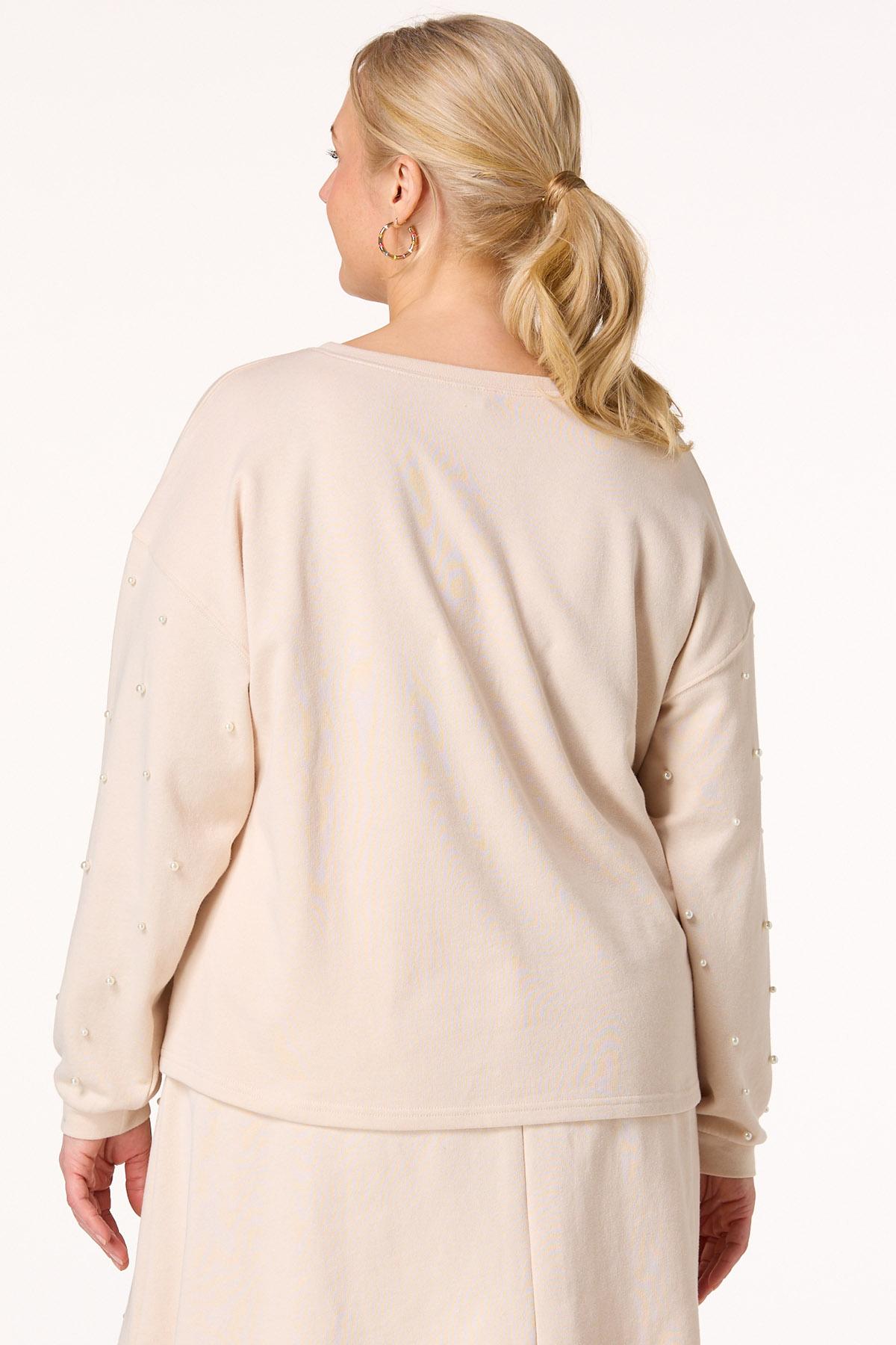 Plus Size French Terry Pearl Embellished Sweatshirt