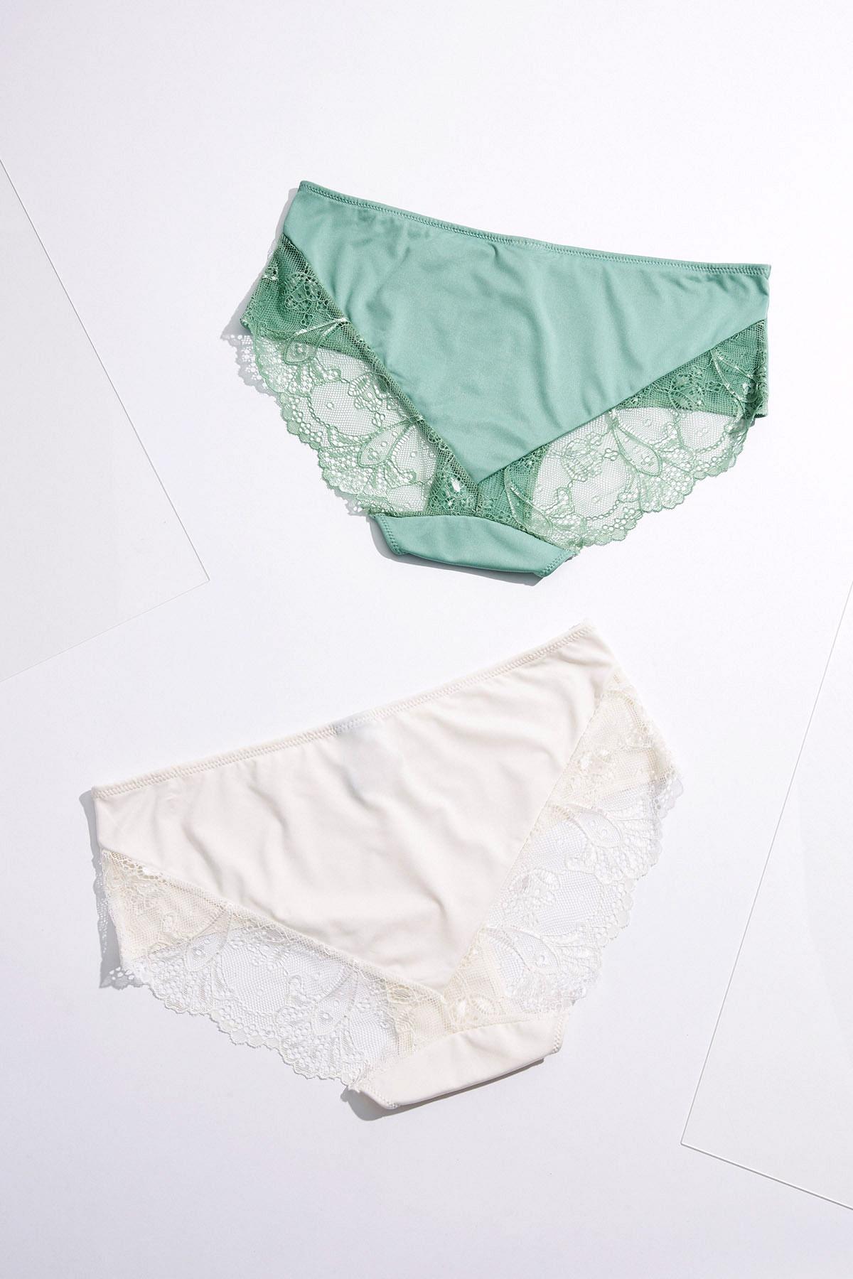 Plus Size Green Ivory Lace Hipster Panty Set