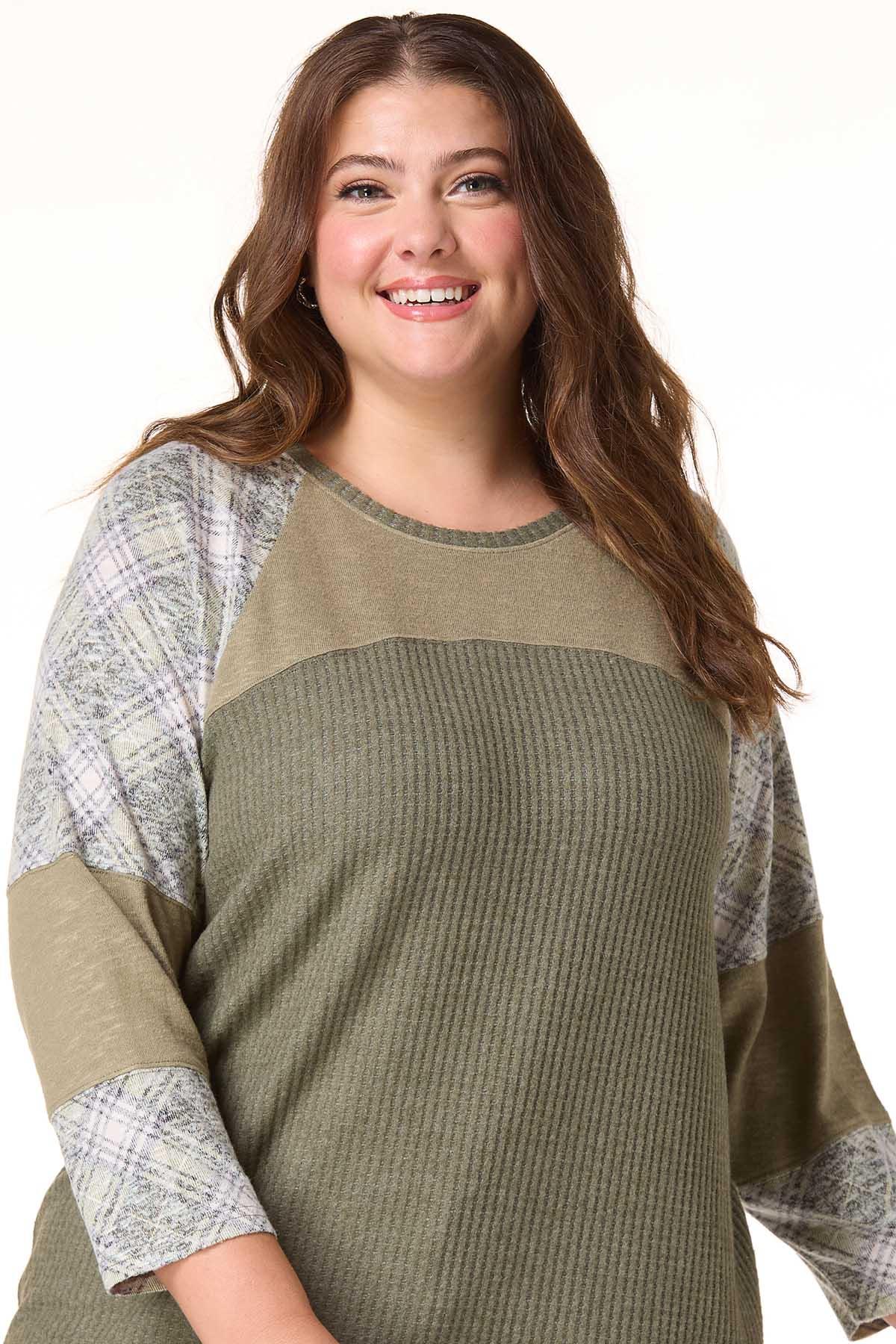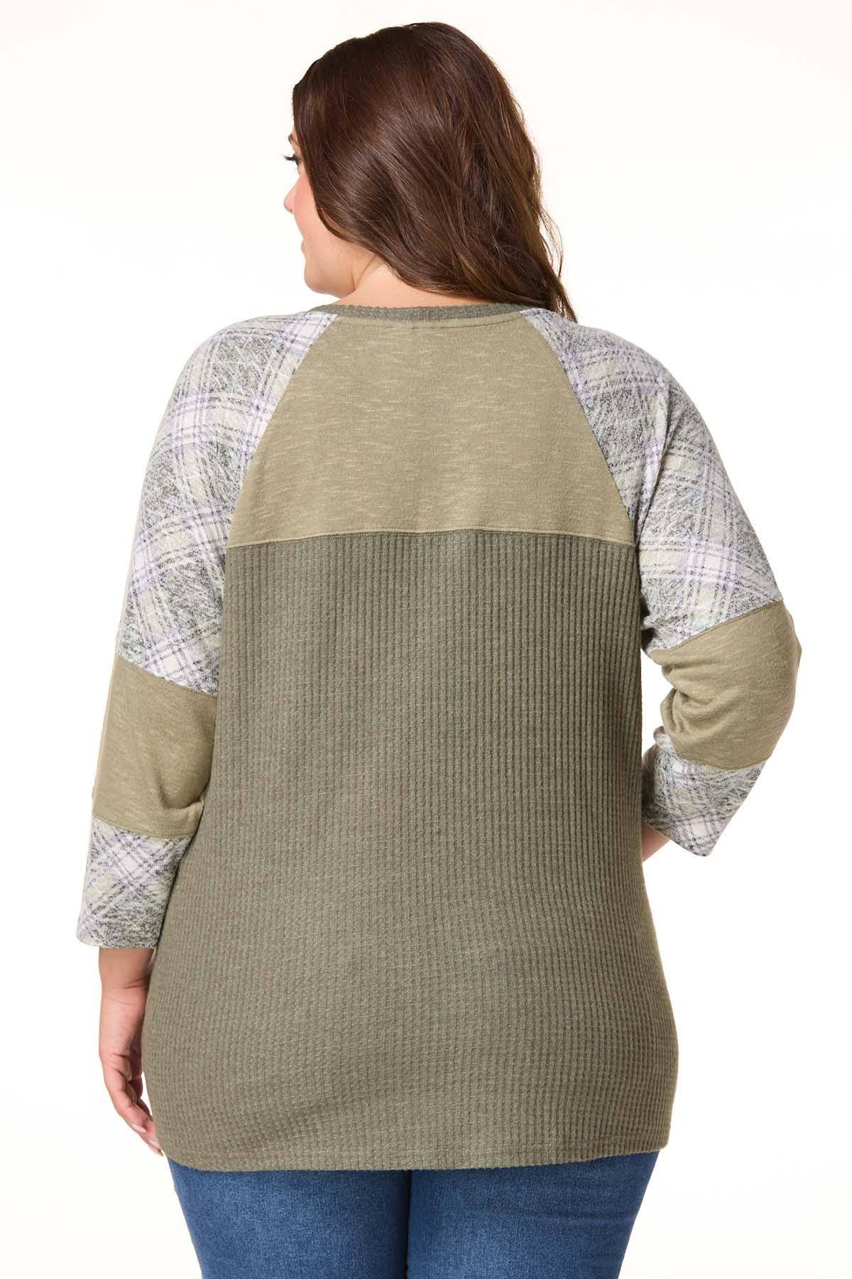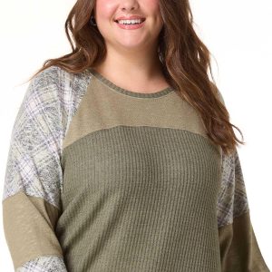 Plus Size Green Plaid Panel Baseball Top