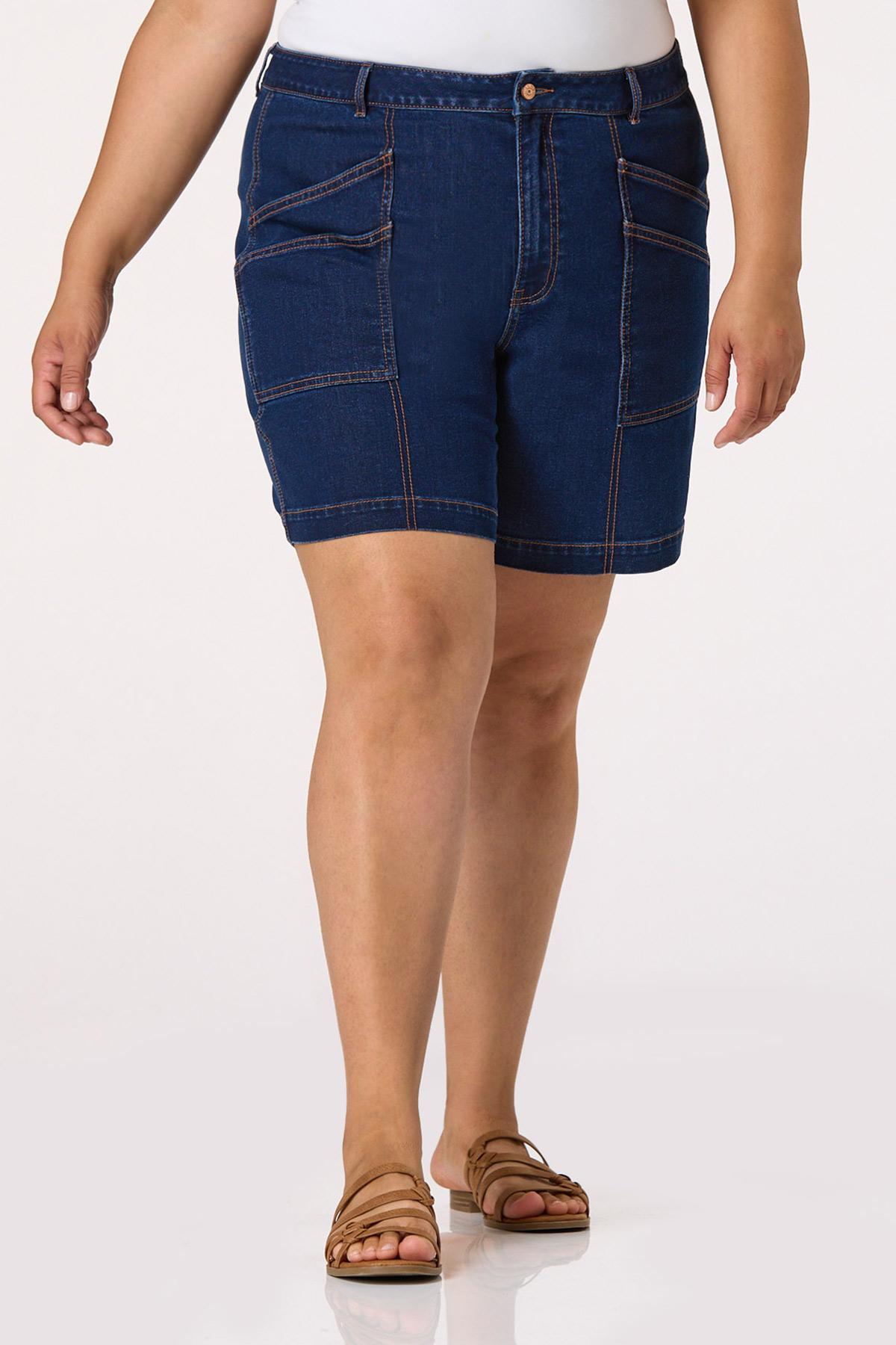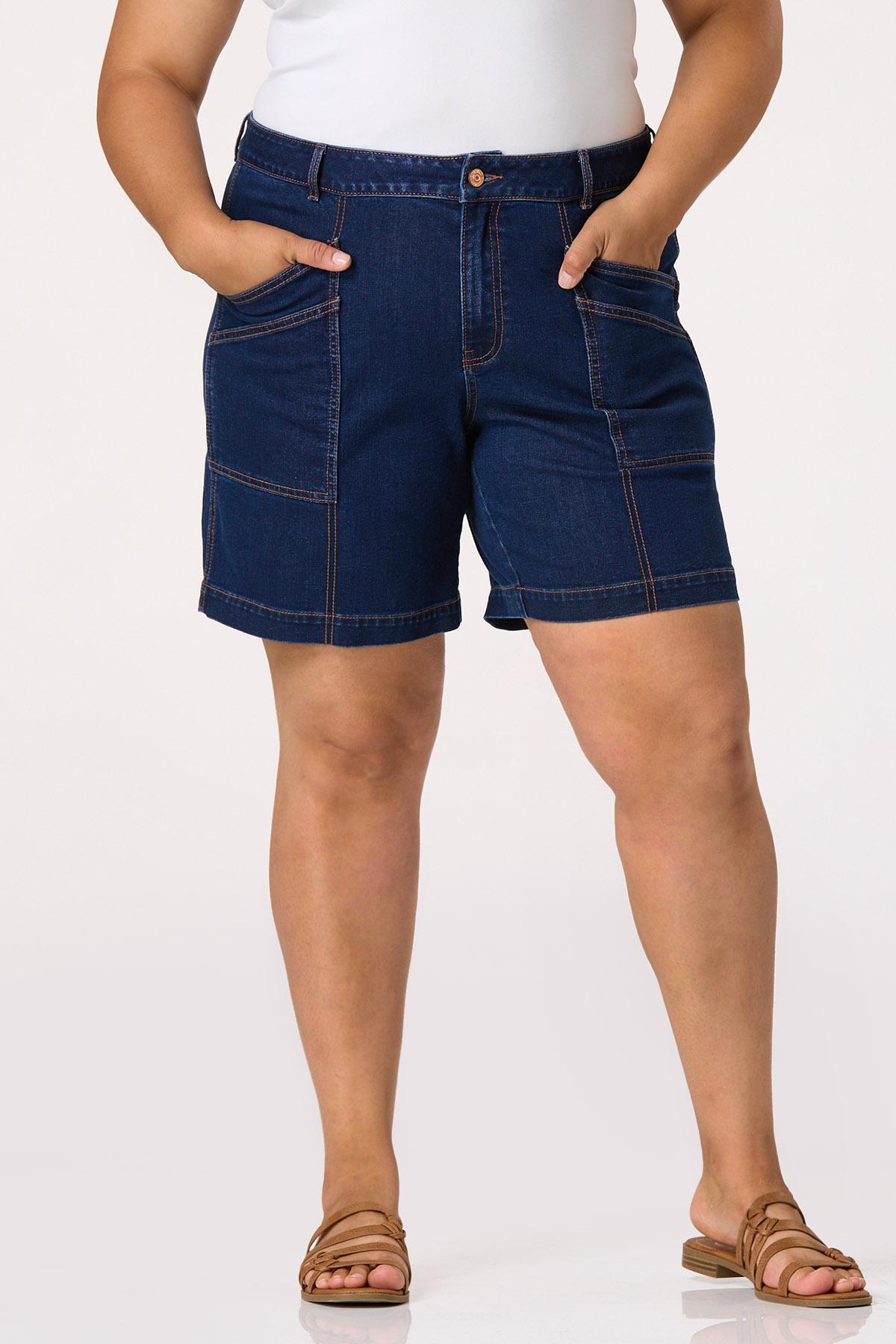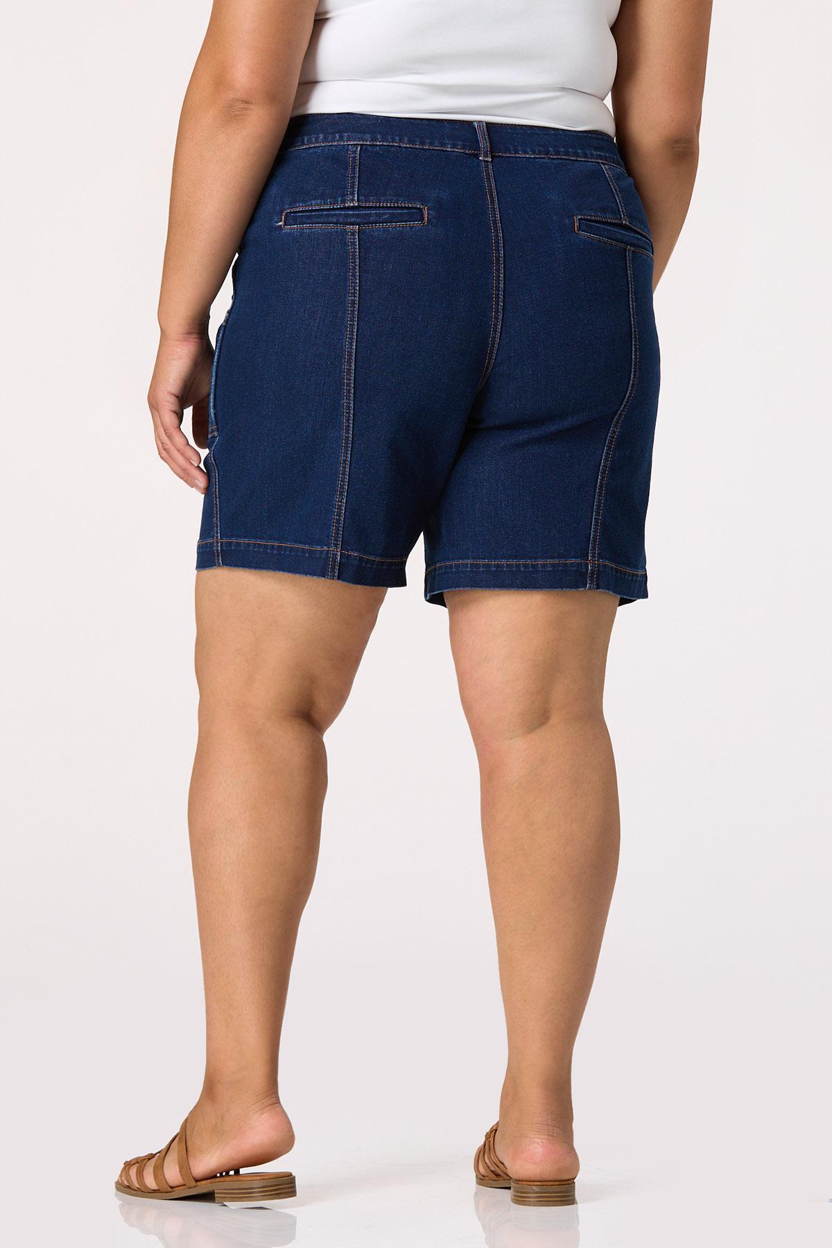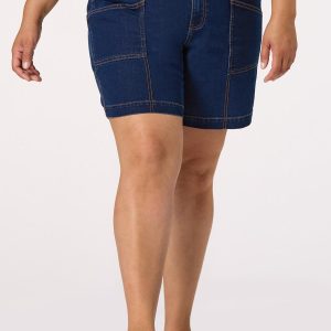 A timeless and true summer favorite, these denim shorts are sure to be on repeat with their comfortable, high-rise waist, double-pocket design, dark blue hue and comfortable-stretch fit.