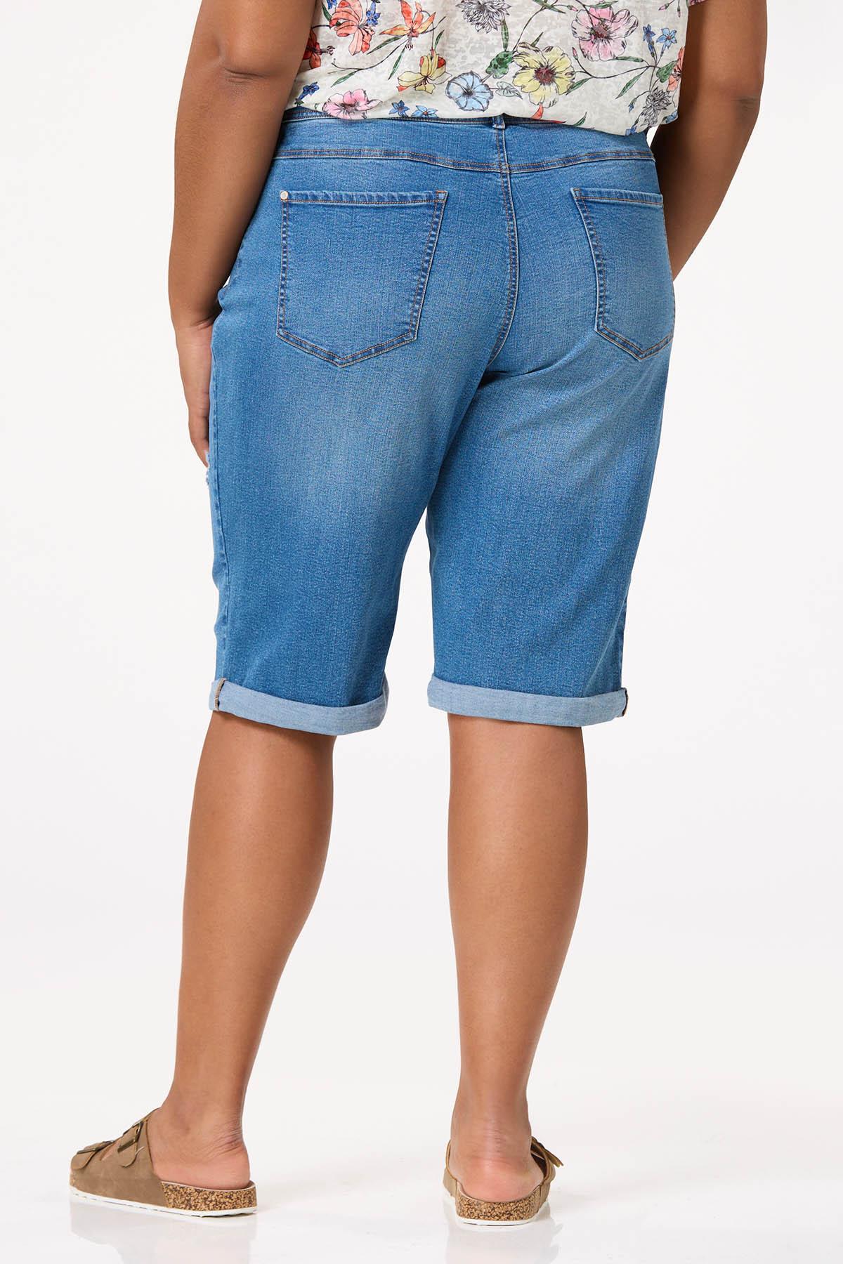 Summer isn’t the same without this timeless go-to. In a longer, Bermuda length you’ll love wearing these days, nights and any time in between with their comfortable, high rise waist, stretchy fit, cuffed hem and carefree, distressed detail. Graphic tees, summer tanks . . . or one of our more “girlie” styles – you can’t go wrong with whatever you choose to top them off with.