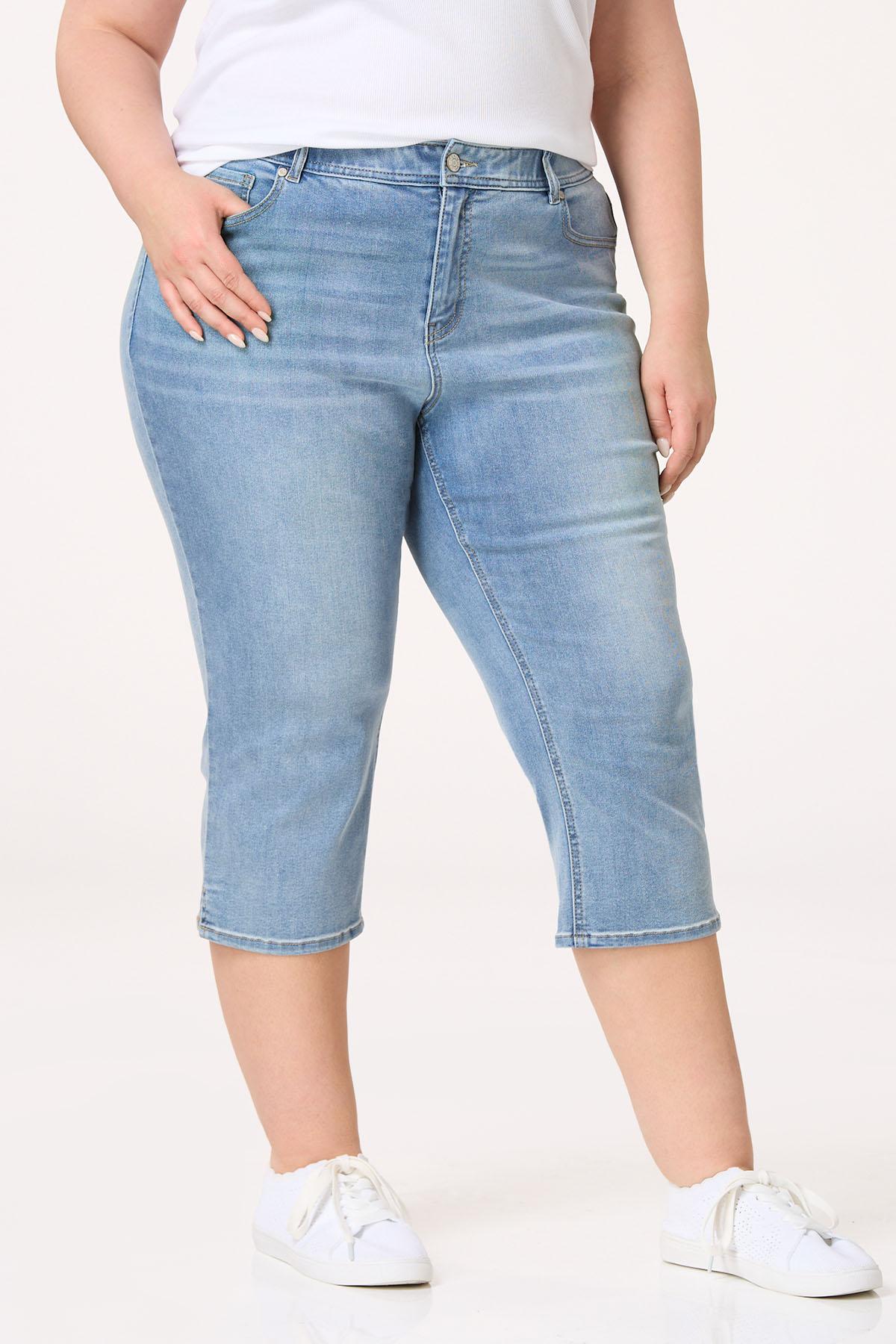 Denim…done right. Our stretchy-flexible denim fabric features a light-wash hue, a high-rise waist, a slimming skinny-leg silhouette and a cropped hem for the perfect comfortable & cute pair of spring jeans.