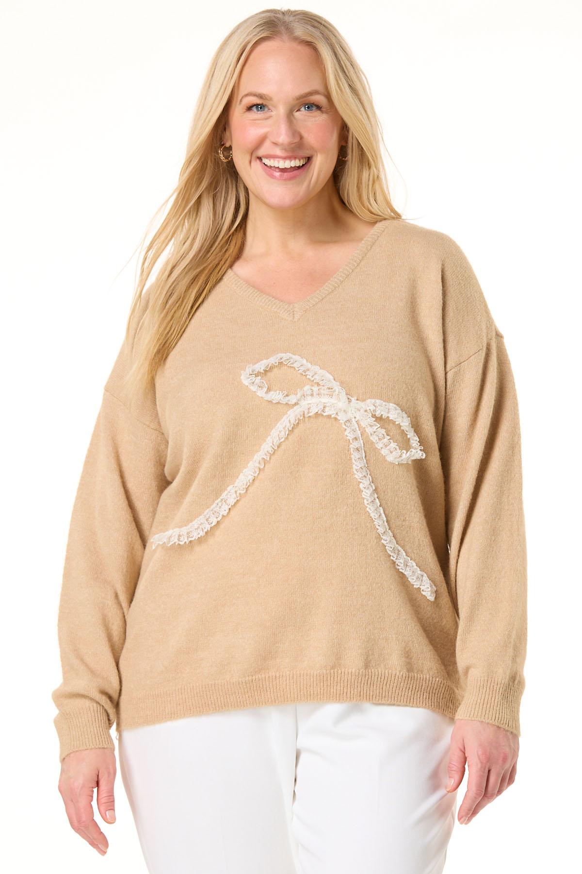 Plus Size Lace Bow Sweater