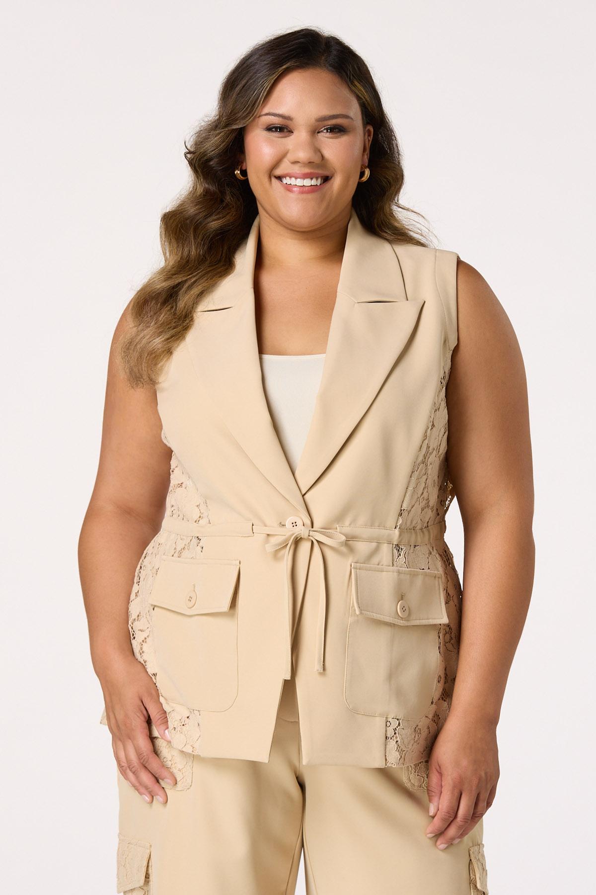 Plus Size Lace Detail Tie Front Vest