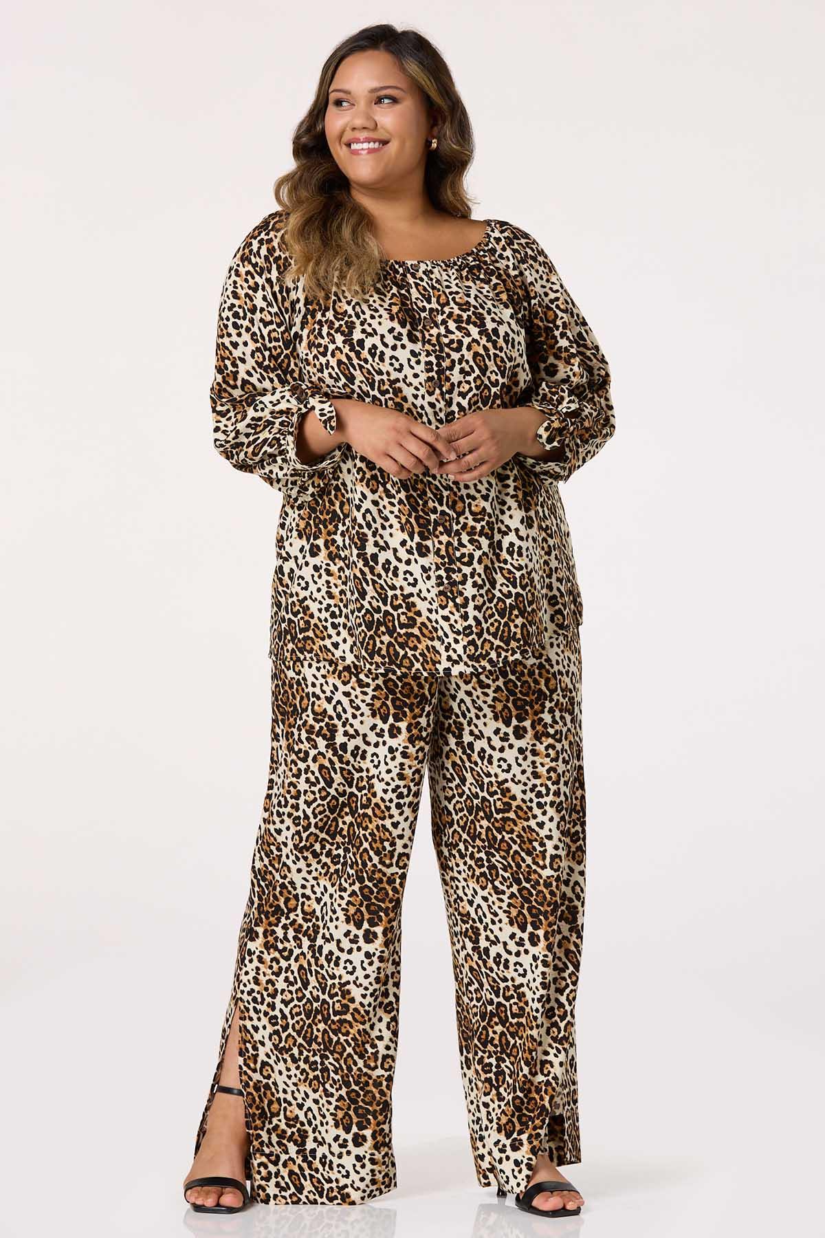It’s adventure and confident vibes in store with this wide leg style. The other half to our leopard tie sleeve top, these pants feature a wide leg silhouette, drawstring waist, flowy fit and leopard print. Whether you choose a solid black look or our matching top, these pants are about to set the tone for a fun and fabulous evening.
