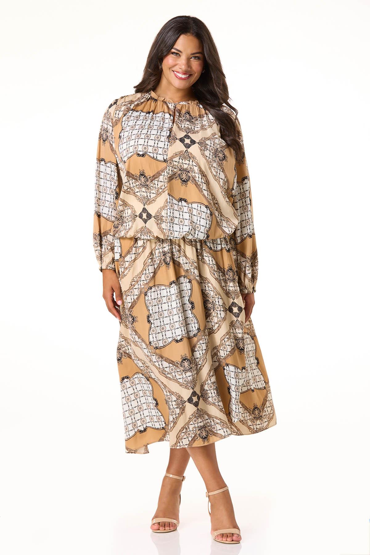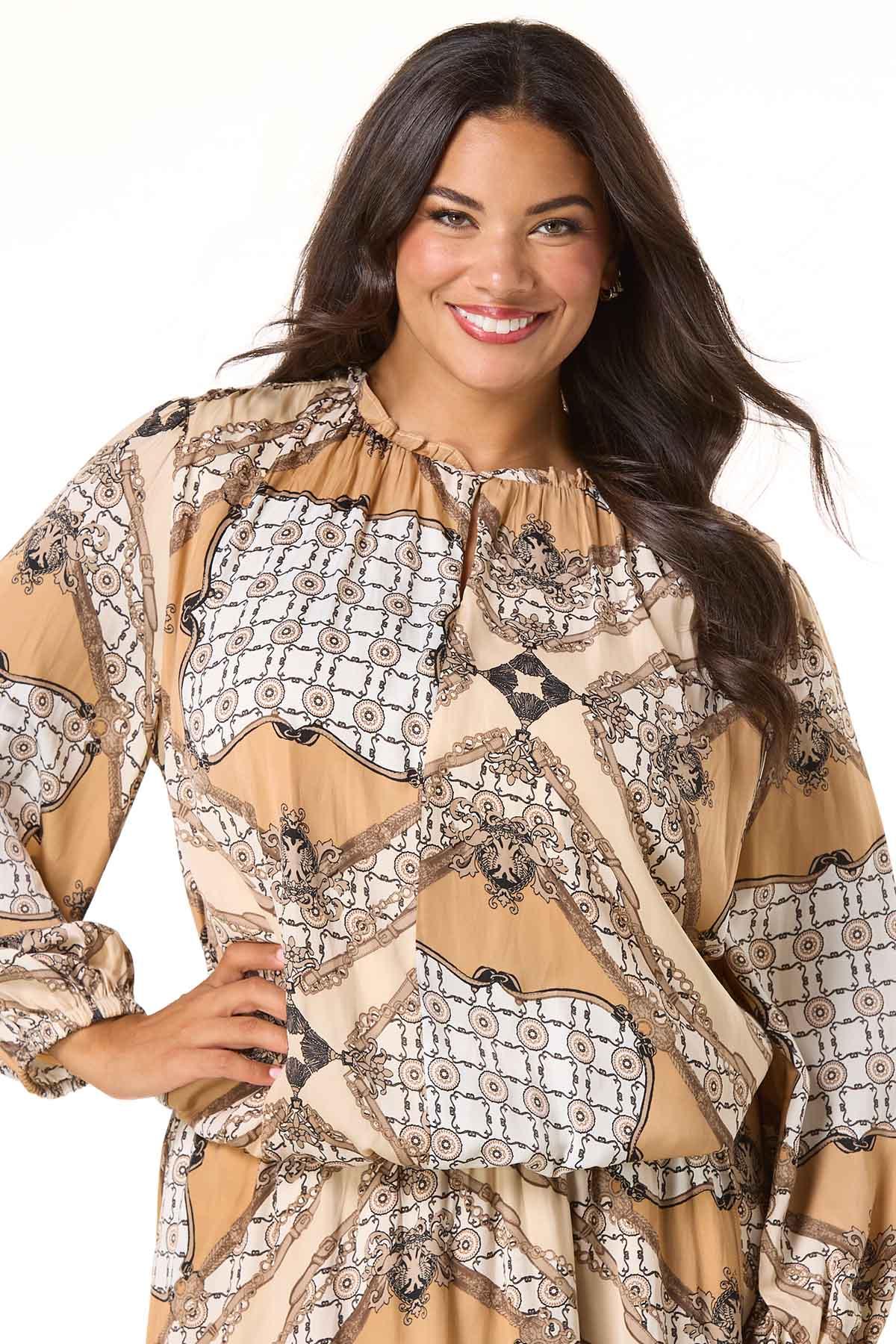 Endless compliments are coming your way when you show up in this chic, dressy style, featuring a keyhole-button neckline, bubble hem and billowy sleeves topping a silky-woven fabric and a print that is truly charming, to say the least. Wear with jeans, black pants, or pair with our matching skirt for that “WOW” factor that will have them looking twice.