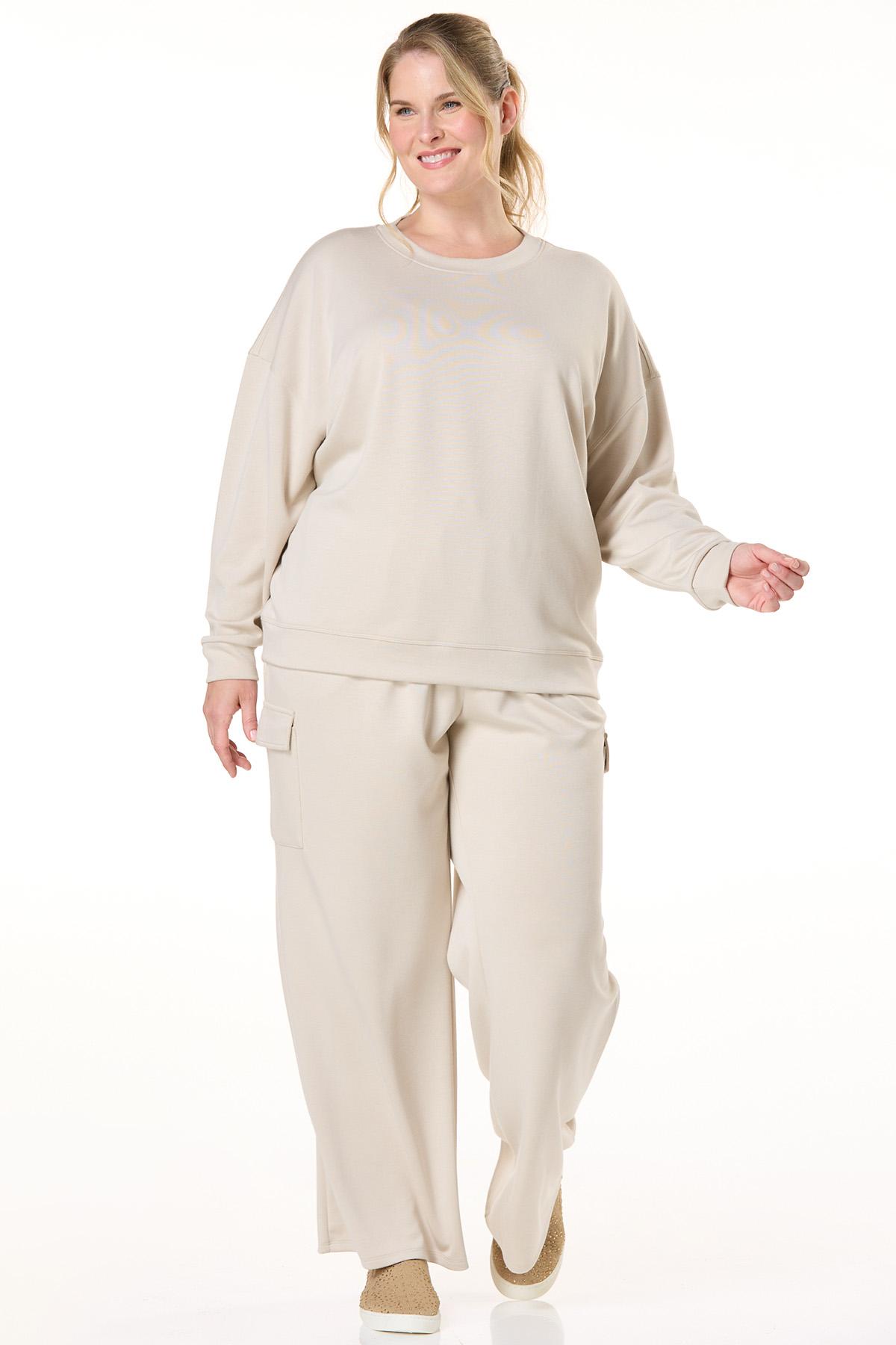 Elevate your off-duty style with these wide leg cargo sweatpants in a versatile stone hue. Crafted from soft scuba knit for extra comfort, it’s perfect worn solo or paired with our coordinating neutral scuba sweatshirt for a sleek, head-to-toe lounge look.