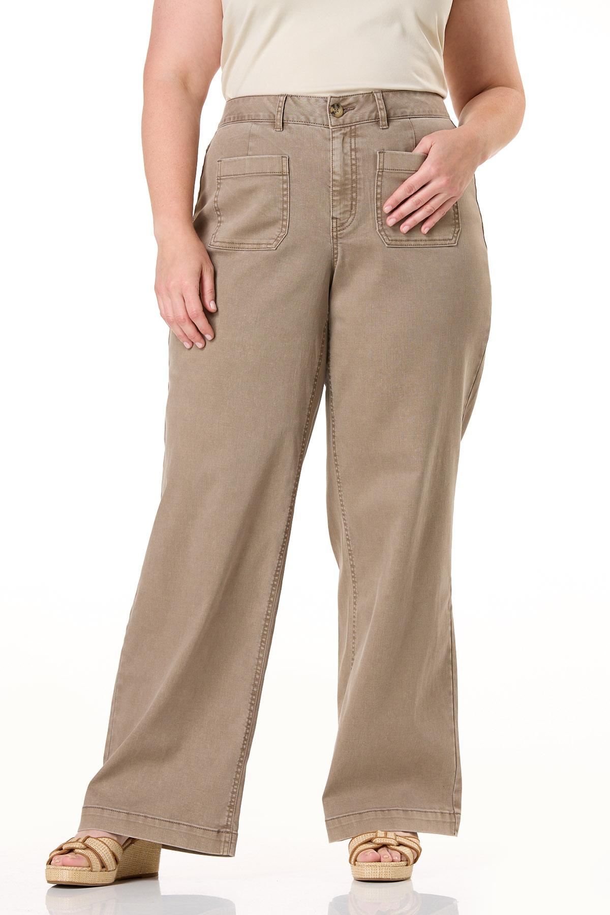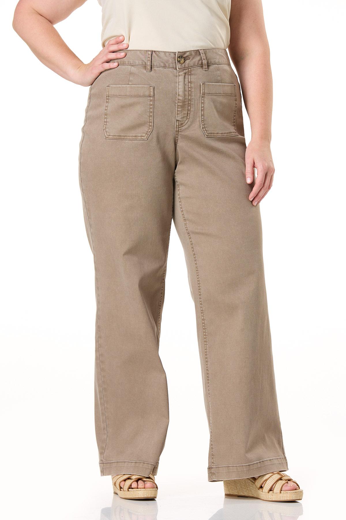 These wide leg jeans come in a washed neutral brown that goes with everything. Designed with a flattering high rise and statement patch front pockets for a touch of vintage flair. Your new everyday essential, elevated.