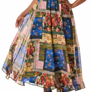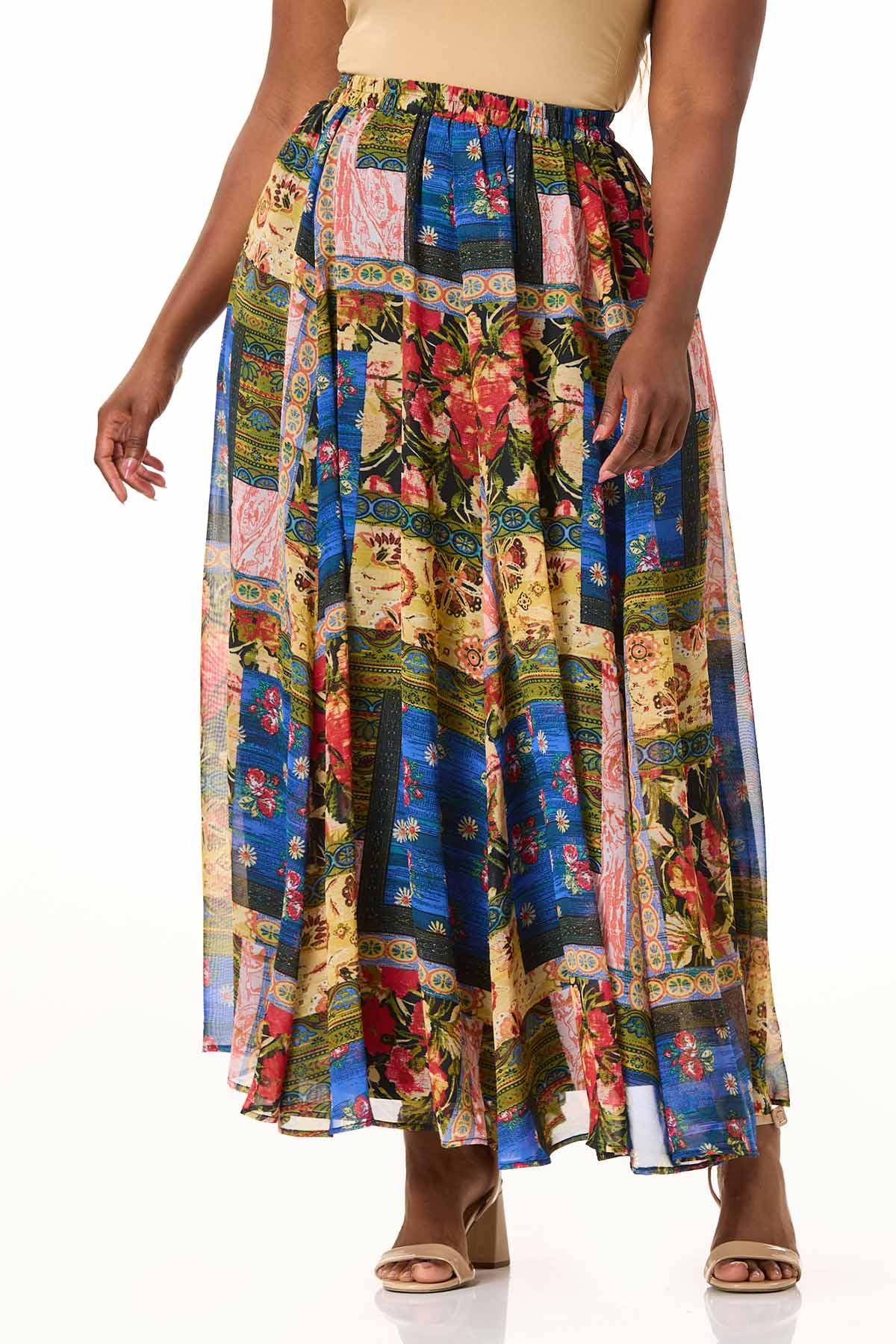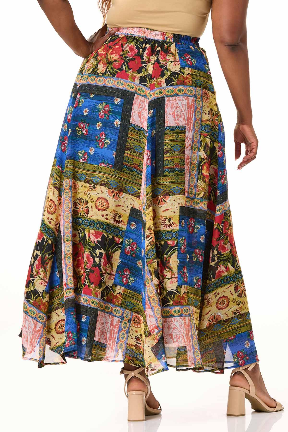 This flowing maxi skirt brings bold color in a patchwork pattern, a stretch waist and side pockets for hidden convenience. Pair it with a simple solid top to let the vibrant pattern take center stage.