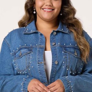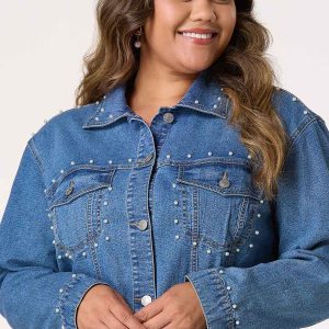 Plus Size Pearl Denim Jacket