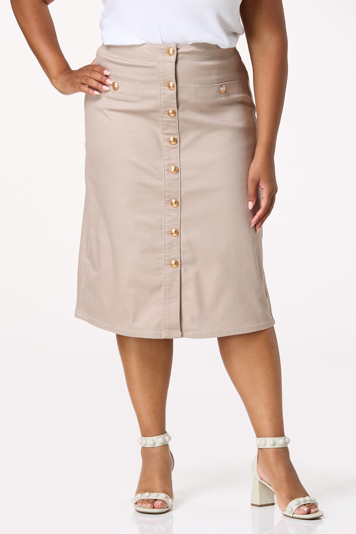 How adorable you’ll look in this stretchy denim style with gold button detail, a flattering stretch fit and tan hue. Pair with a tee, tank or one of our dressier tops for a look that can be worn casual or dressed up effortlessly.