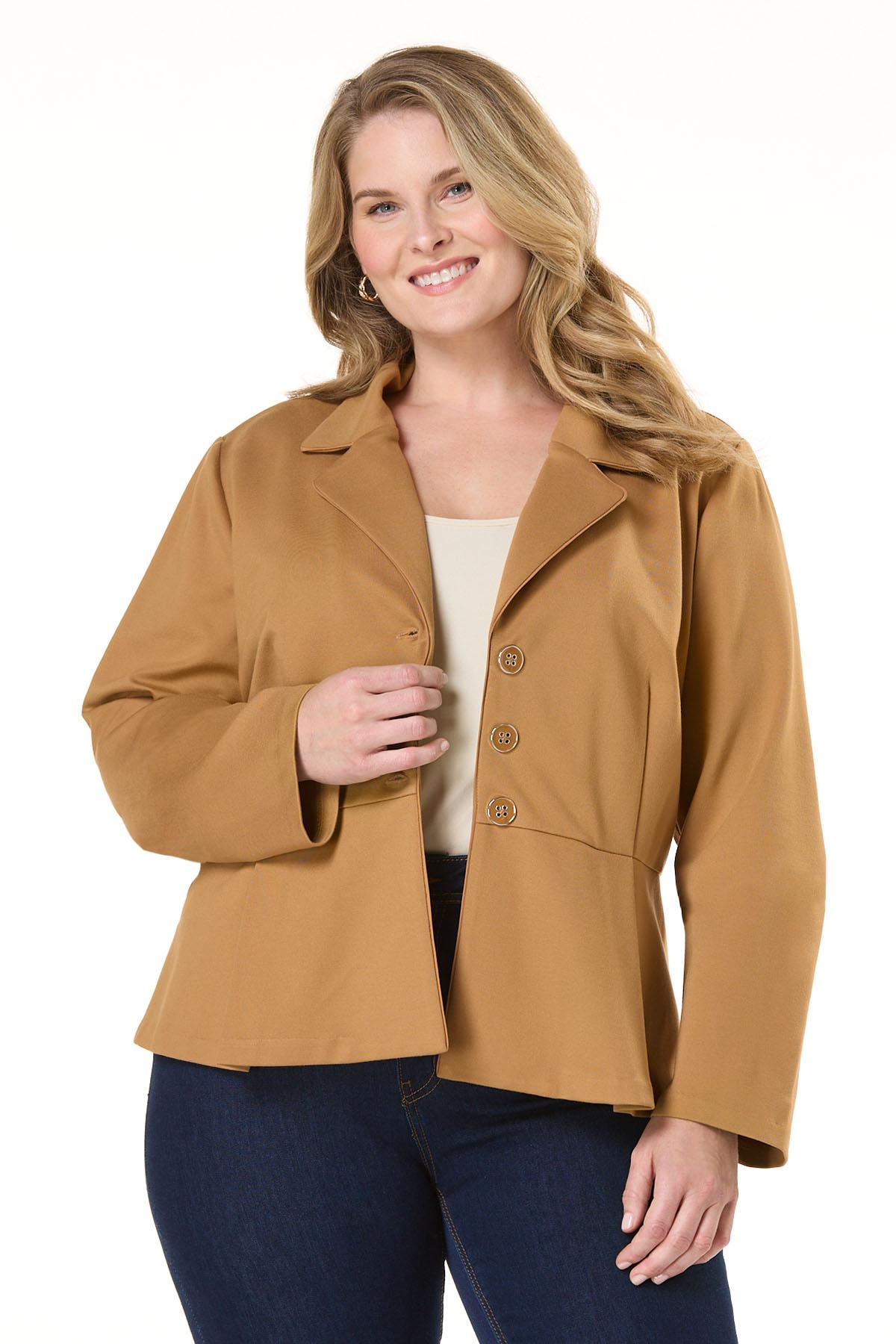 Sharp tailoring meets feminine flair in this peplum ponte blazer. Designed to define the waist with soft structure and graceful pleats, it’s the perfect balance of power and polish -whether you’re heading to a meeting or out for the evening.