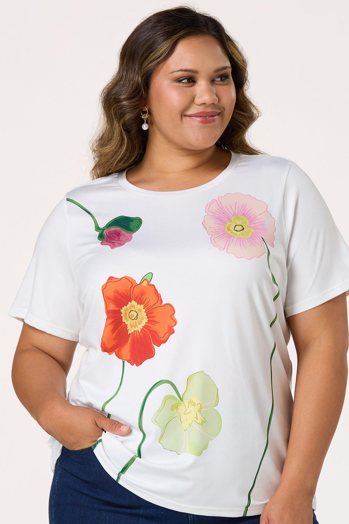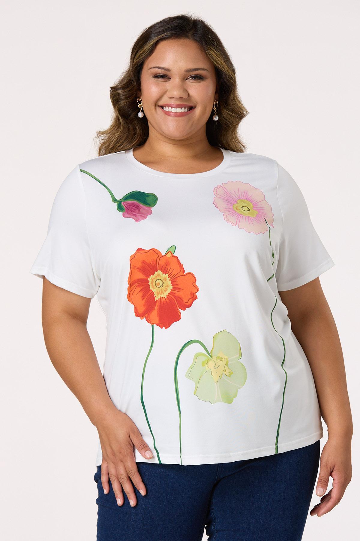 It’s a date with you, the sun and this pretty style, featuring a scoop neckline, buttery-soft feel, relaxed fit and placed-floral print in shades of pink and red. This casual, summer-ready look is the perfect addition to your favorite jeans or denim style.