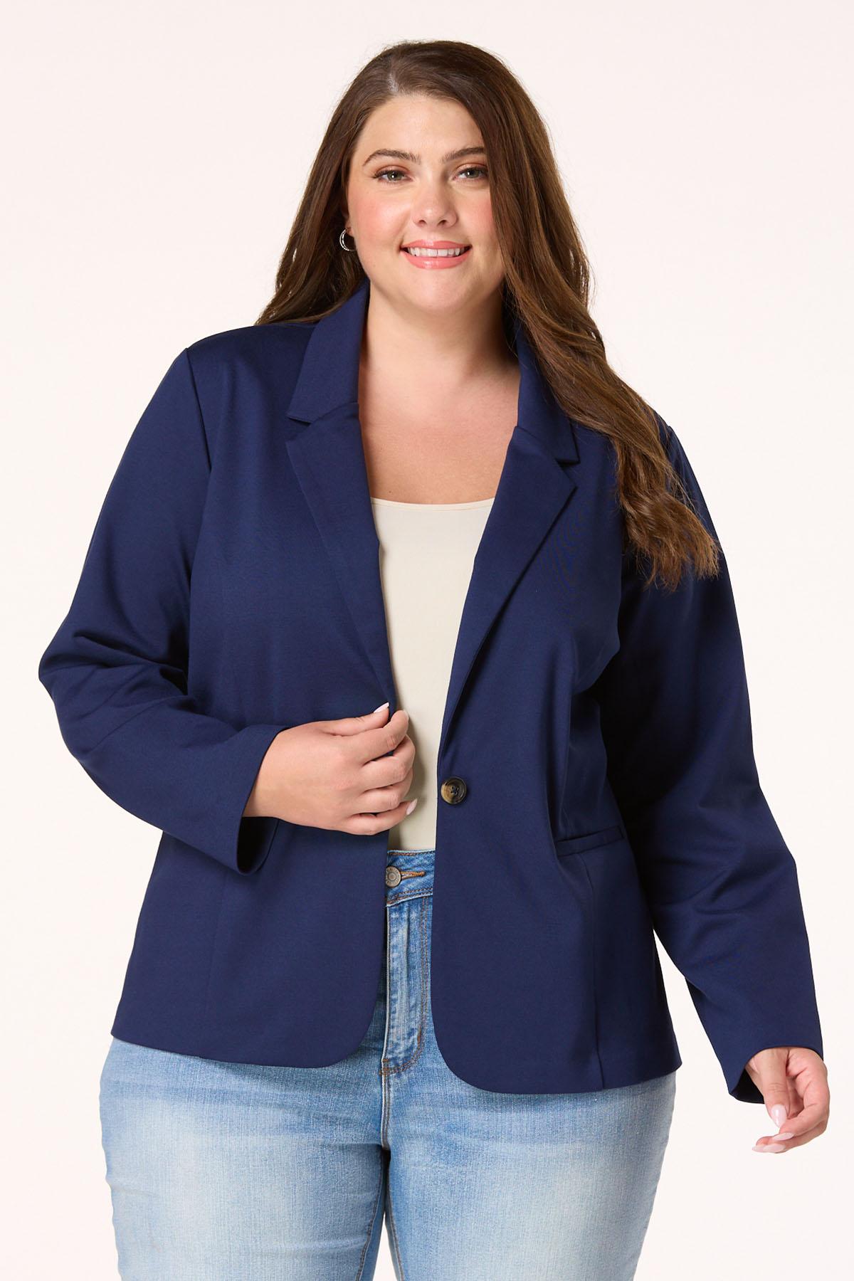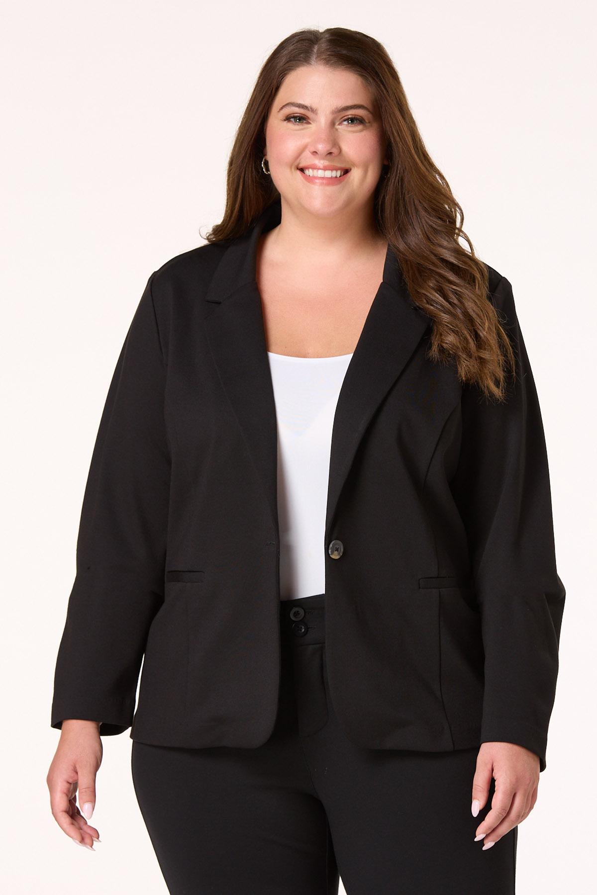 Meet your new go-to blazer, crafted in a soft yet structured ponte knit that moves with you. The single-button closure and seams create a flattering, figure-enhancing silhouette that elevates any outfit. Whether you’re layering over a tee or styling it for work, this blazer brings polish with a touch of stretch.