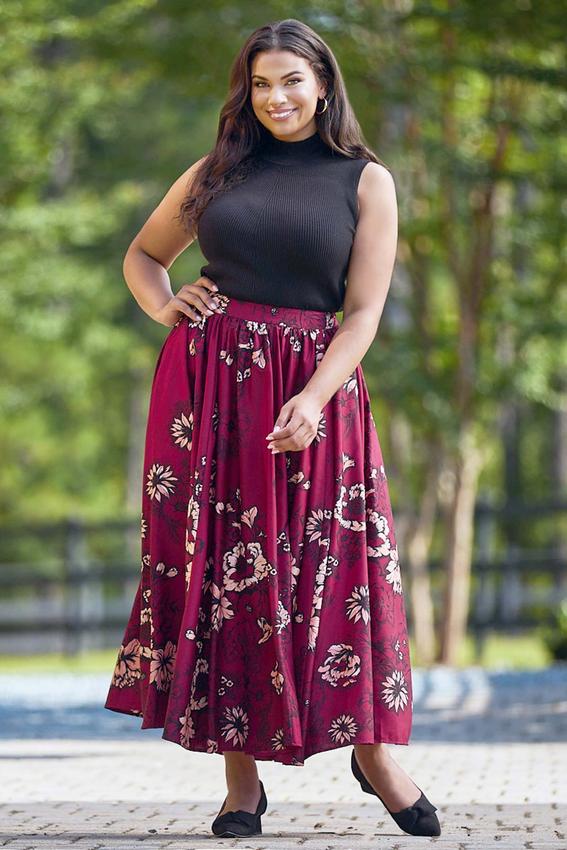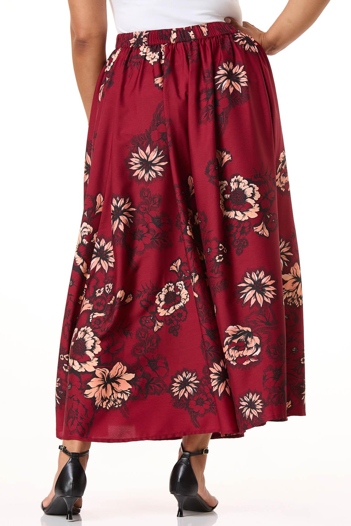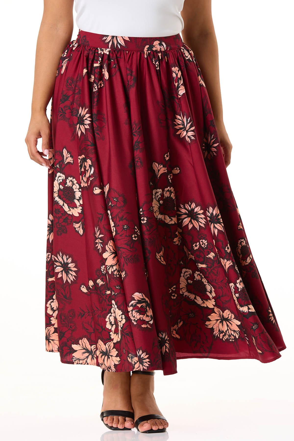 Plus Size Red Floral Maxi Skirt