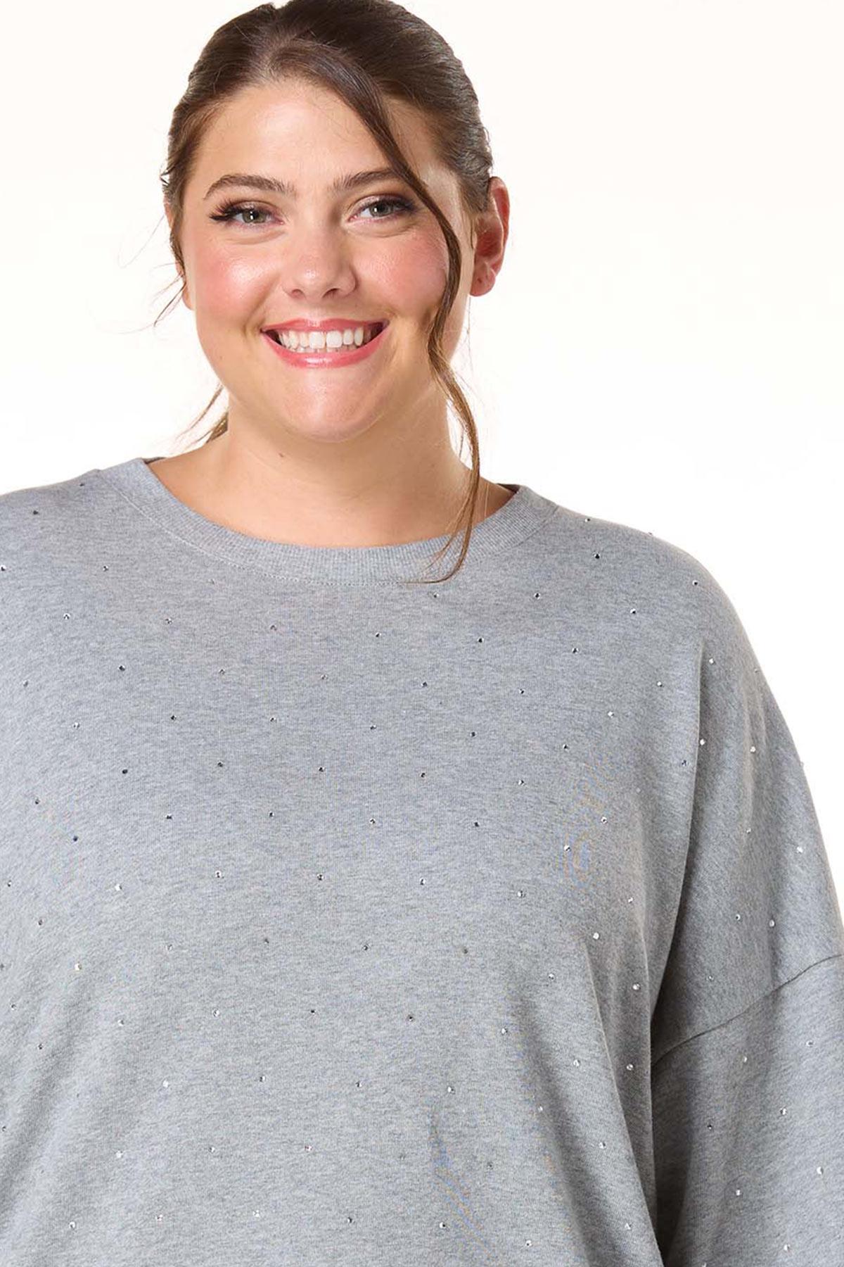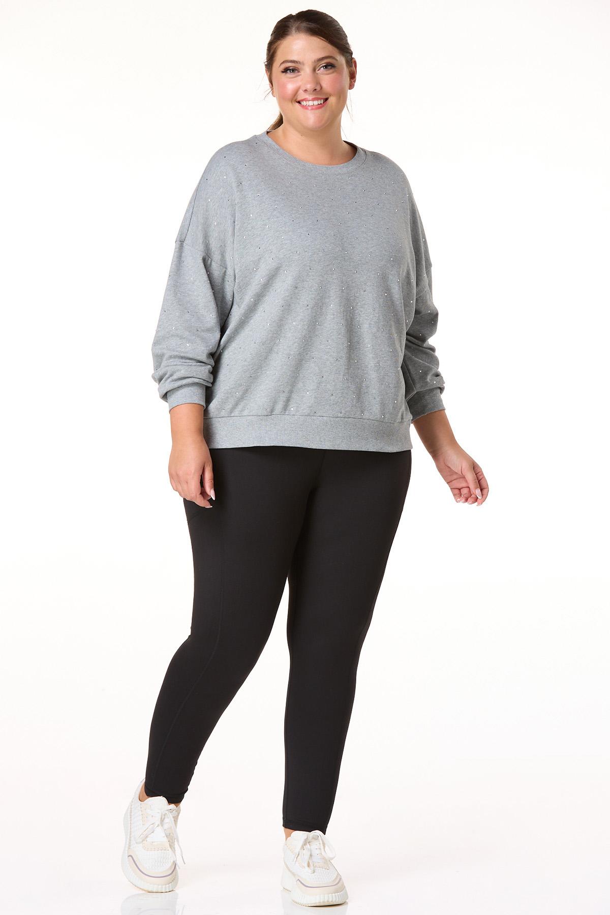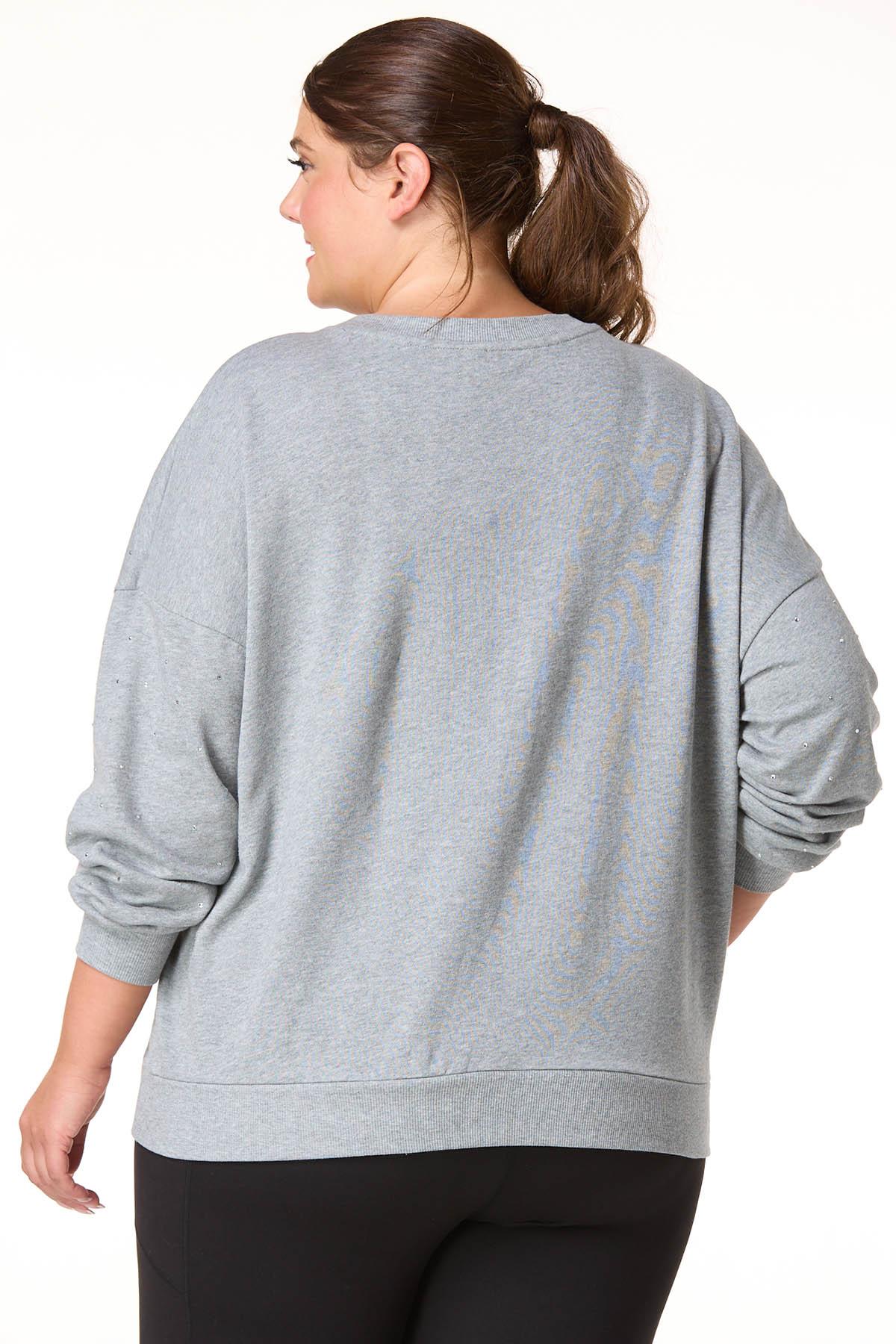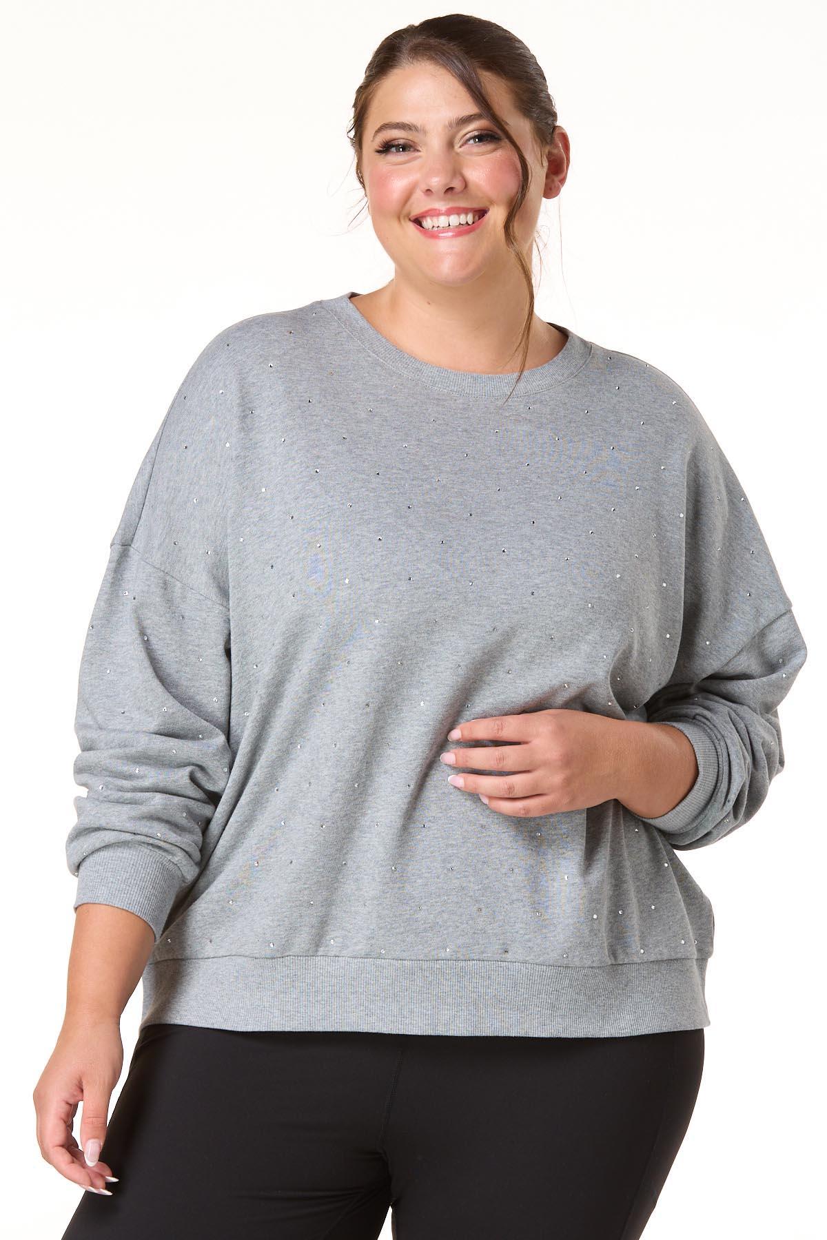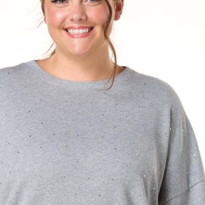 Bring a comfy, low-key look with a hint of shimmer, too. A scoop neckline, relaxed fit and rhinestone detail come together for style you can lounge or lunch in effortlessly.