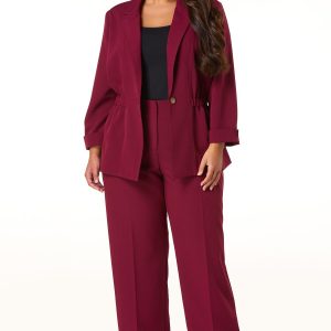 Plus Size Ruched Waist Woven Blazer