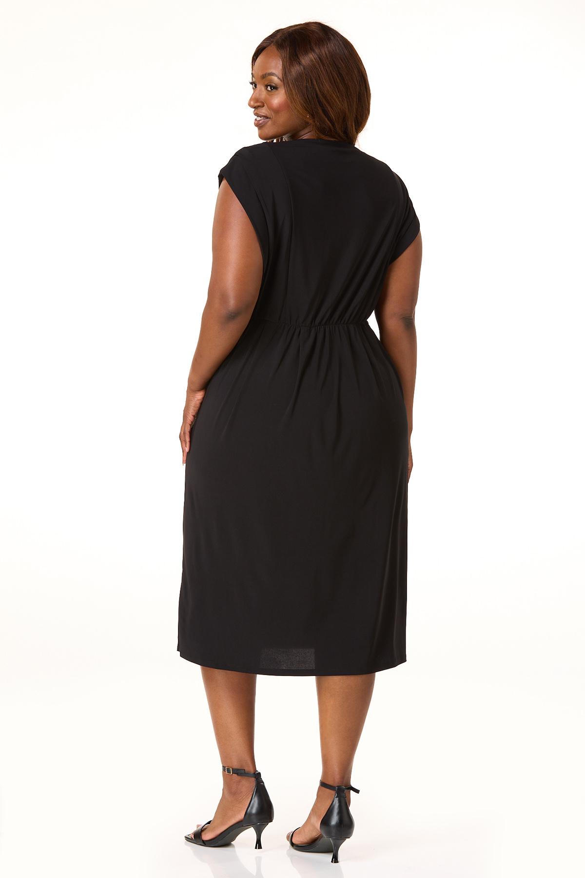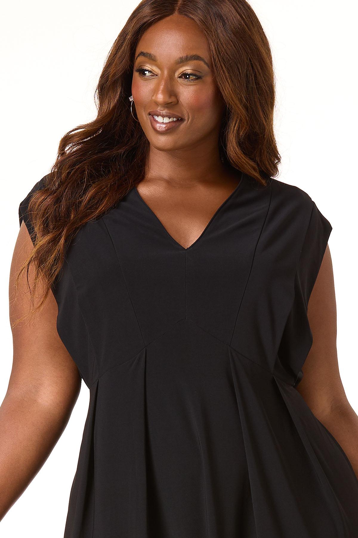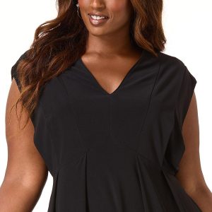 It’s the little black dress you’ll wish you had sooner. A v-neckline, sleek-stretchy fabric and flattering-relaxed fit make it ideal for not only the office but memorable celebrations, as well.