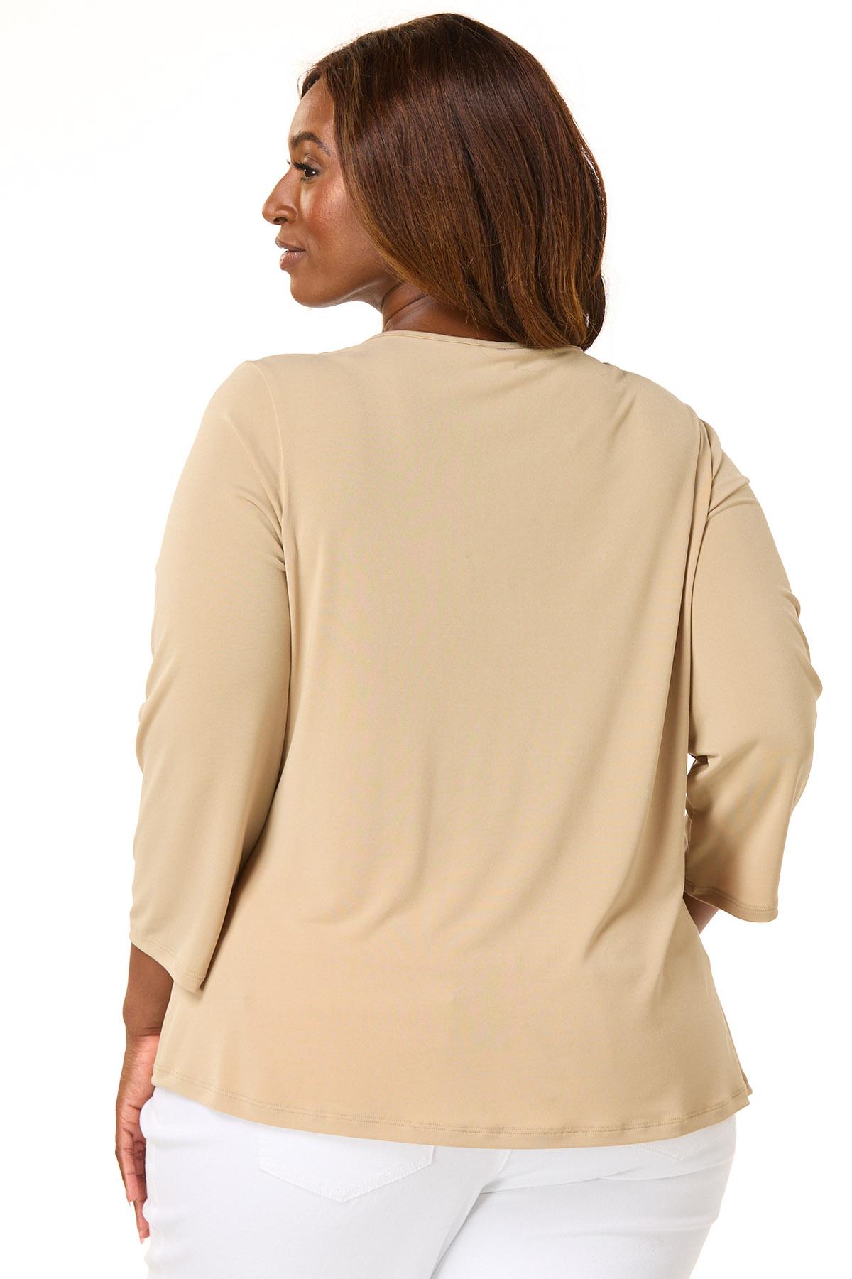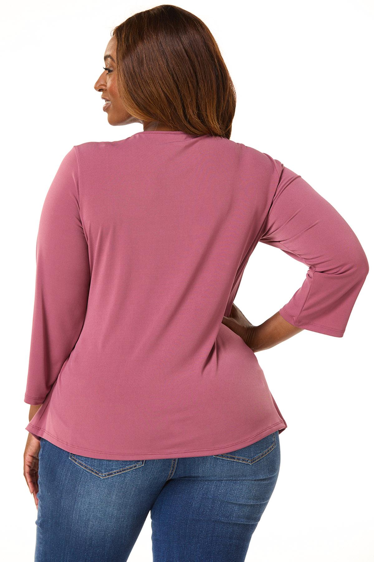 Get ready to swoon over the comfortable feel and flattering fit of this sleek-stretchy style, featuring a zip neckline, ruched sides and solid hue. No need to tuck, just pair with jeans or dressy pants for endless looks that are ready to fit into your day or night.