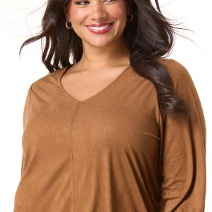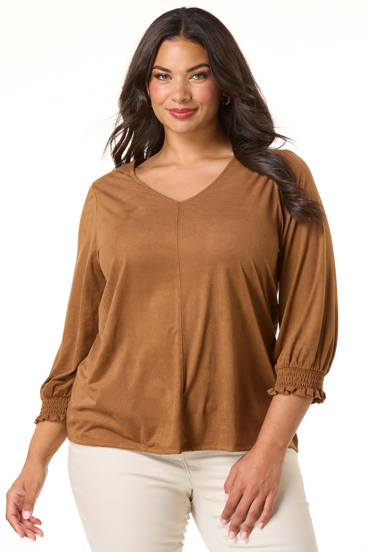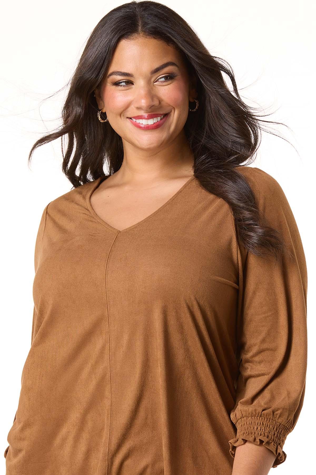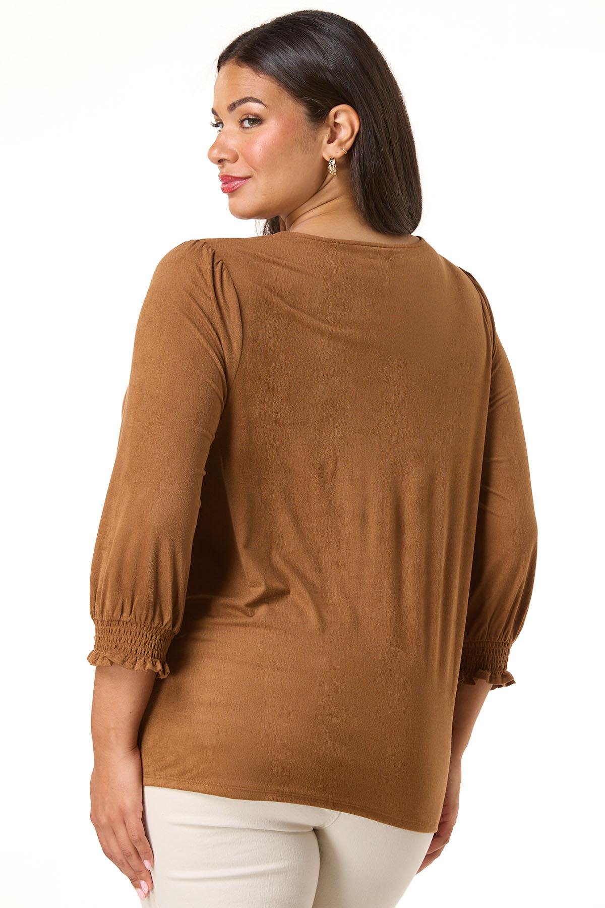 Plus Size Suede Smocked Sleeve Top