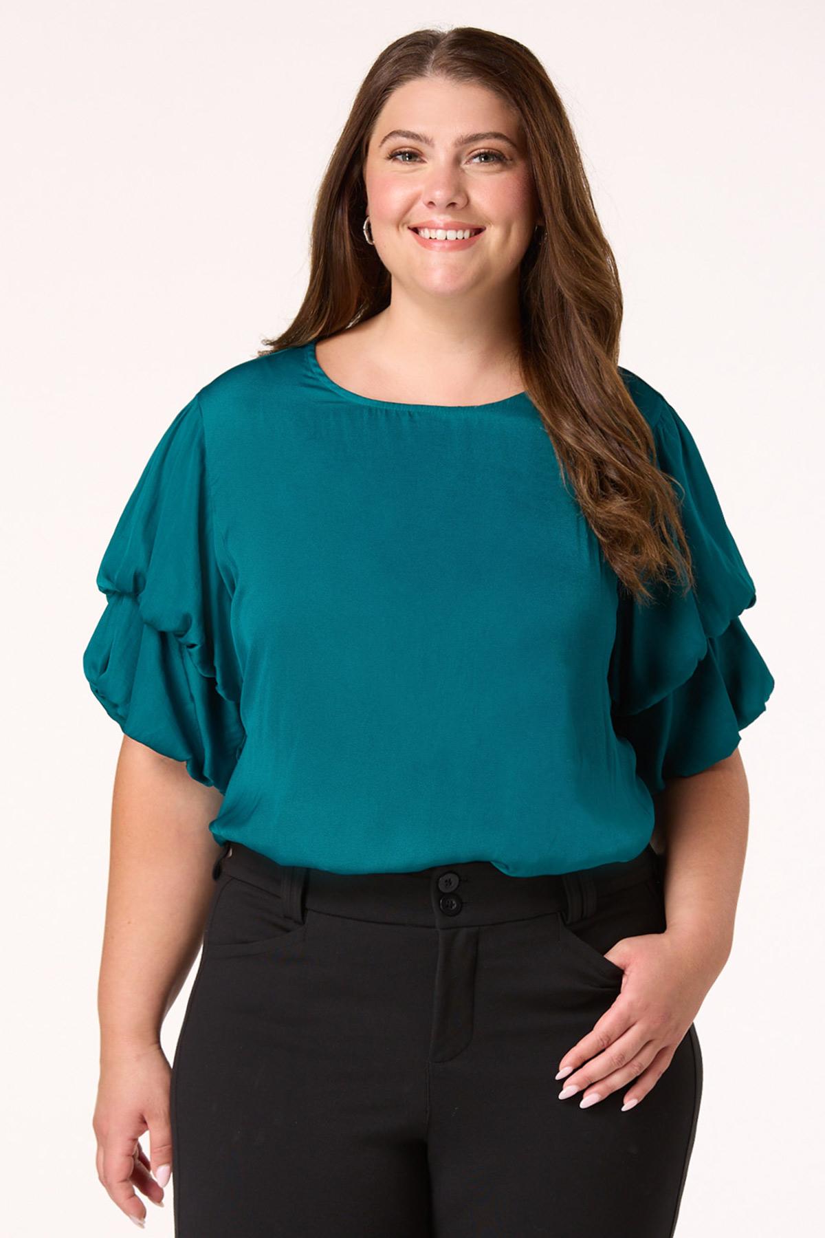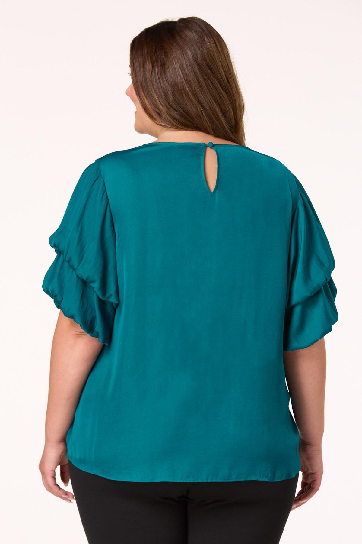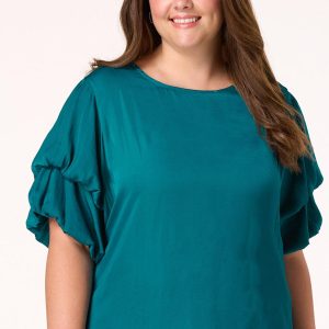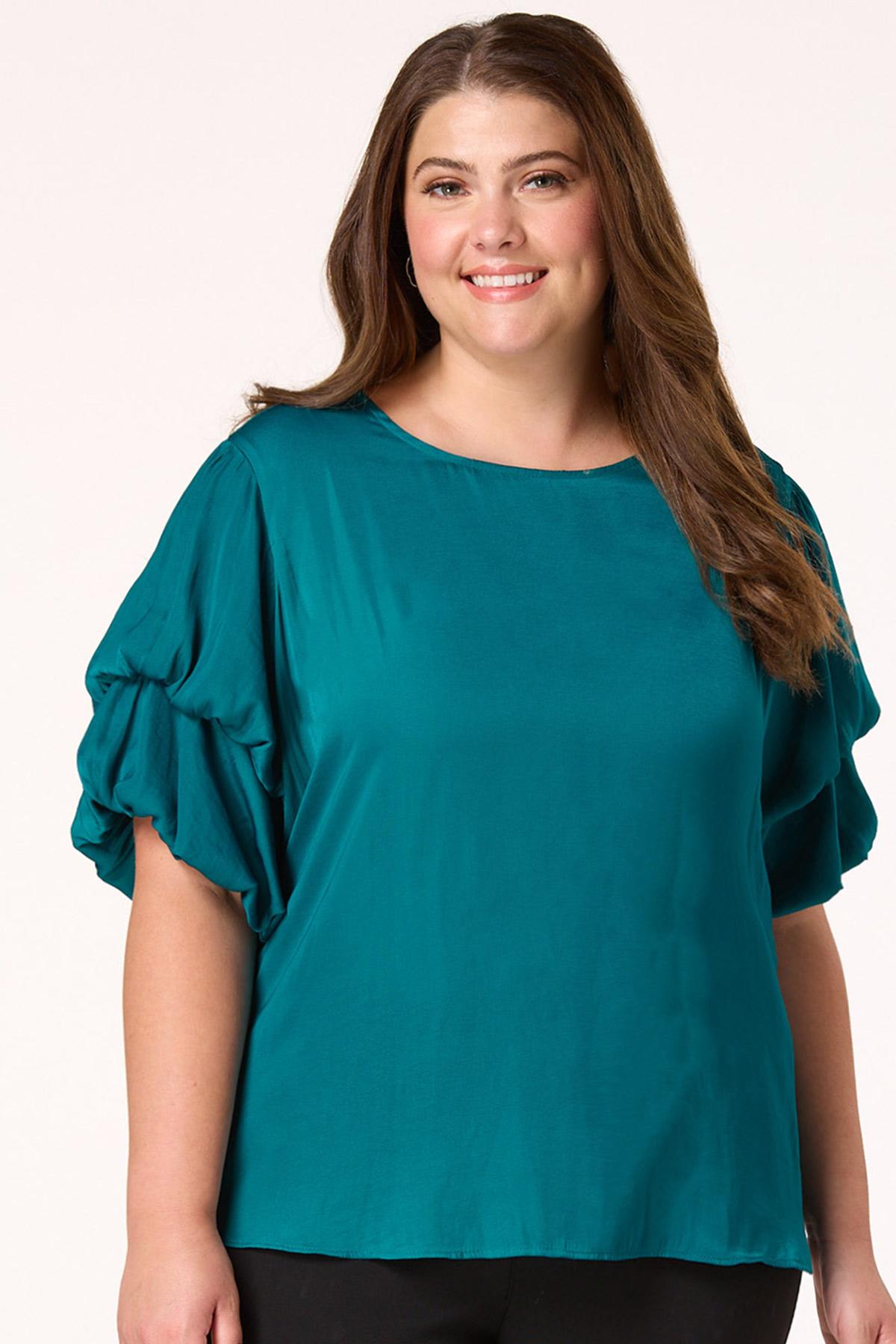 Plus Size Teal Bubble Sleeve Top