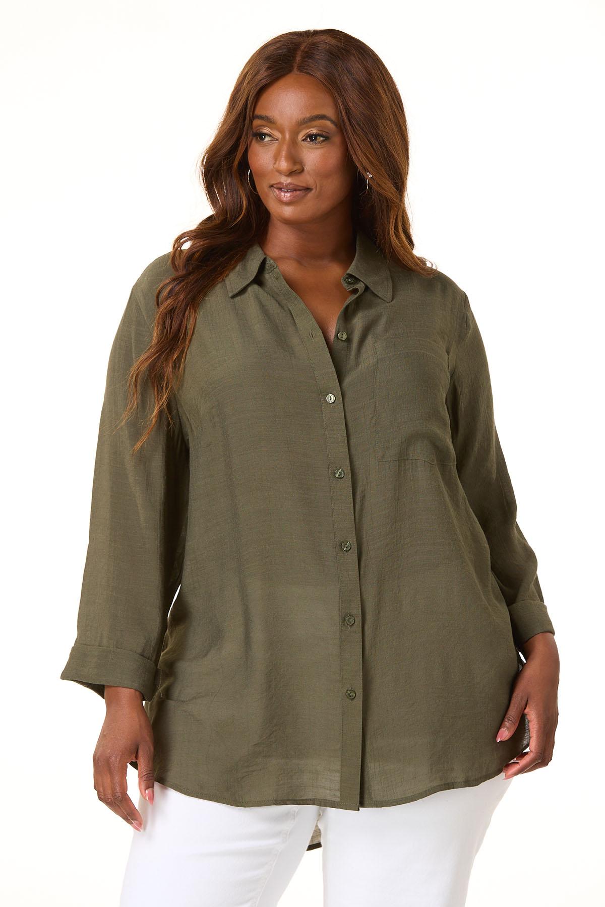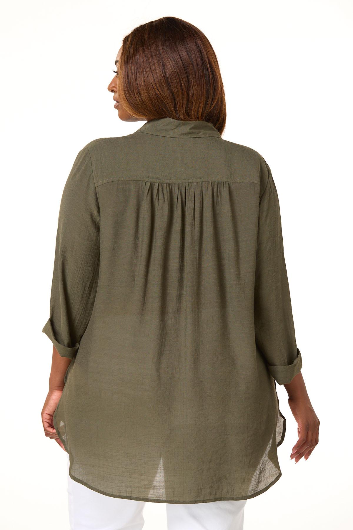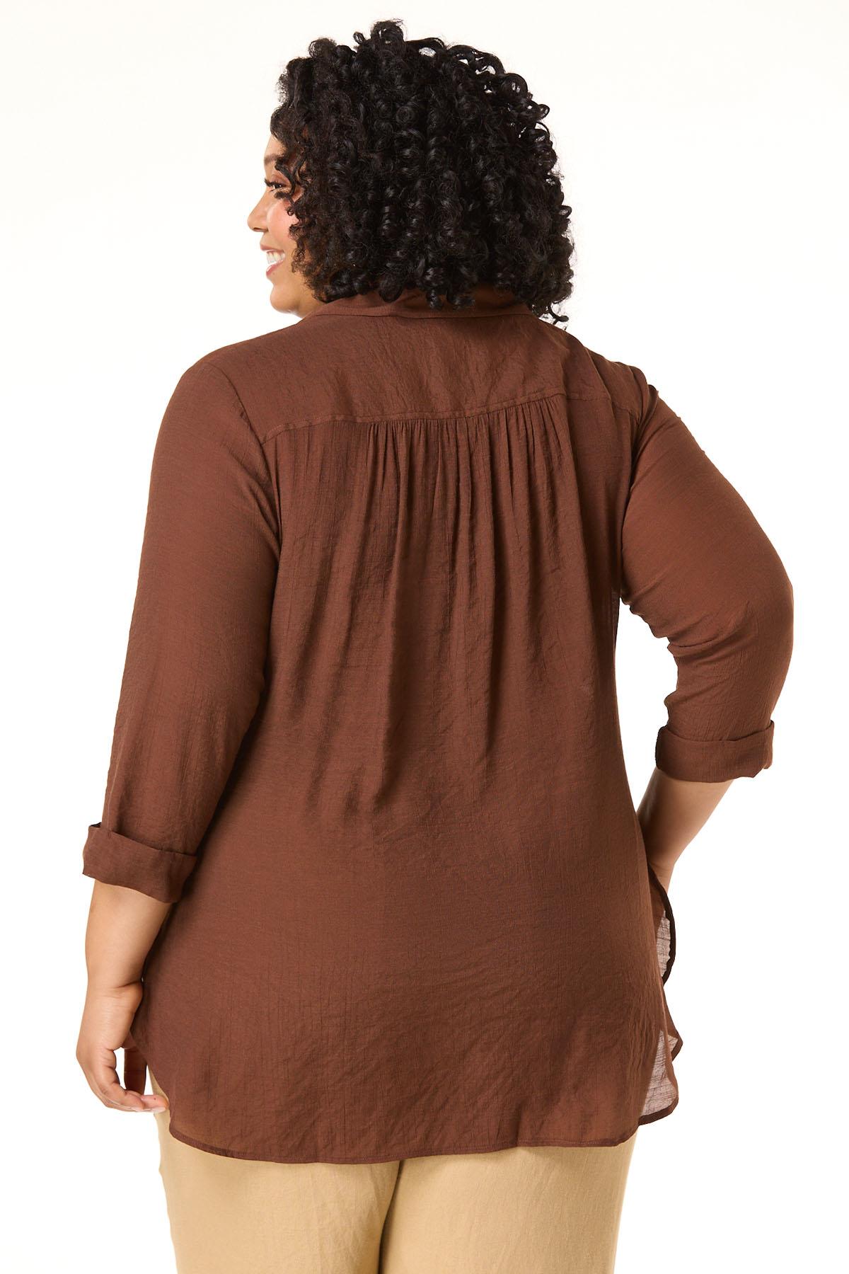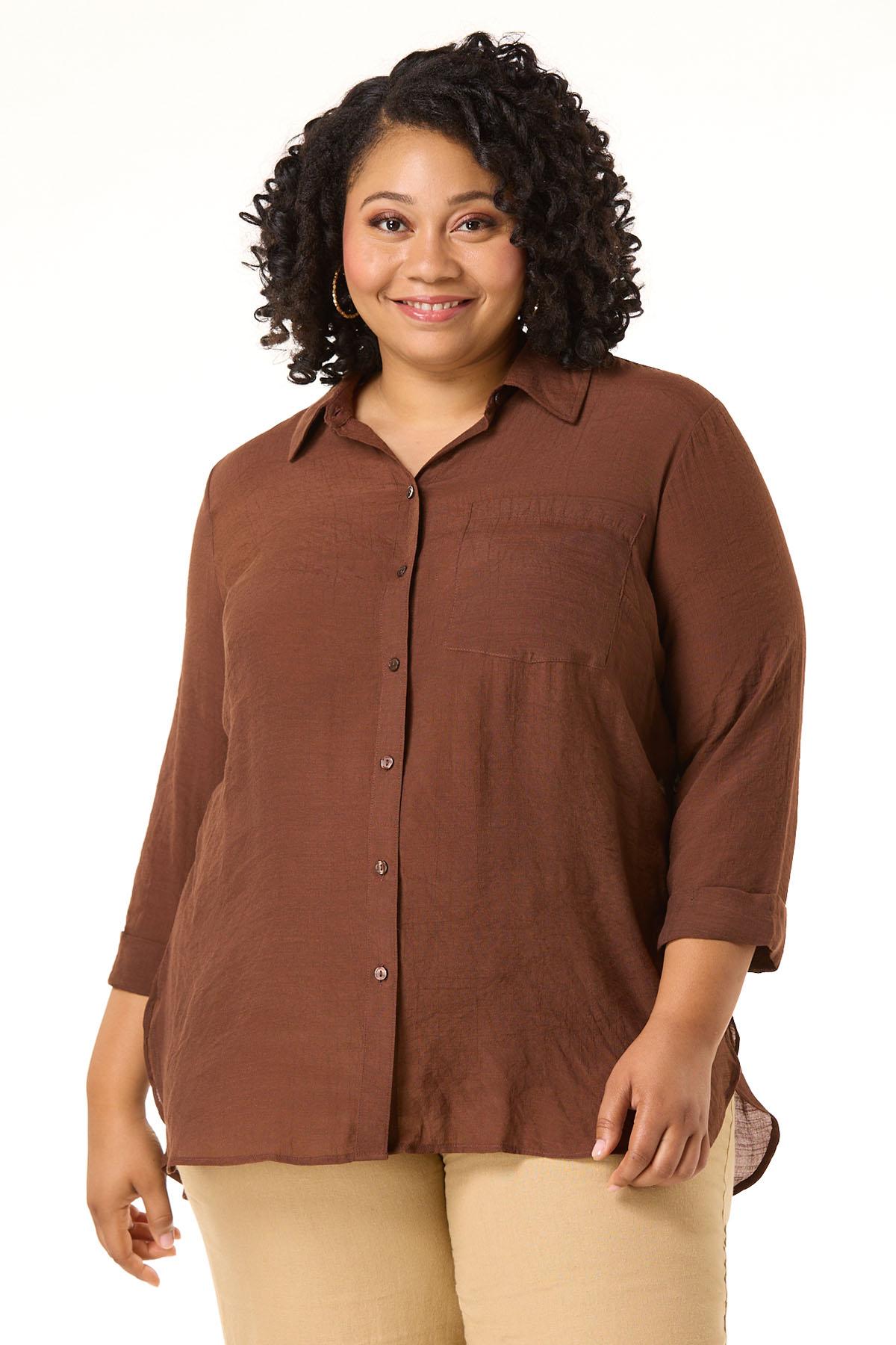 Easy and effortless, this casual woven top features cuffed 3/4 sleeves, a button-down front, and a breezy textured fabric. Finished with a flattering high-low hem for a laid-back vibe you’ll be living for!