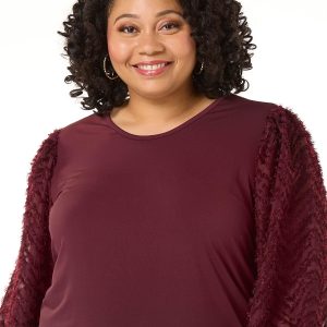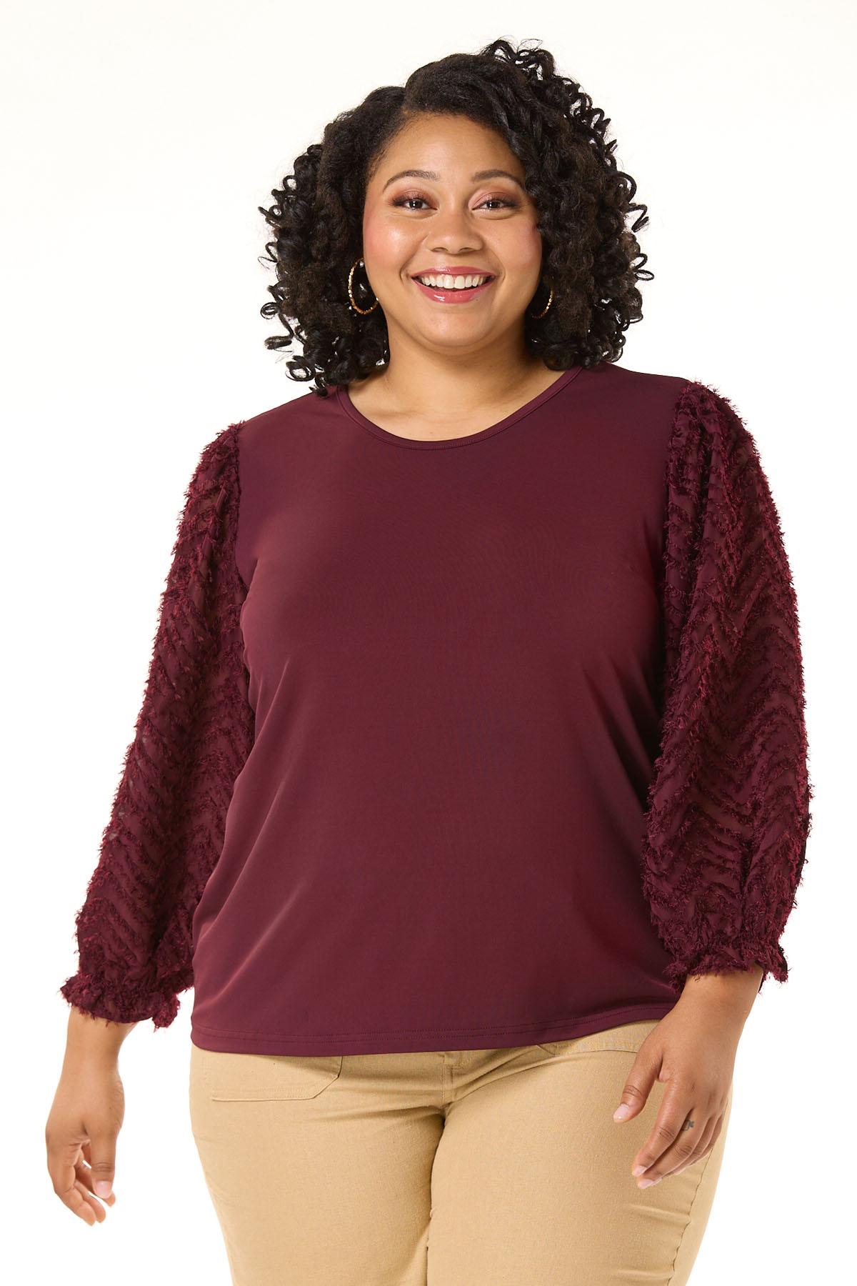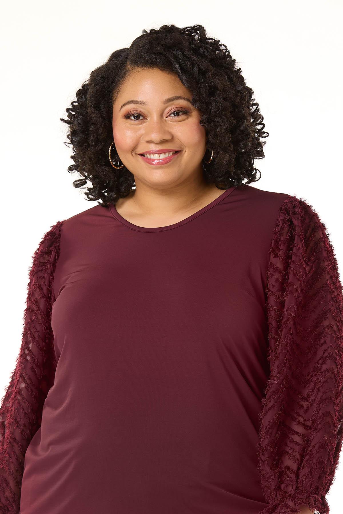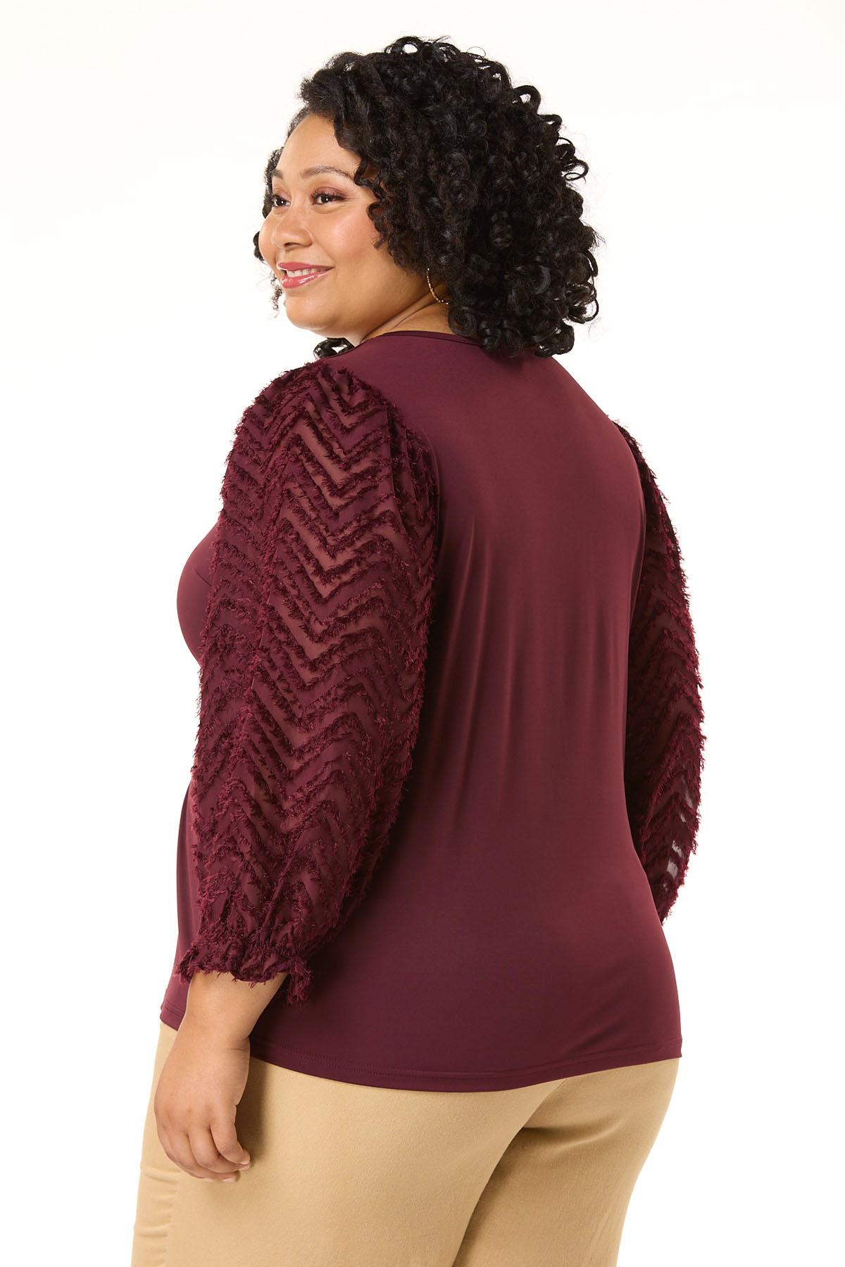 Plus Size Textured Illusion Sleeve Top