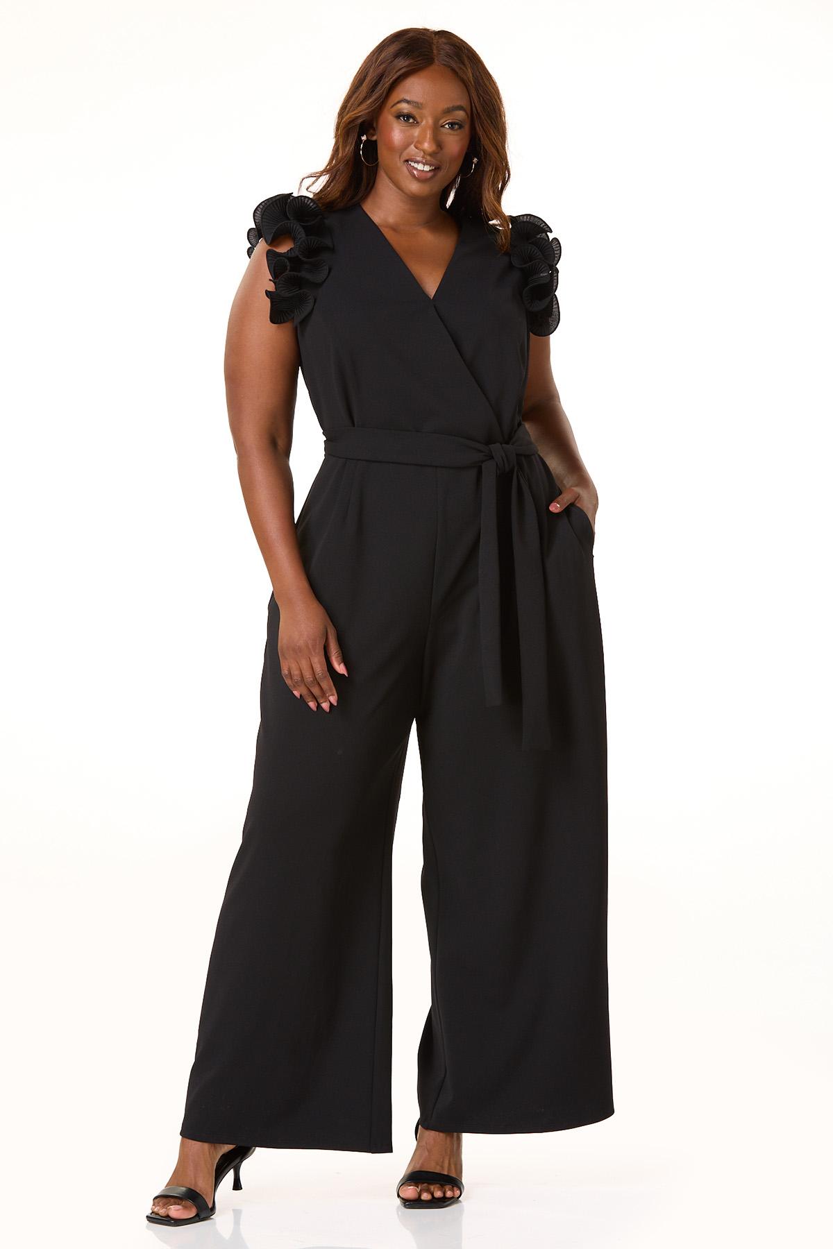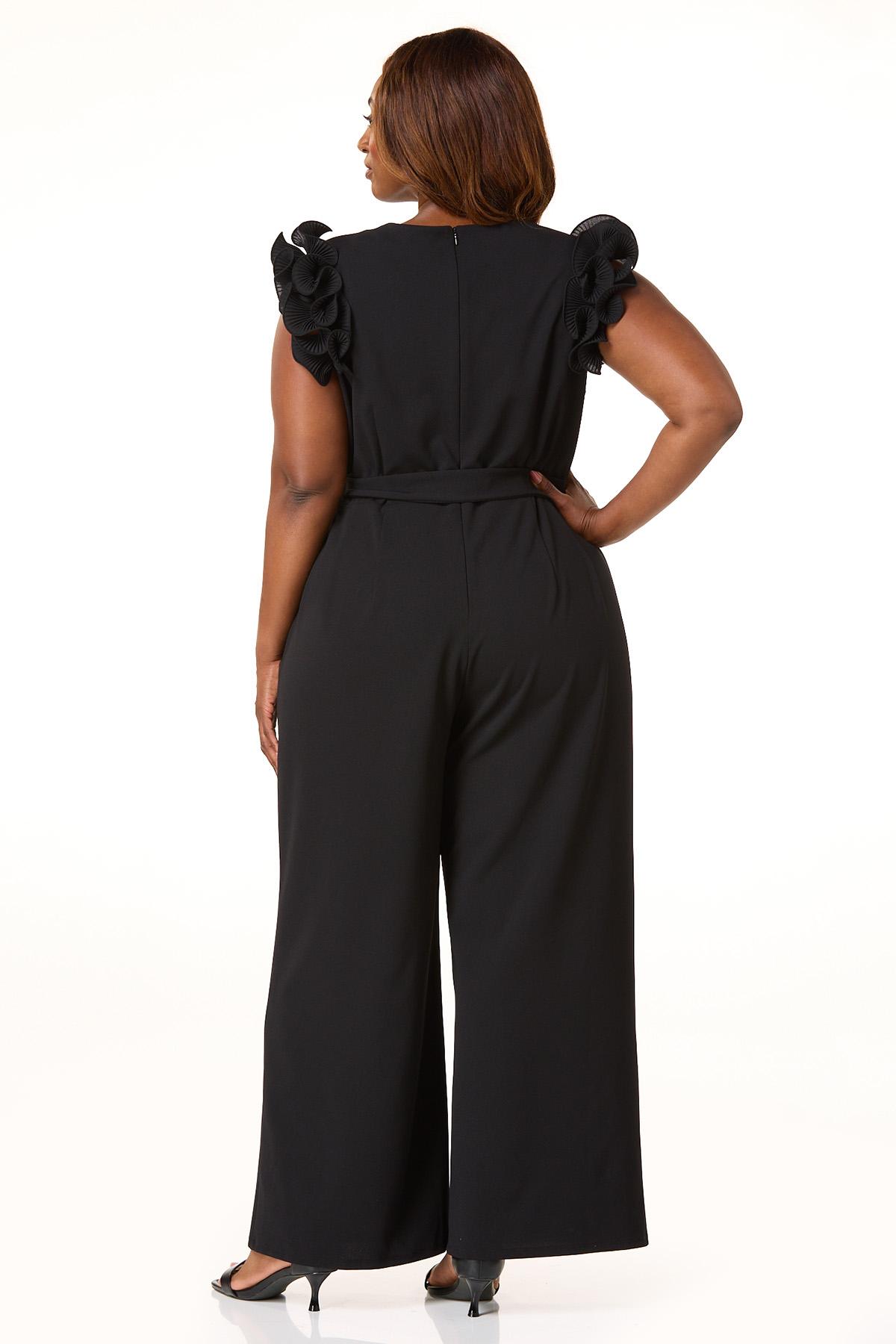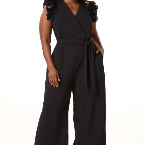 Plus Size Textured Ruffle Sleeve Jumpsuit