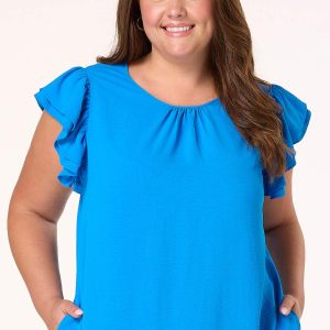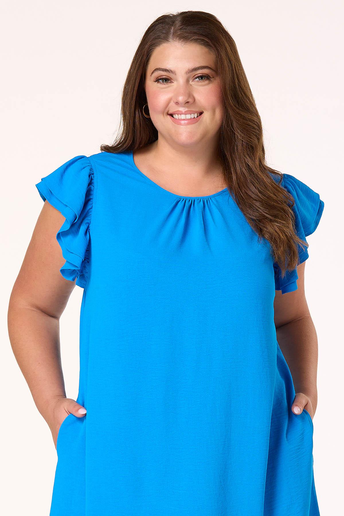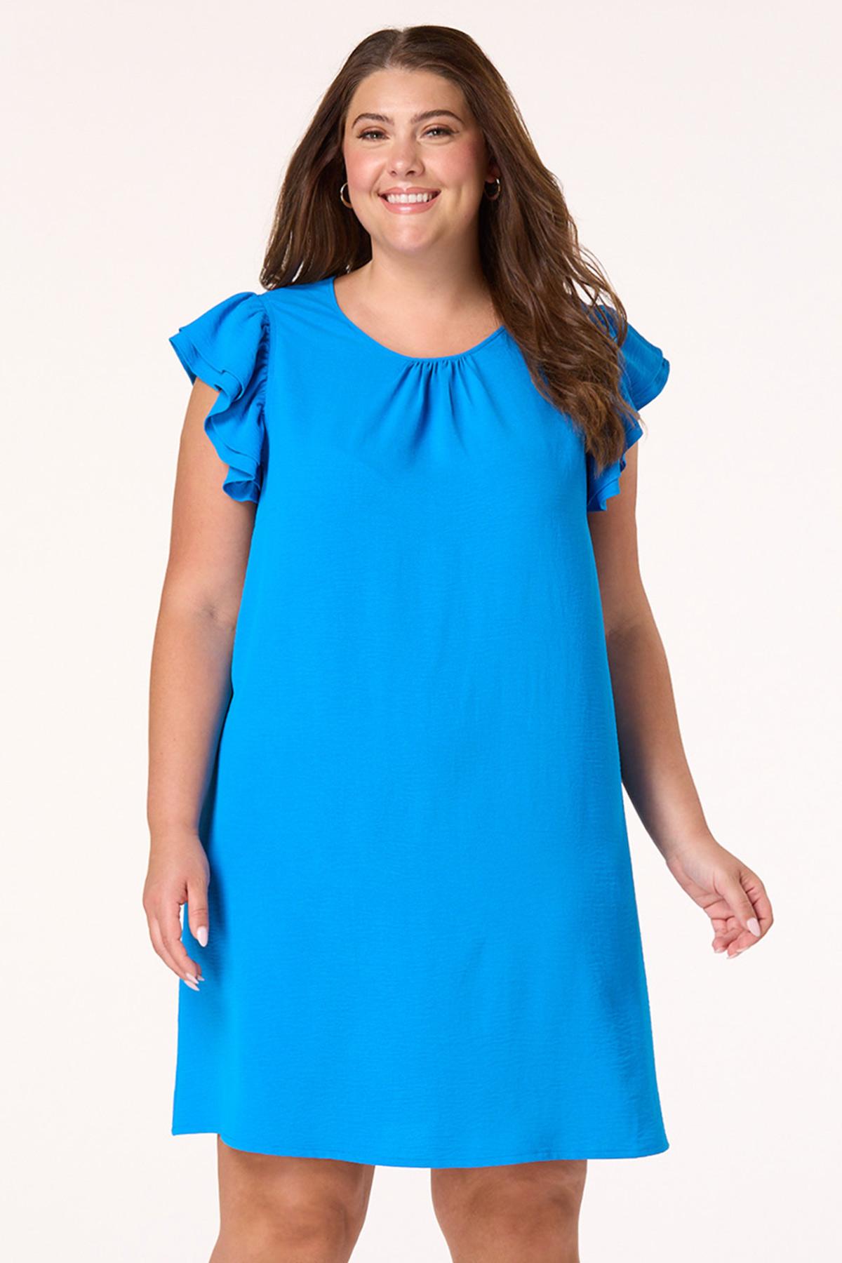 Show up looking sweet and complementing those sunny, blue skies with this darling dress, featuring double-ruffled sleeves, a relaxed fit, wrinkle-free fabric and a shade of blue for a memorable finish.