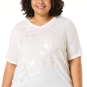 A little sparkle is always a good idea and whether you’re looking for a casual look or wanting to dress things up, this pullover style is up for both. A v-neckline, buttery-soft knit, relaxed fit, embroidered detail and clear ivory sequins are all the details that make this one a special addition to your wardrobe.