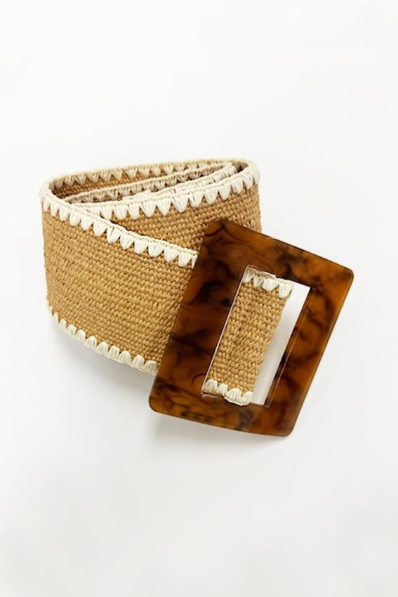Plus Size Tortoise Buckle Raffia Stretch Belt