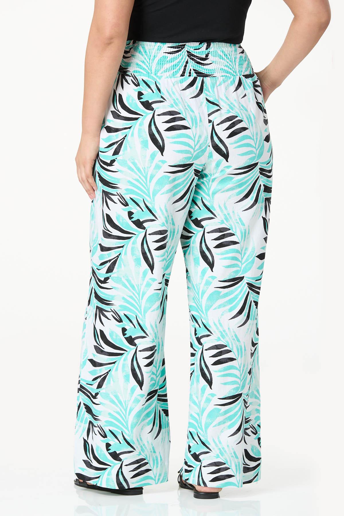 Sunshine and fun times are calling with this statement style, featuring a smocked, pull-on waist, tropical-leaf print and a breezy, wide-leg silhouette for a look that is ready to elevate a simple tee or tank for your moment in the sun.