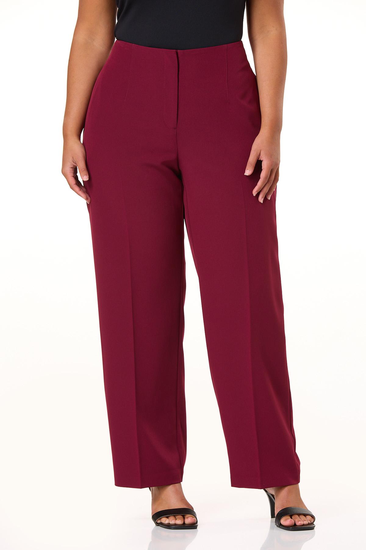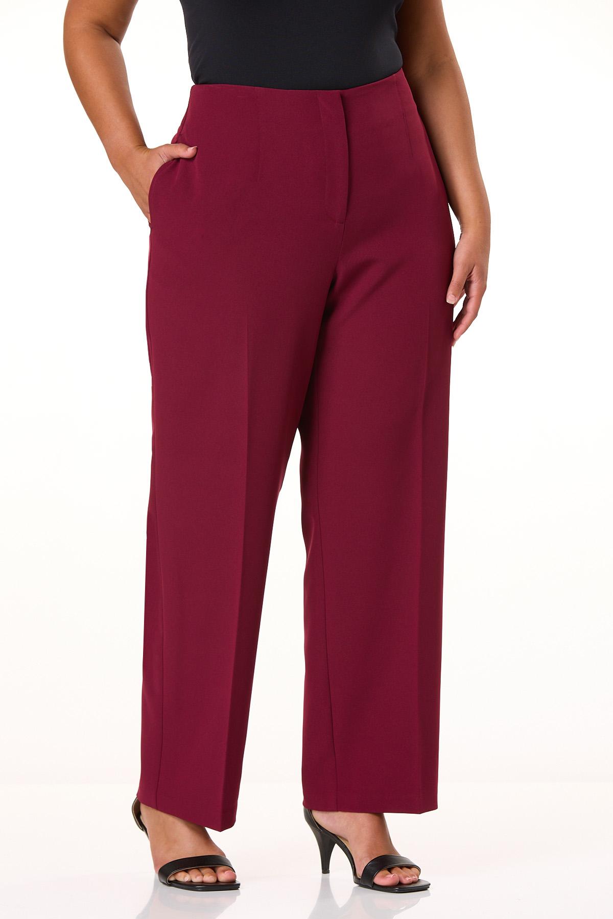Make a bold fall statement in these woven wide-leg pants in a rich rhubarb red. The waistband is built directly into the garment, giving it a smooth, seamless look. Keep it casual with a tucked-in tee, or pair with the matching ruched-waist blazer.