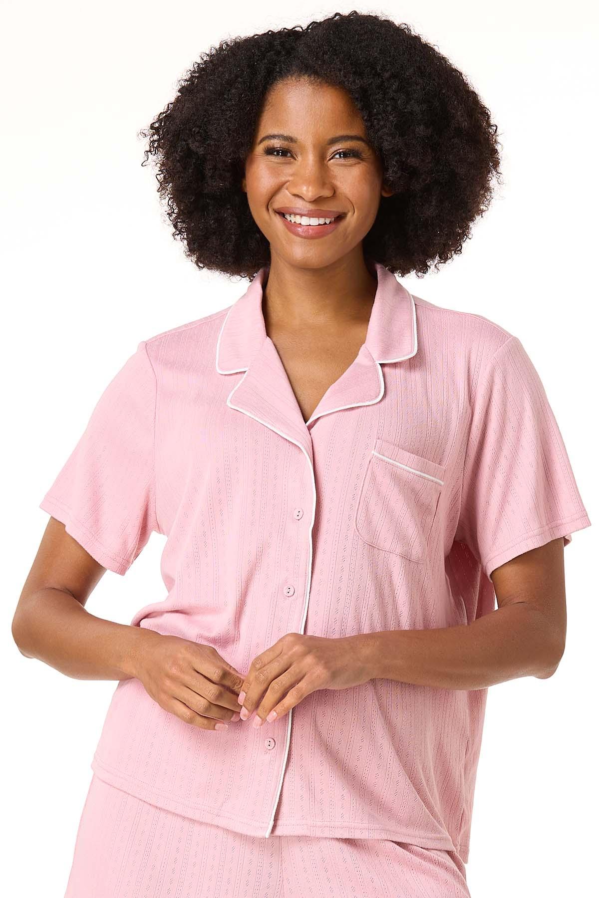 Drift off in comfort with this cozy sleepwear set, featuring a matching top and bottoms for easy, feel-good style all night long.