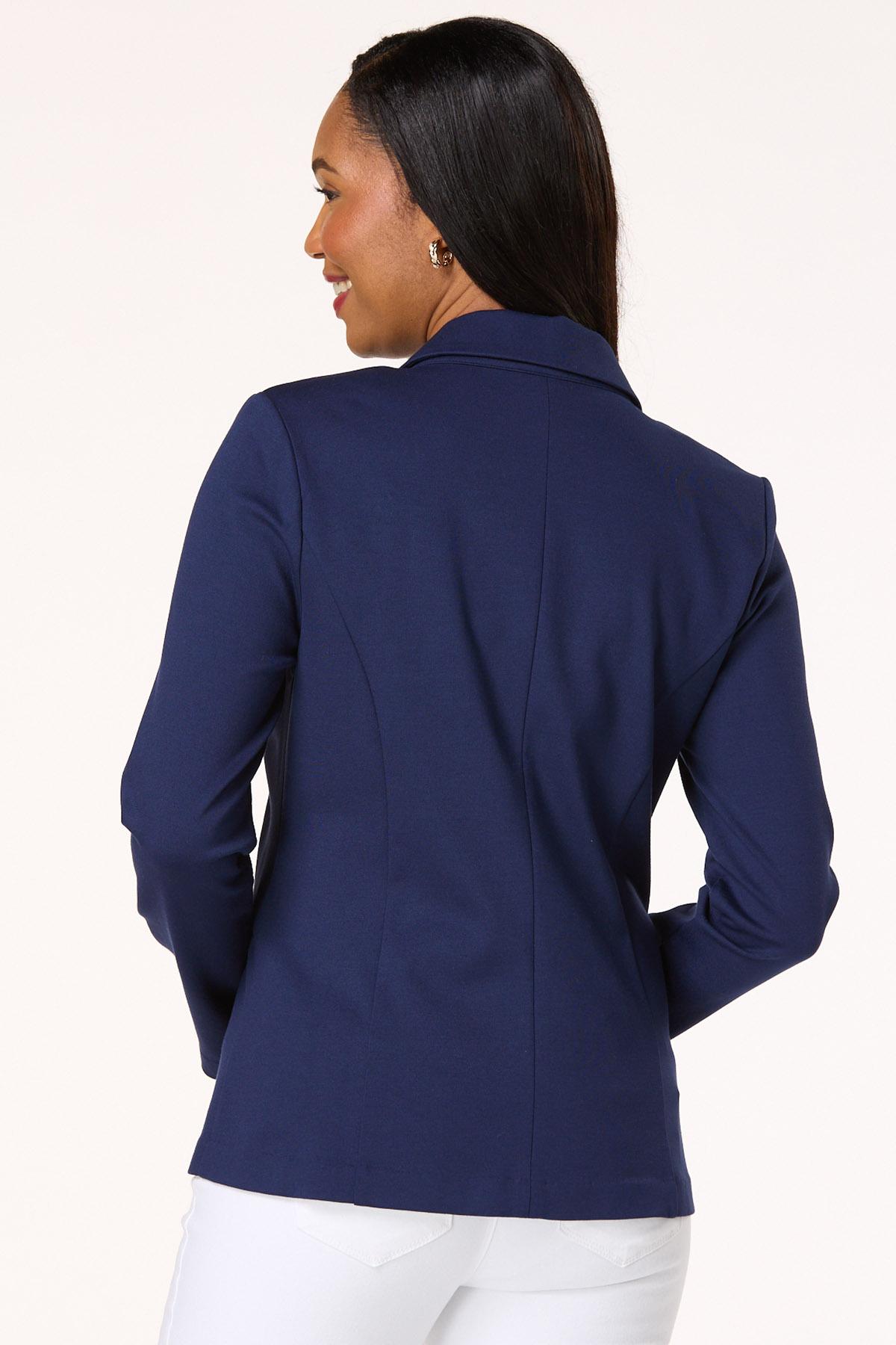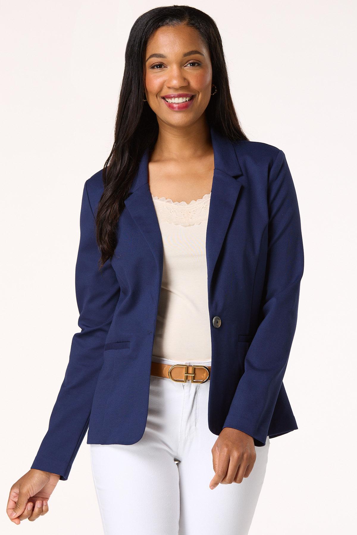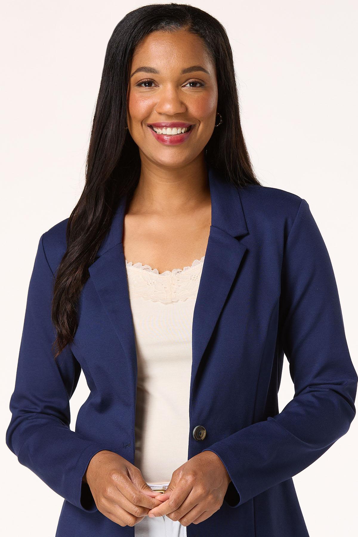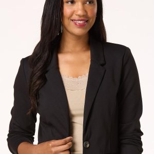 Meet your new go-to blazer, crafted in a soft yet structured ponte knit that moves with you. The single-button closure and seams create a flattering, figure-enhancing silhouette that elevates any outfit. Whether you’re layering over a tee or styling it for work, this blazer brings polish with a touch of stretch.