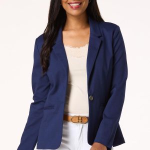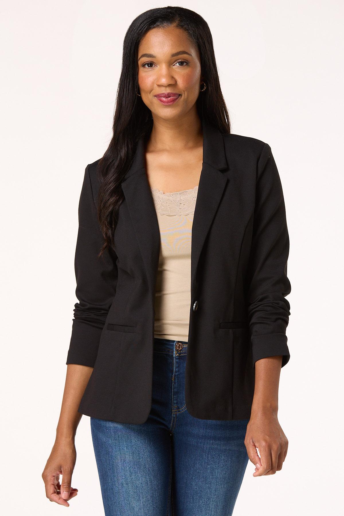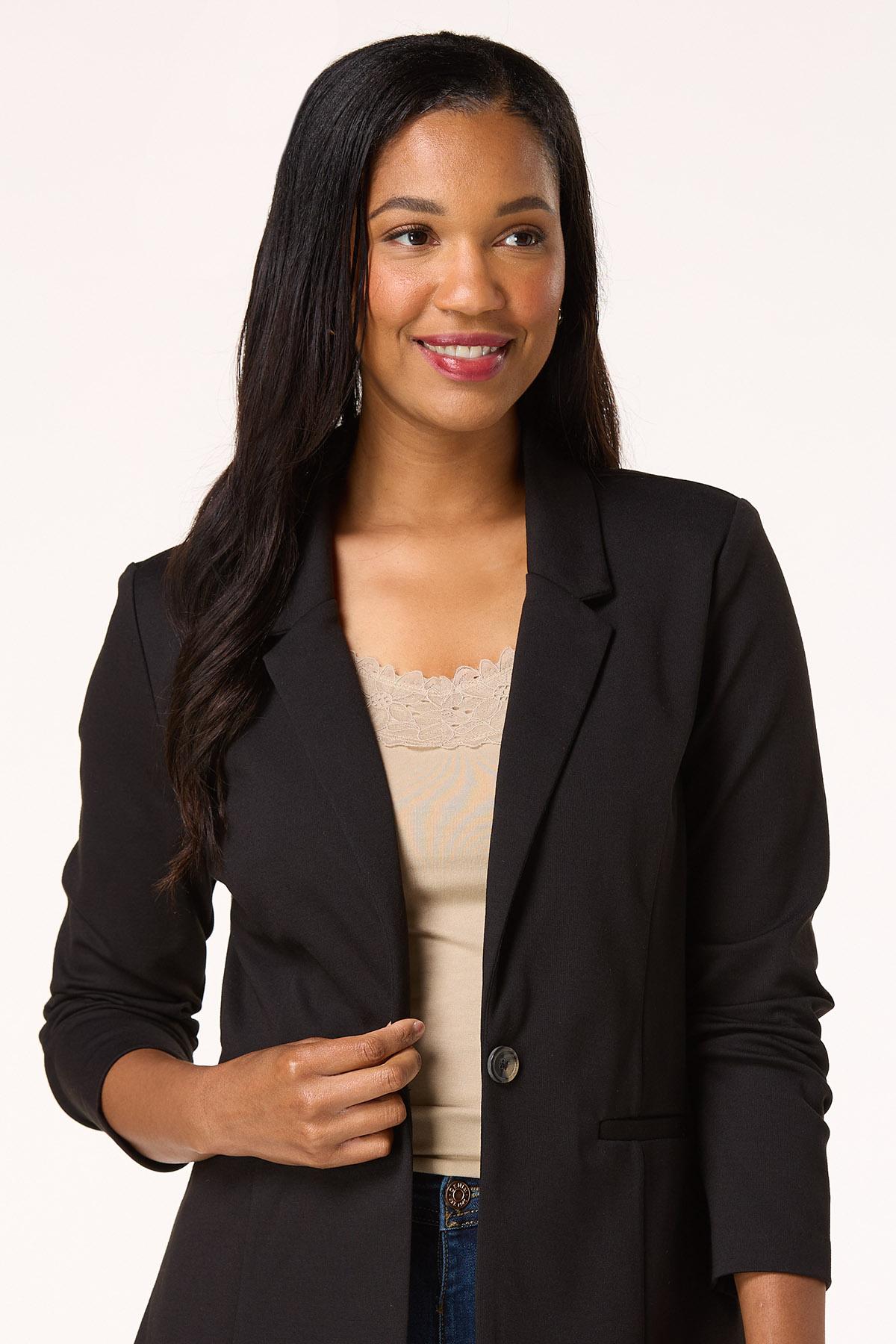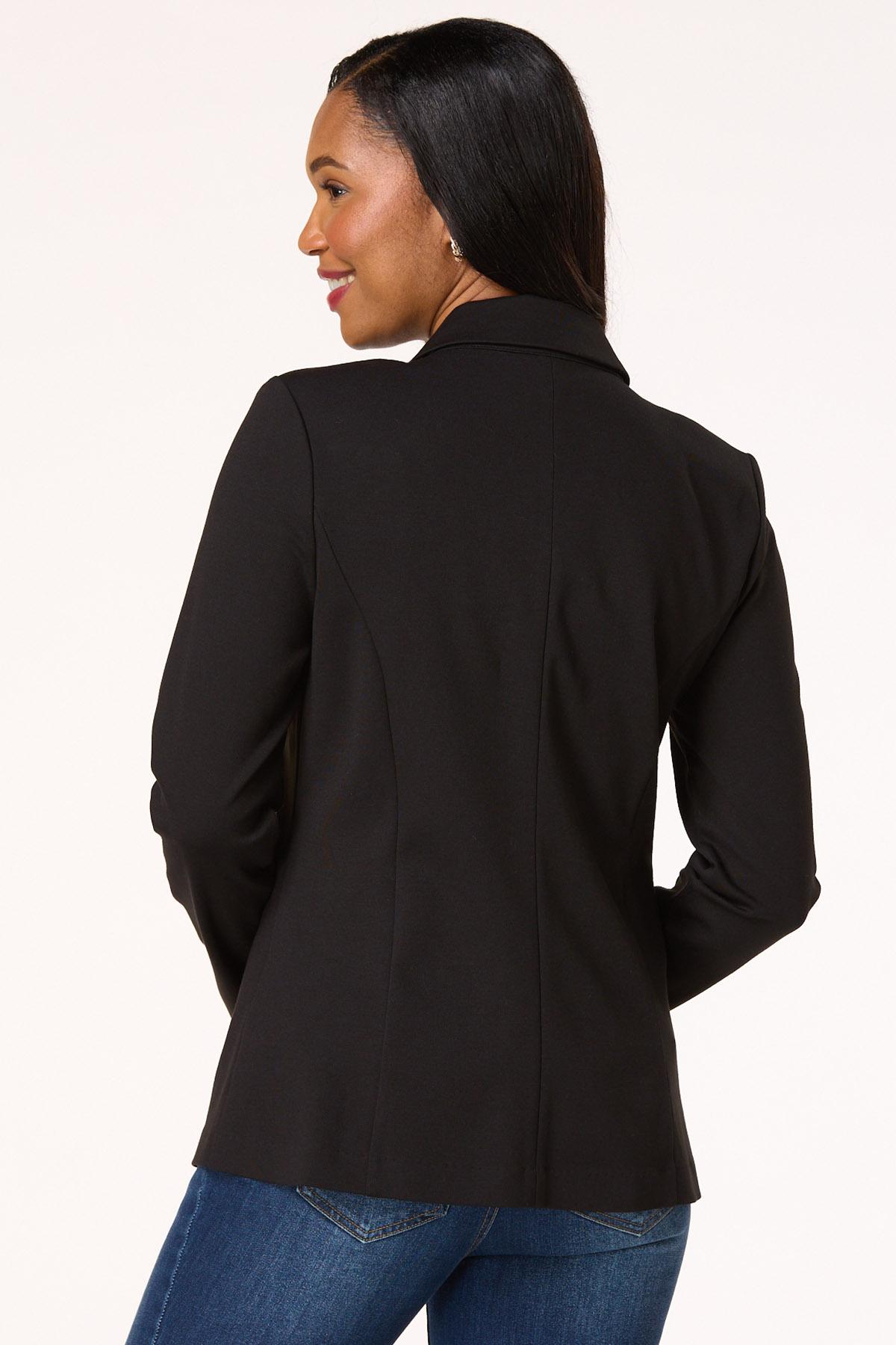 Meet your new go-to blazer, crafted in a soft yet structured ponte knit that moves with you. The single-button closure and seams create a flattering, figure-enhancing silhouette that elevates any outfit. Whether you’re layering over a tee or styling it for work, this blazer brings polish with a touch of stretch.