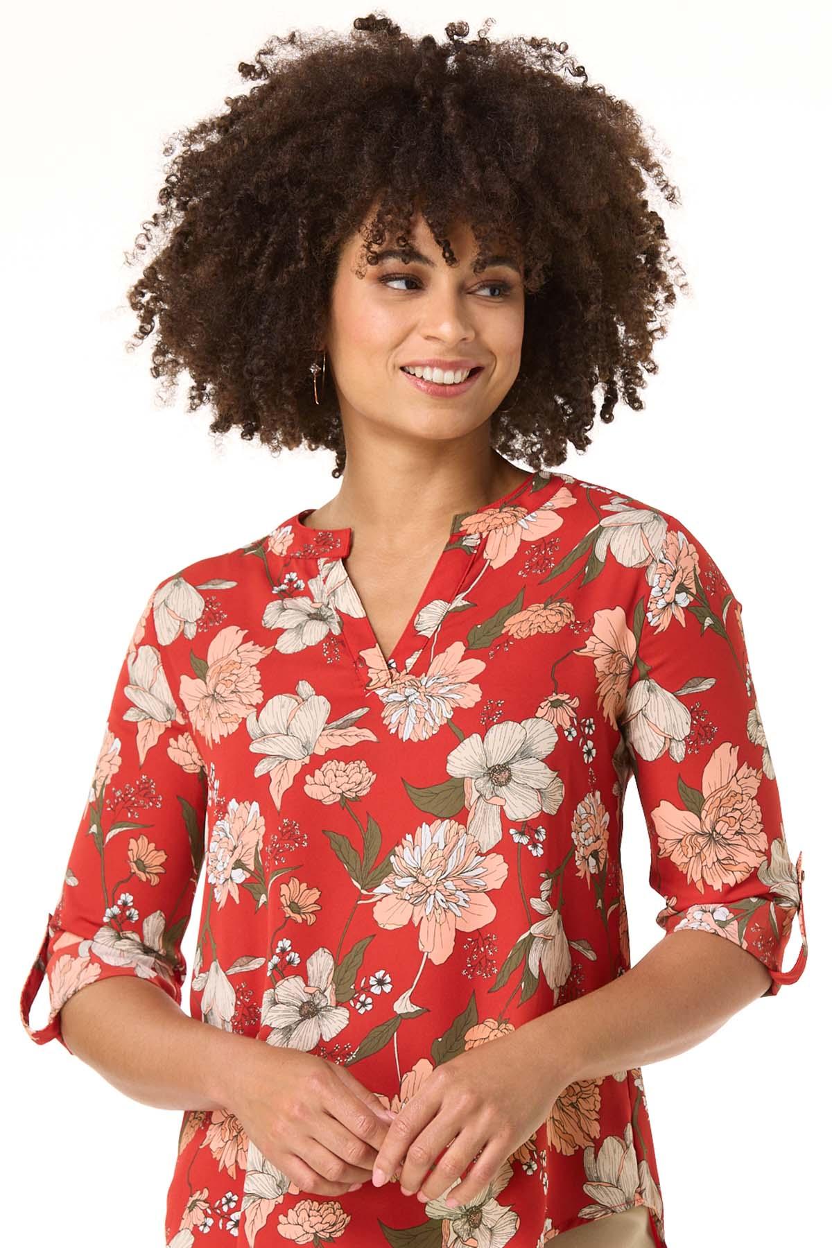 Red Floral High- Low Top