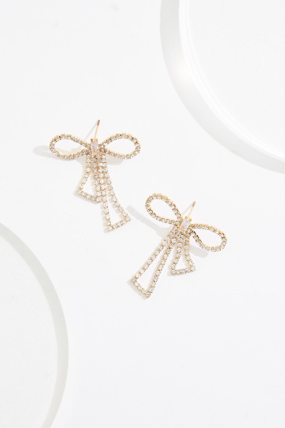 Rhinestone Gold Bow Earrings
