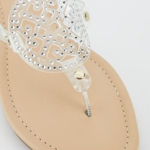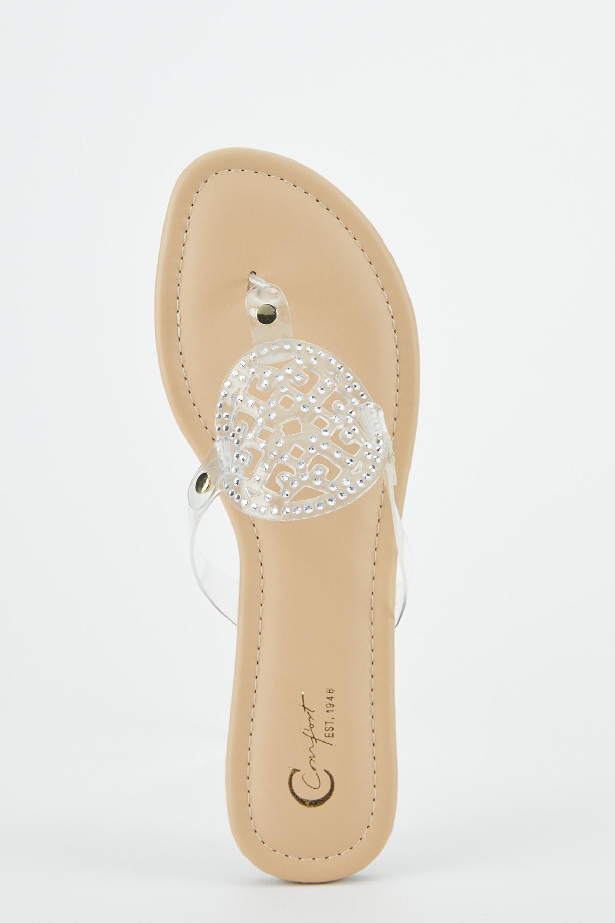 Rhinestone Lucite Medallion Sandals