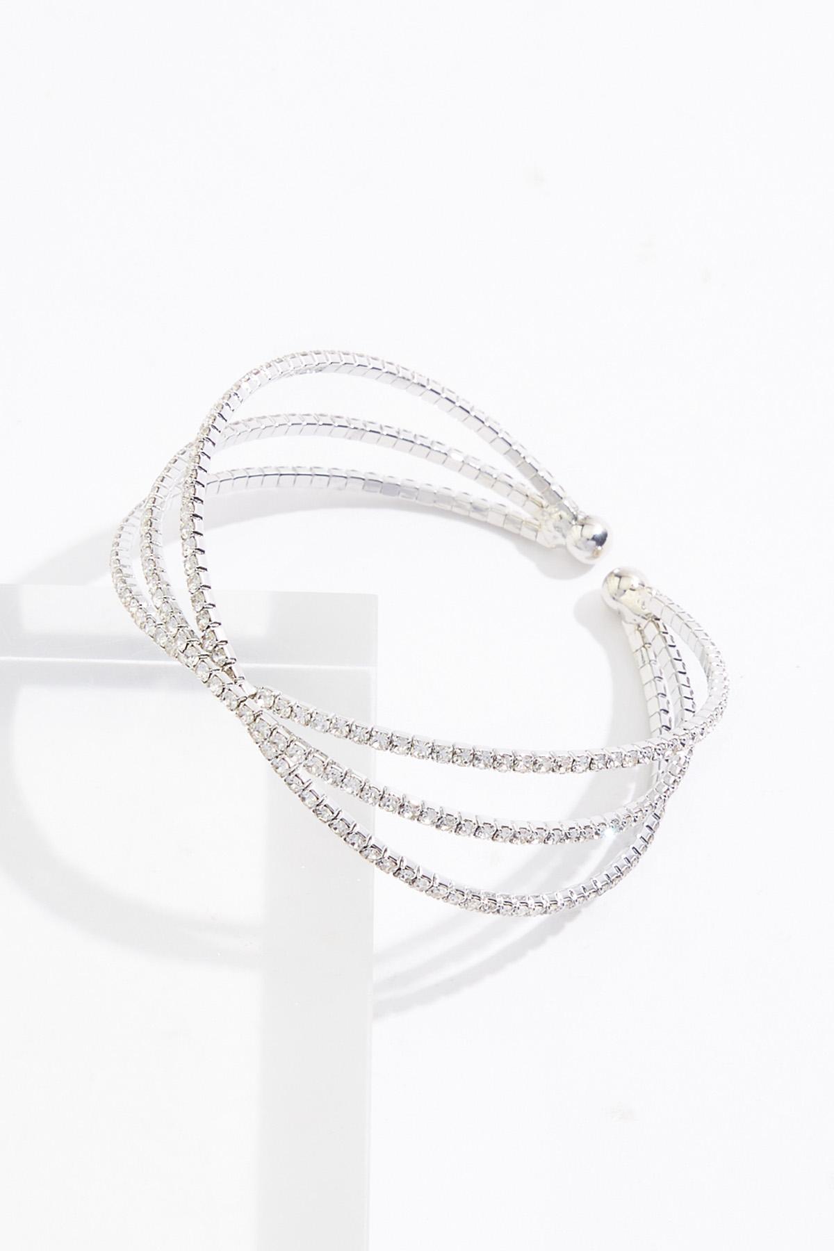 Rhinestone Overlap Strand Flex Cuff Bracelet