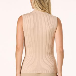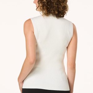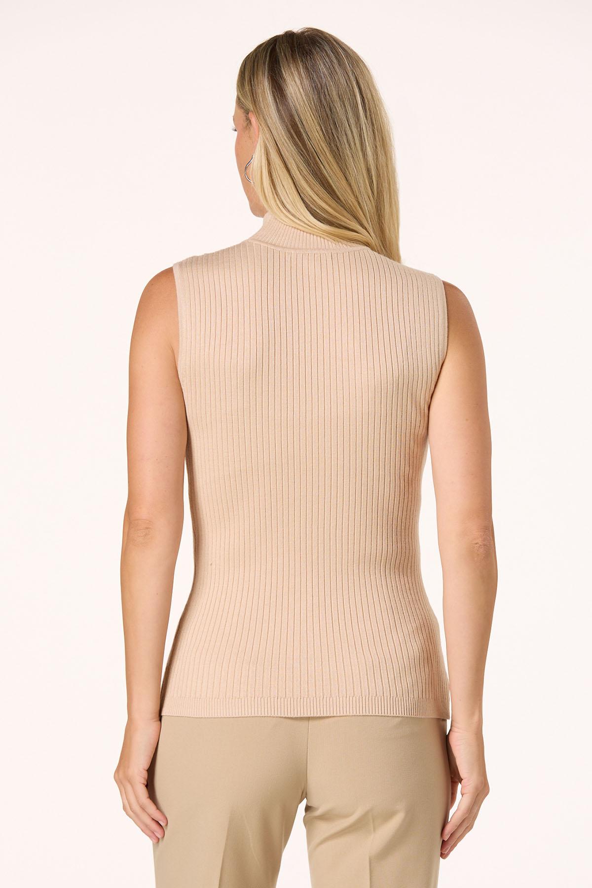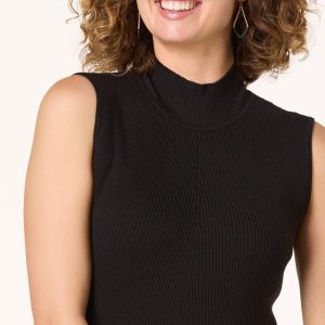 Elevate your everyday essentials with this ribbed sleeveless mock neck sweater. Designed with clean lines and subtle texture, it’s the perfect balance of form and function. Wear it solo or layered under blazers or a jacket for a polished, modern look.