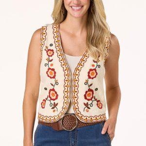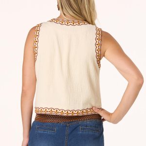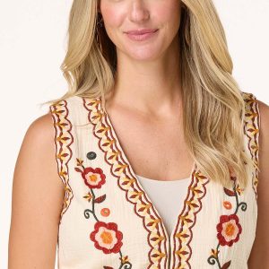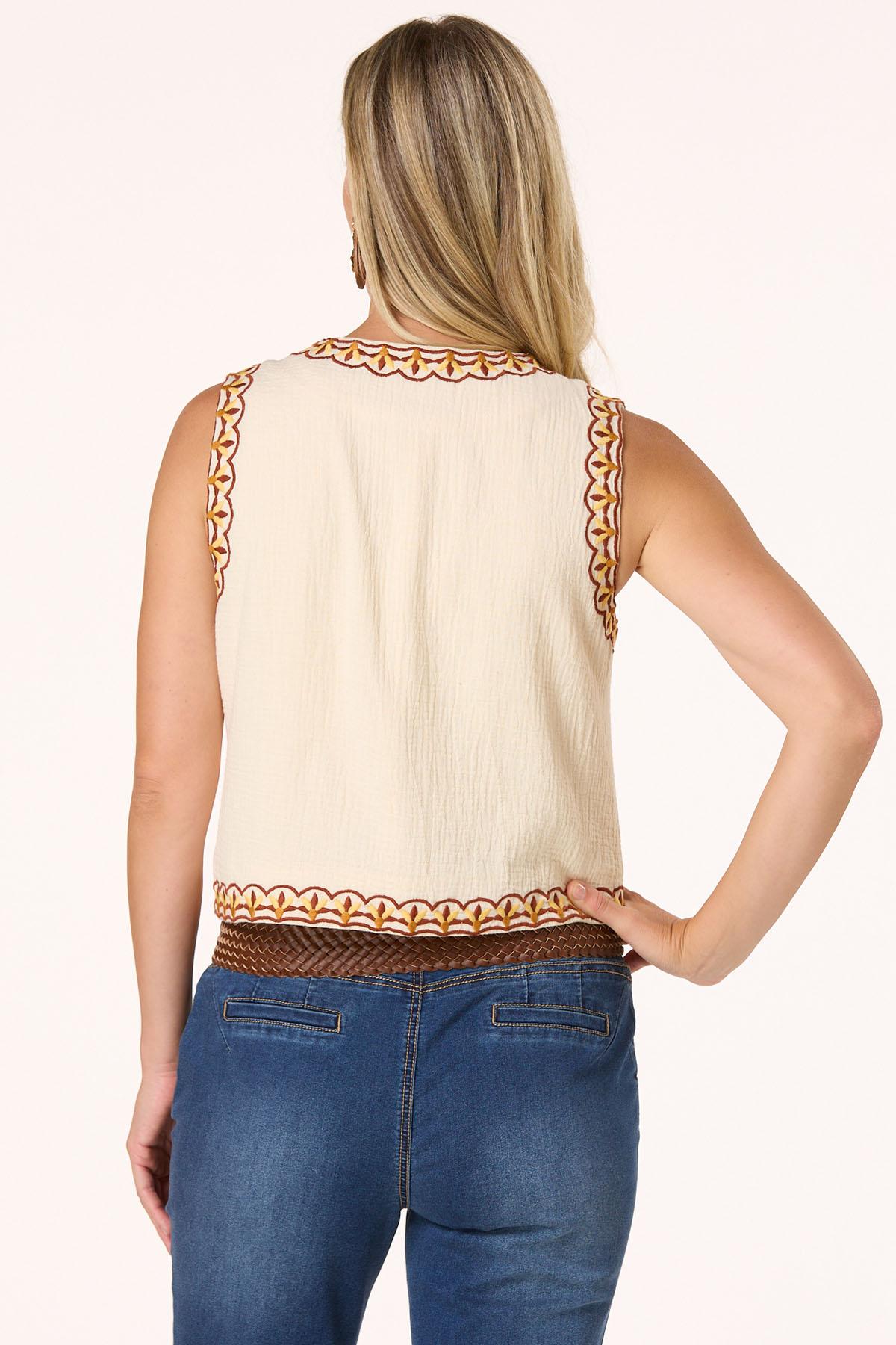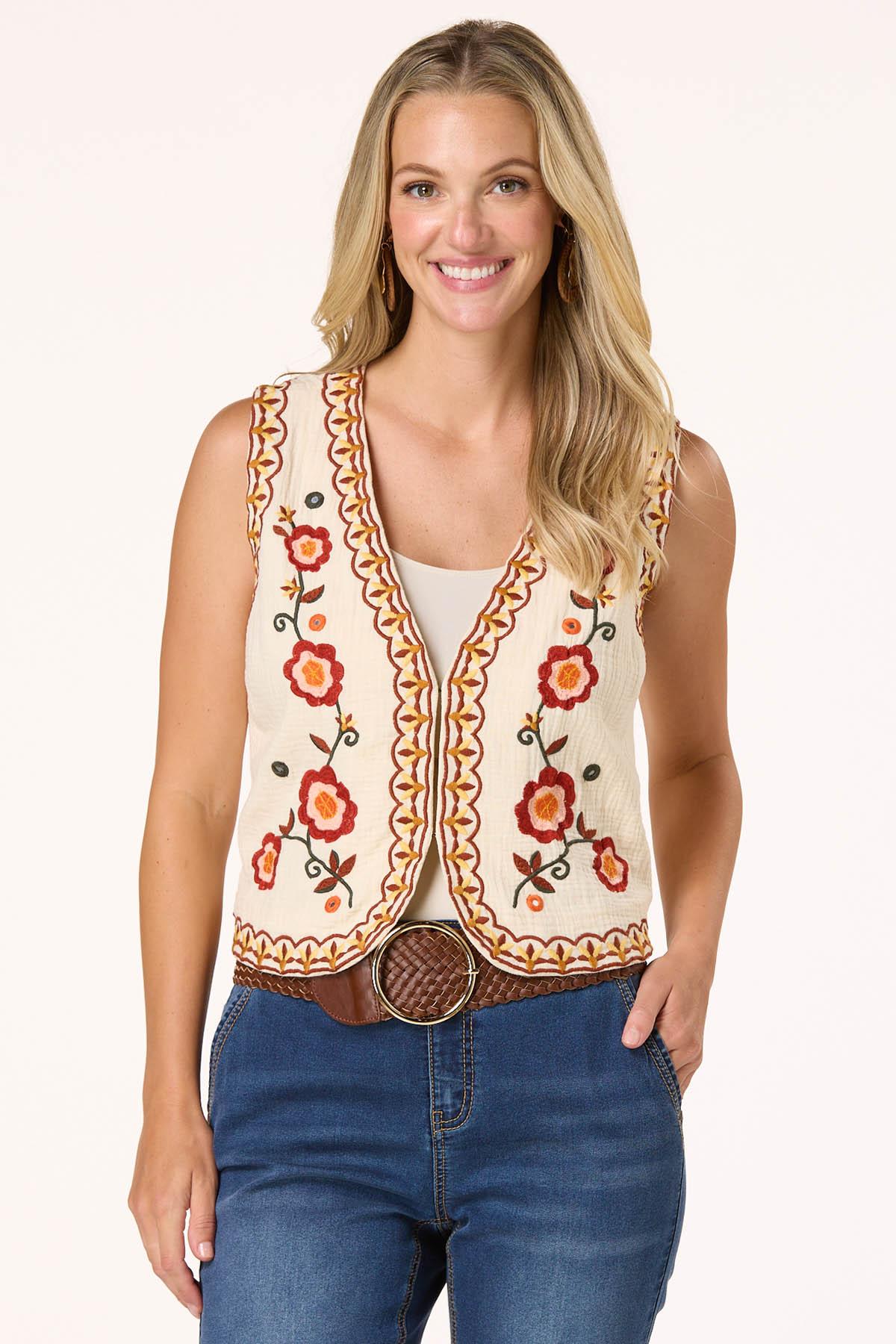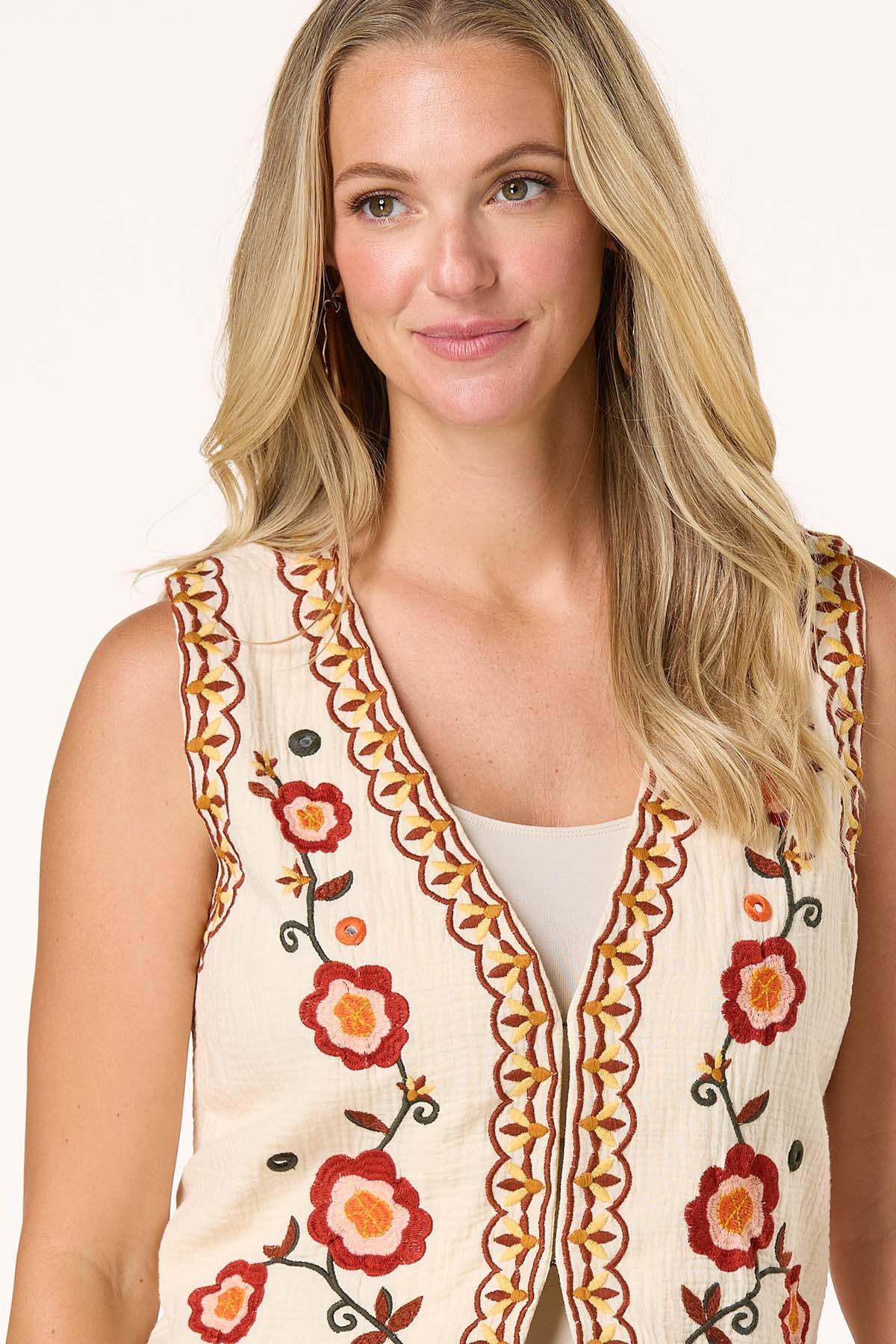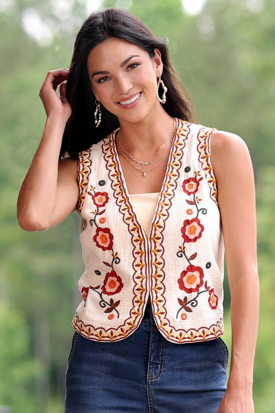 Layer on texture with this beautiful vest, featuring a ripple weave fabric and charming embroidered details. Style it over a solid tee or a flowy dress – however you wear it, this vest is your shortcut to standout style with a handcrafted feel.