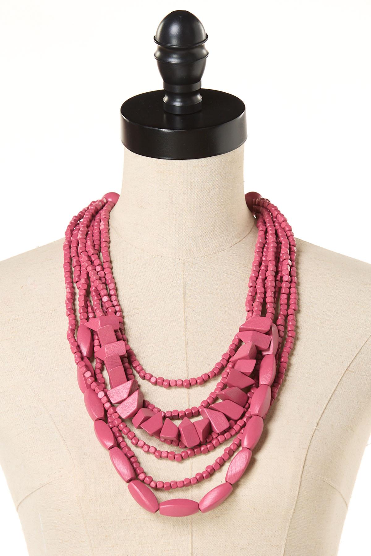 Rose Wood Layered Long Necklace