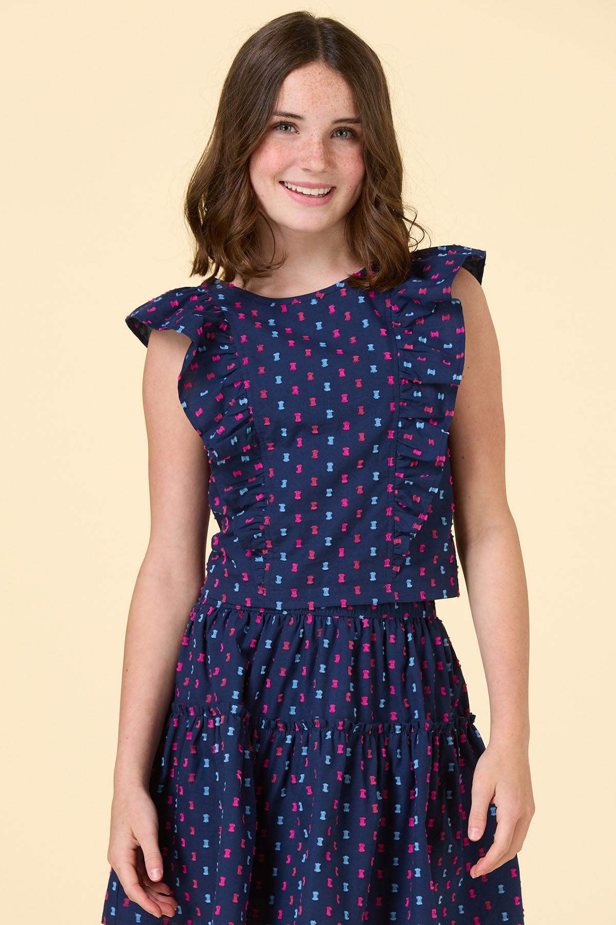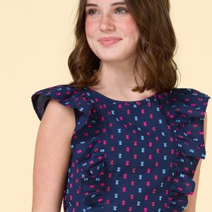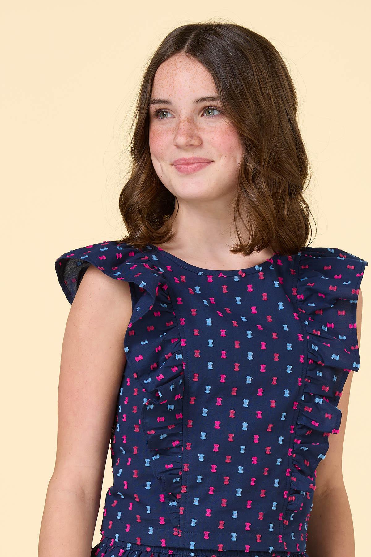 You’ll be set for summer and looking so-cute, too. A scoop neckline meets ruffled detail, while a clip dot texture and cool-cotton fabric are topped by beautiful berry hues for the sweetest finish. Pair with denim shorts or our matching ruffled clip dot skort for a ‘fit that both you and your friends will be loving.