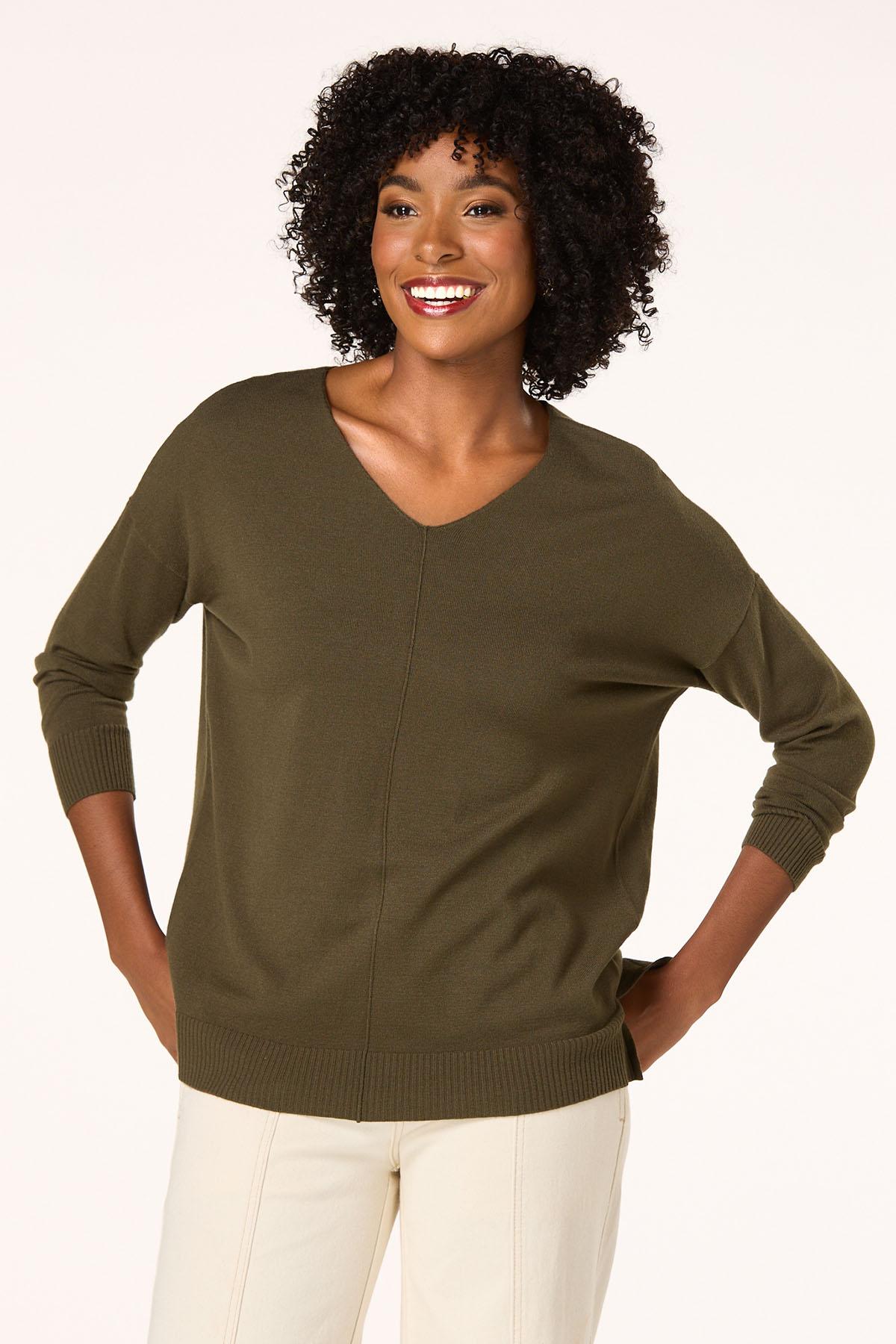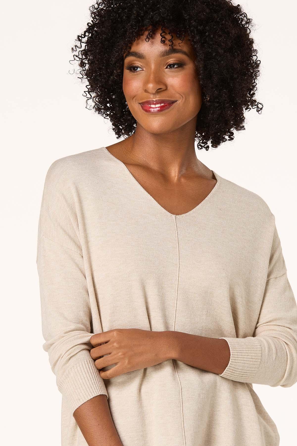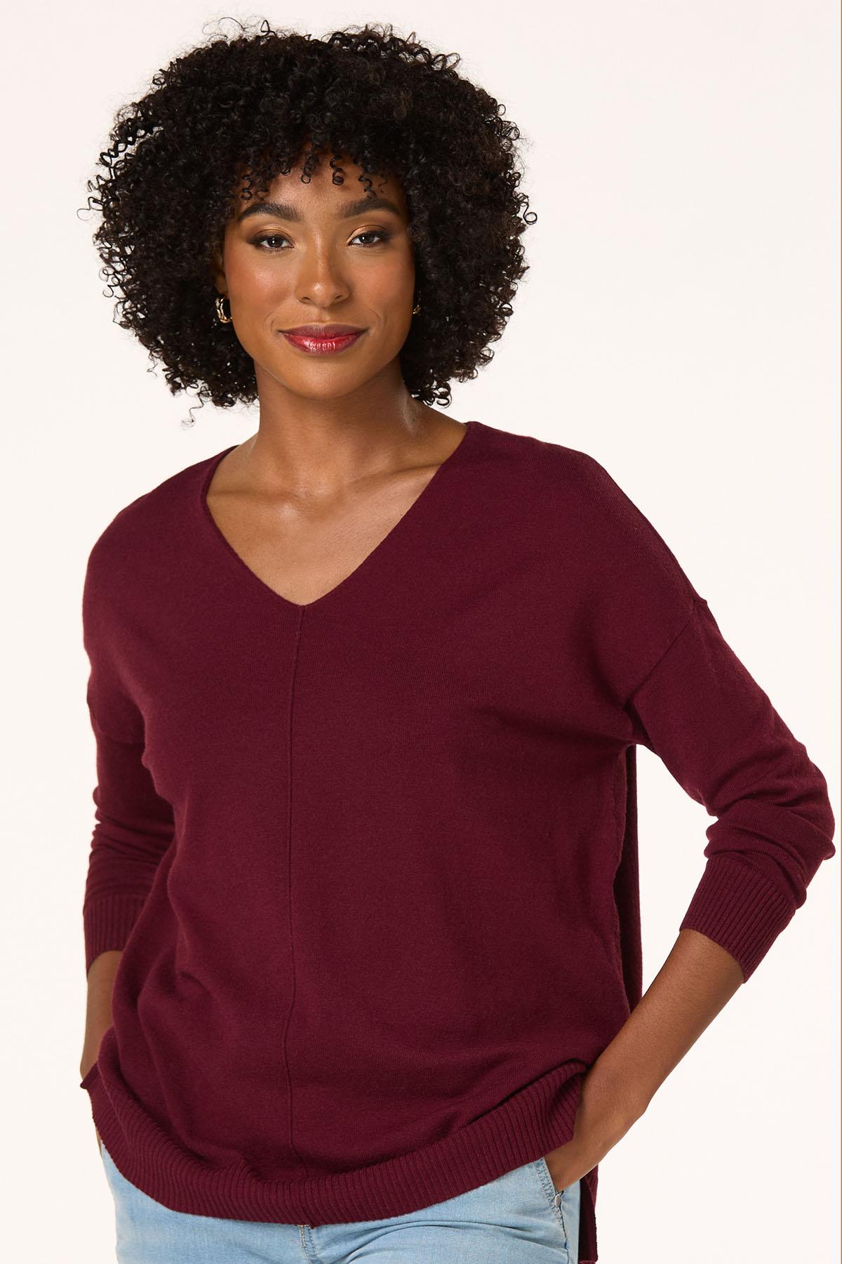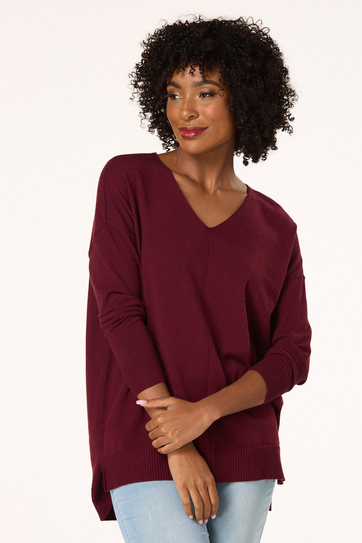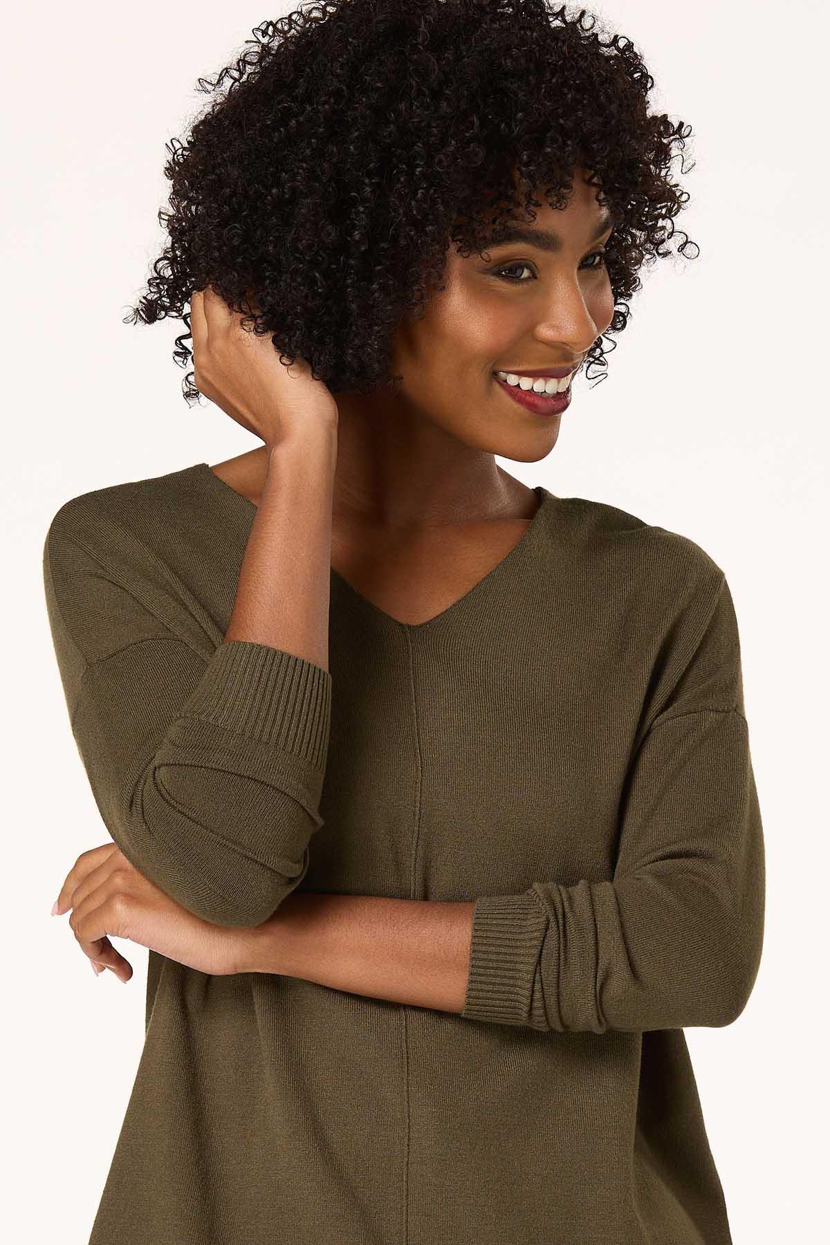 Now, here’s a look you will fall for. A seamed front and drop shoulder sleeves top off a so-soft feel and comfy fit for a look you’ll love warming up to.