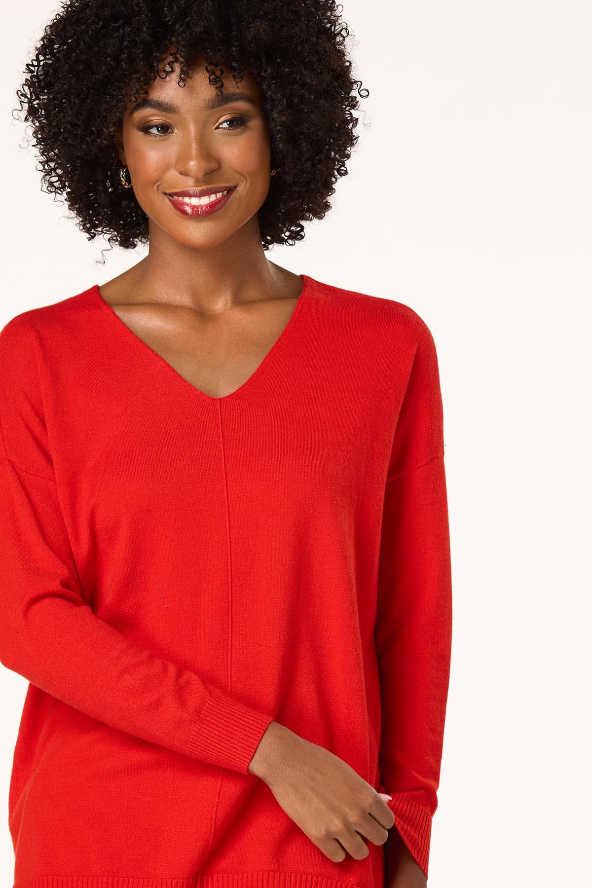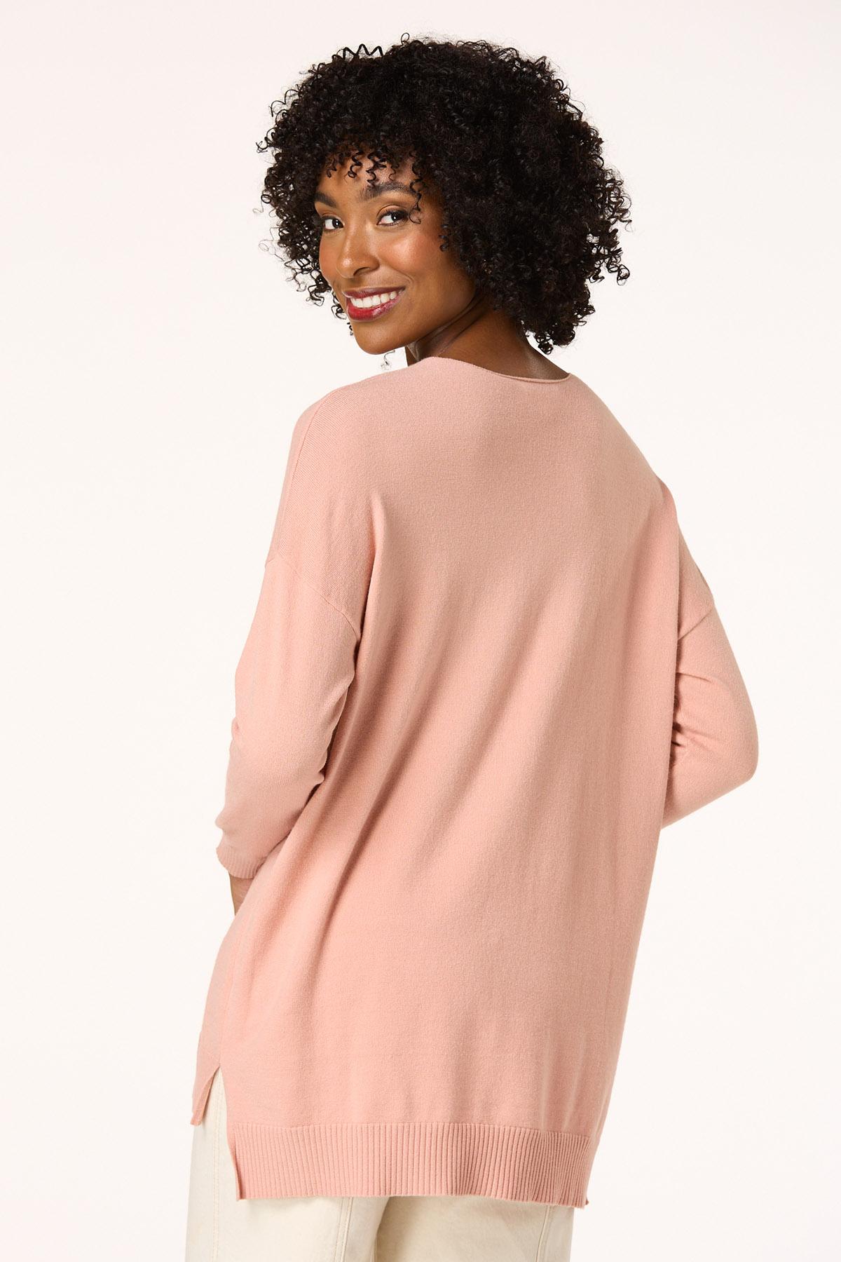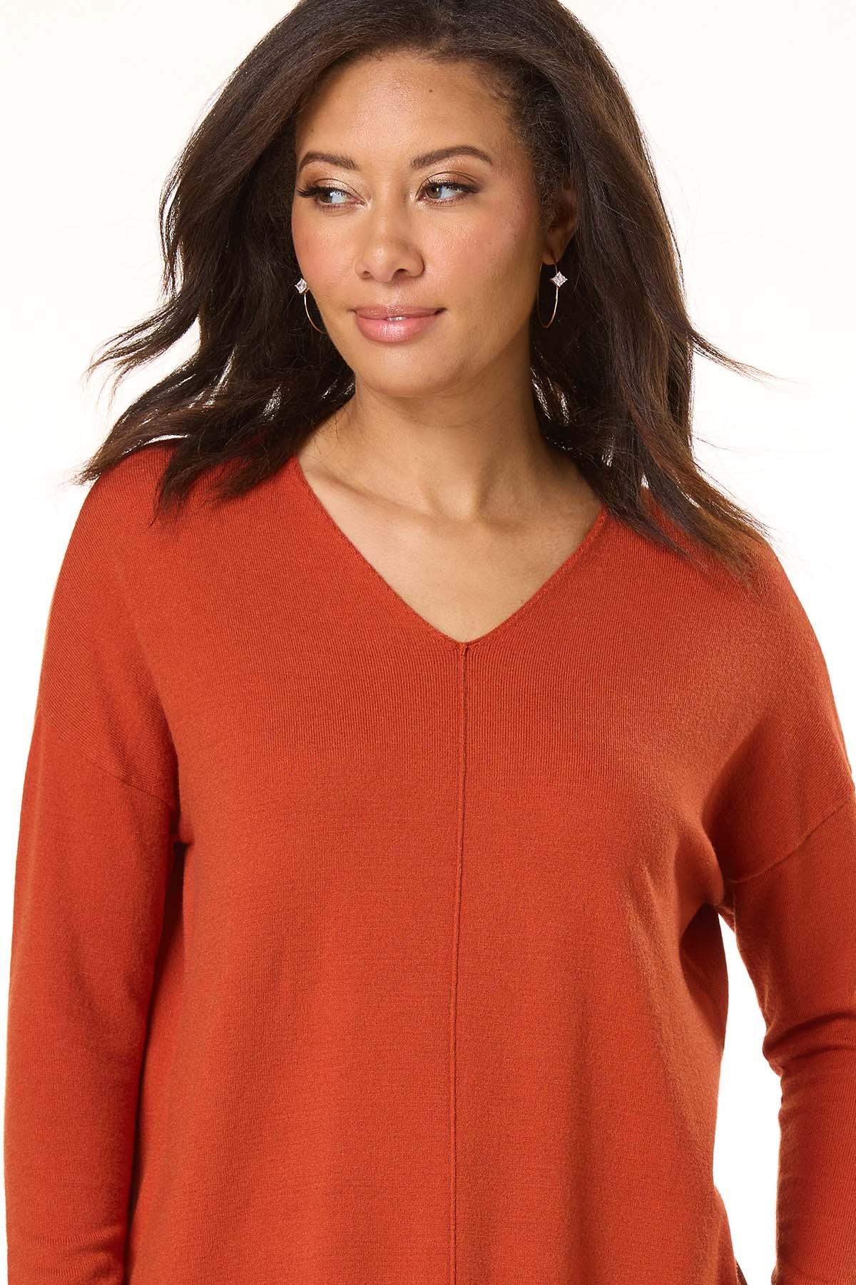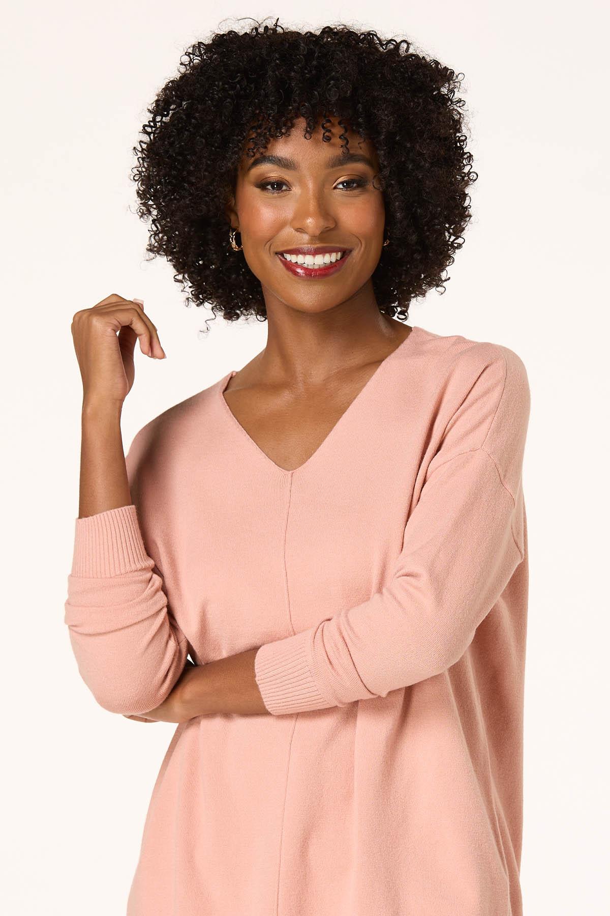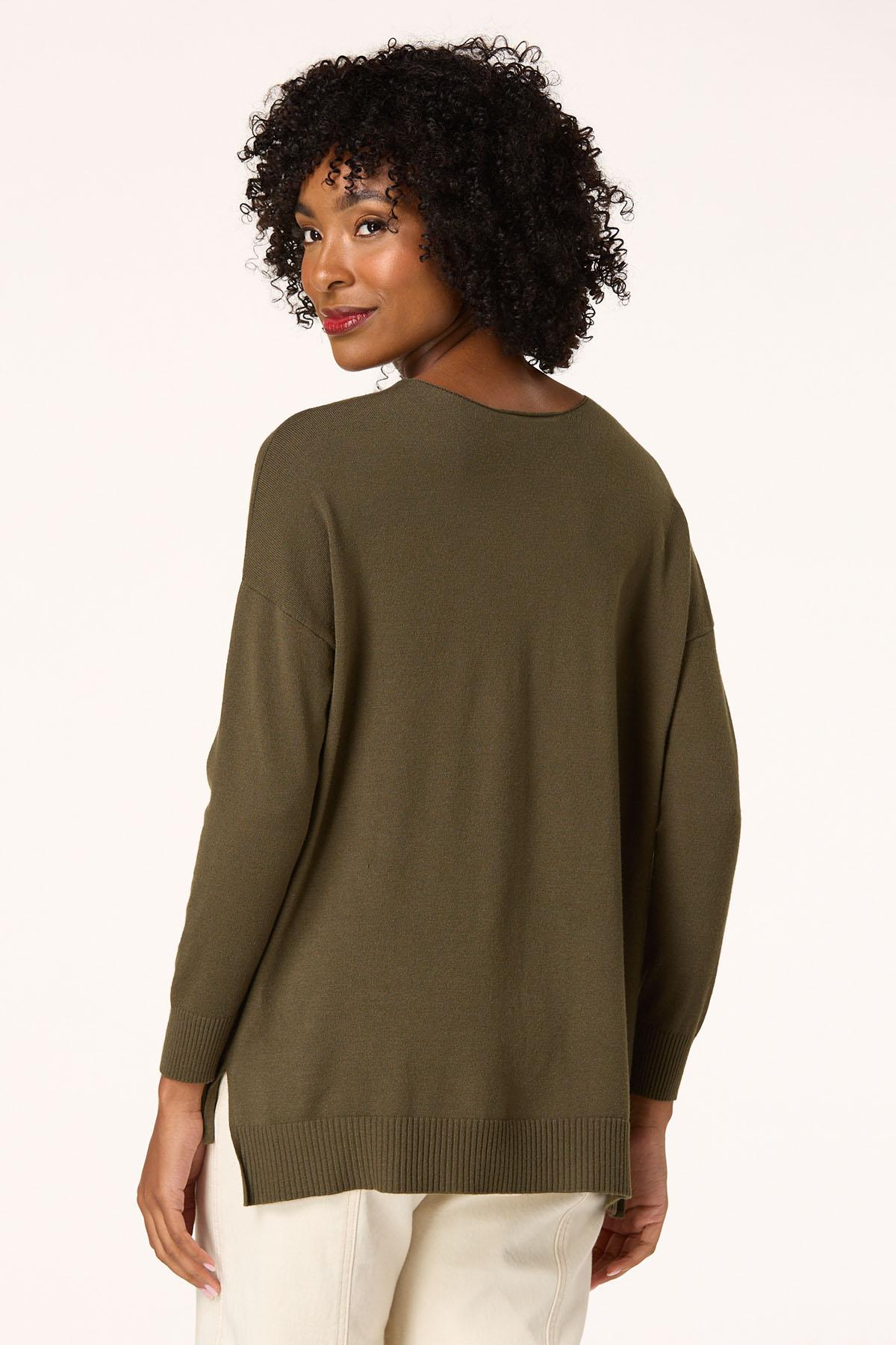Now, here’s a look you will fall for. A seamed front and drop shoulder sleeves top off a so-soft feel and comfy fit for a look you’ll love warming up to.