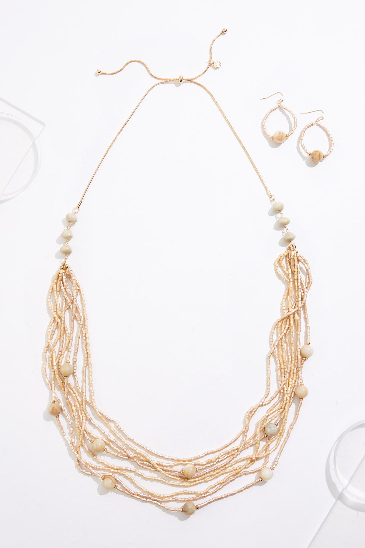 Seed Bead Layered Long Necklace Set