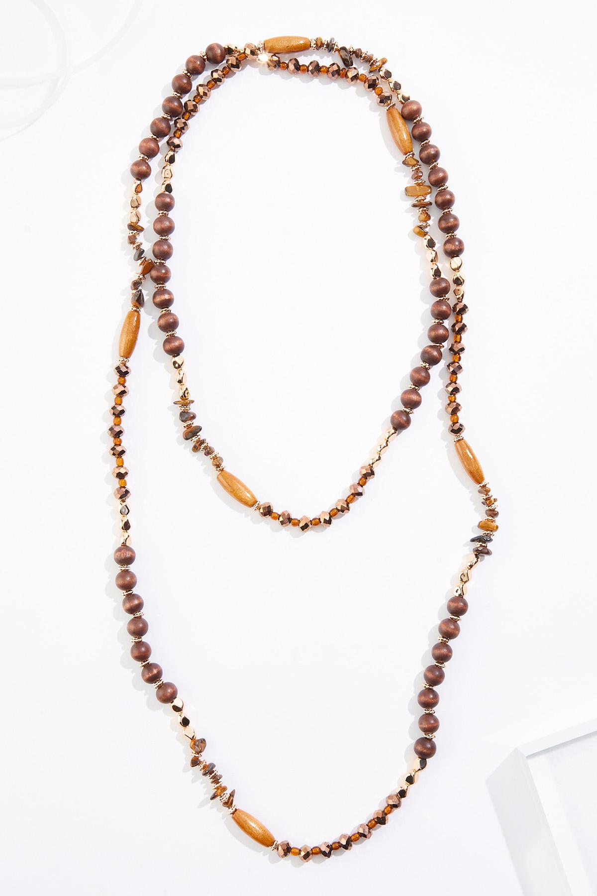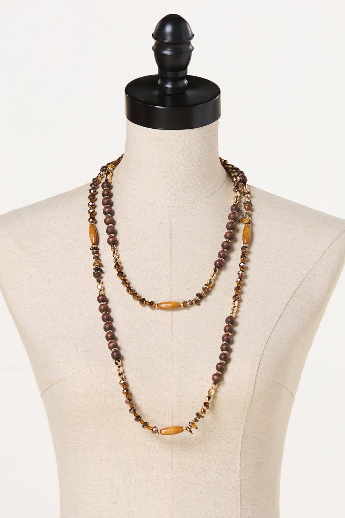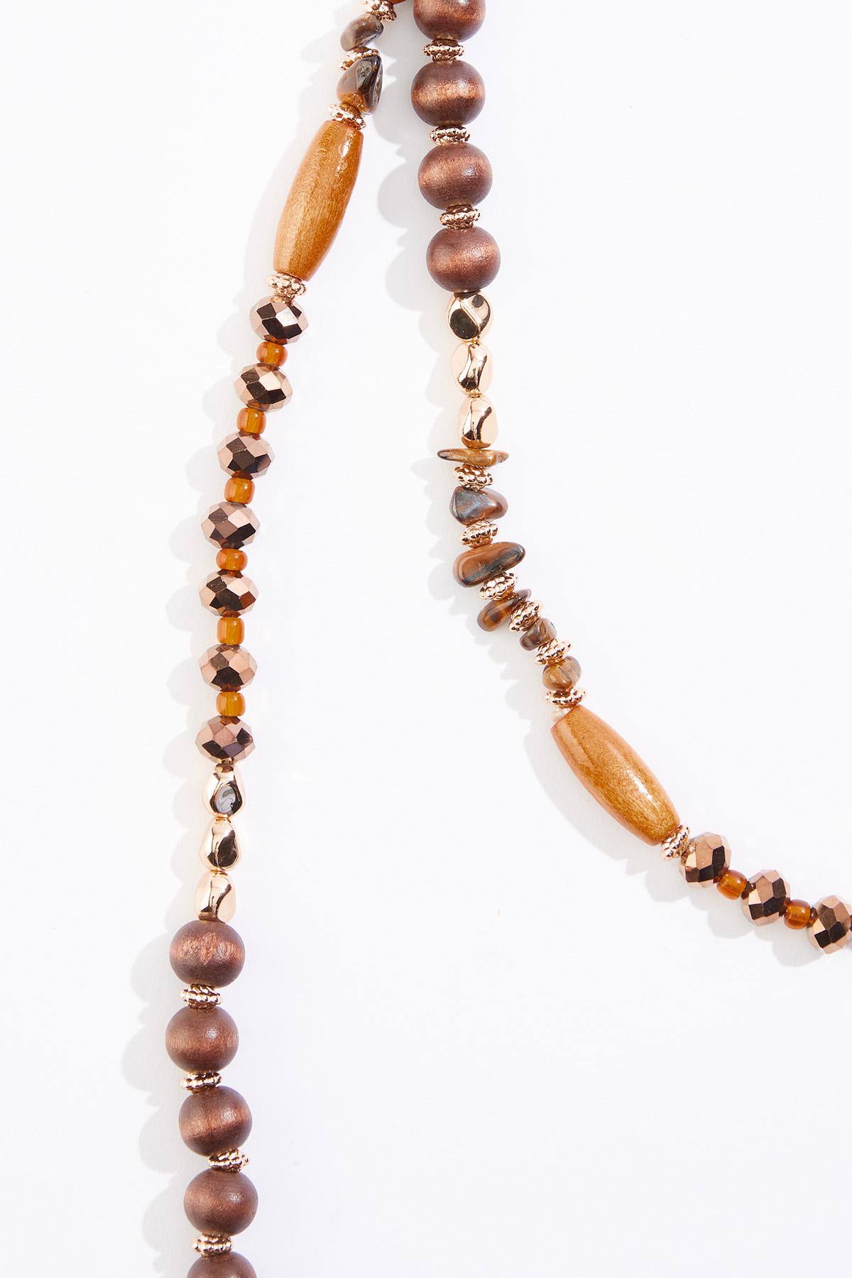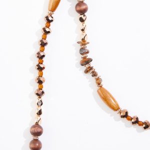 Semi- Precious Gold Wood Beaded Long Layered Necklace
