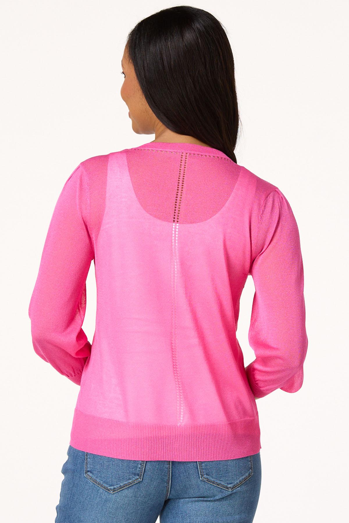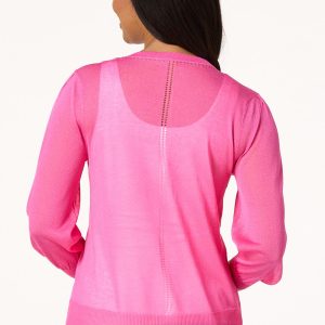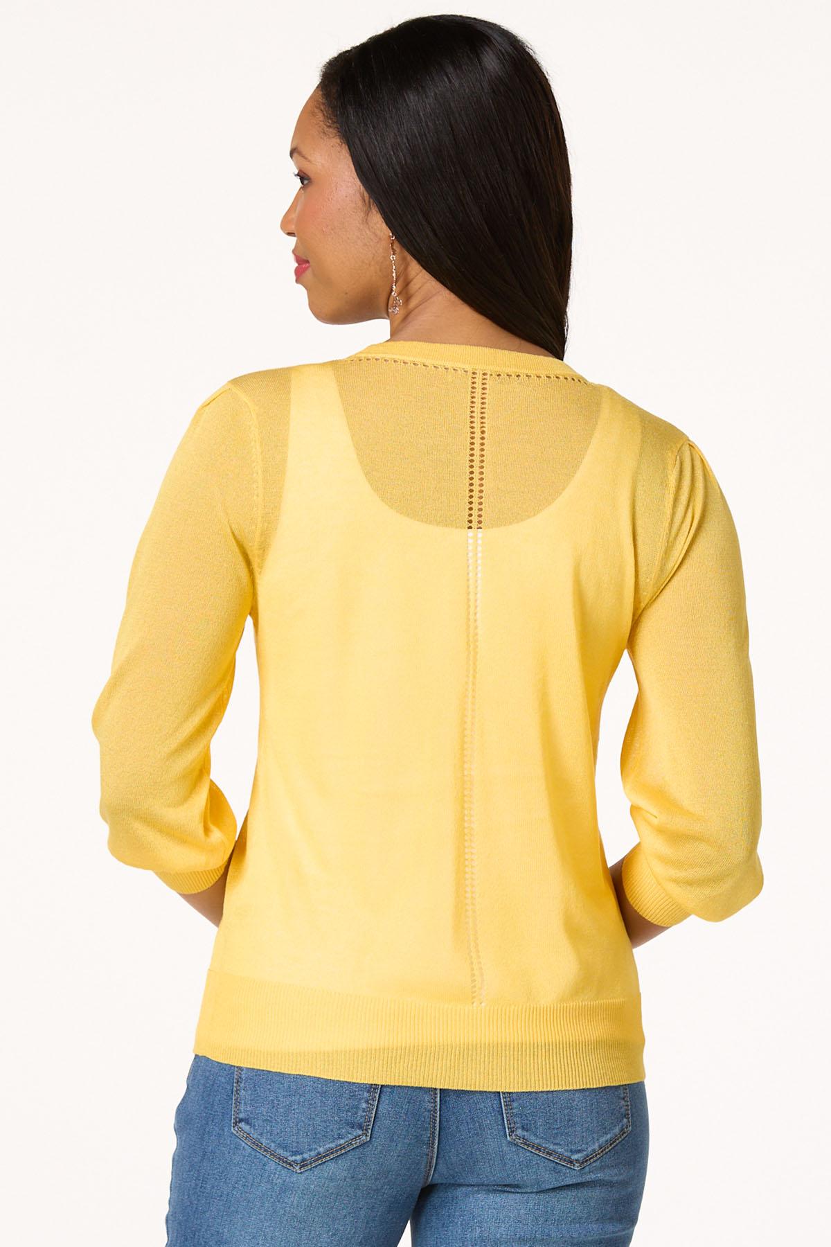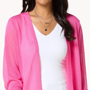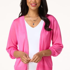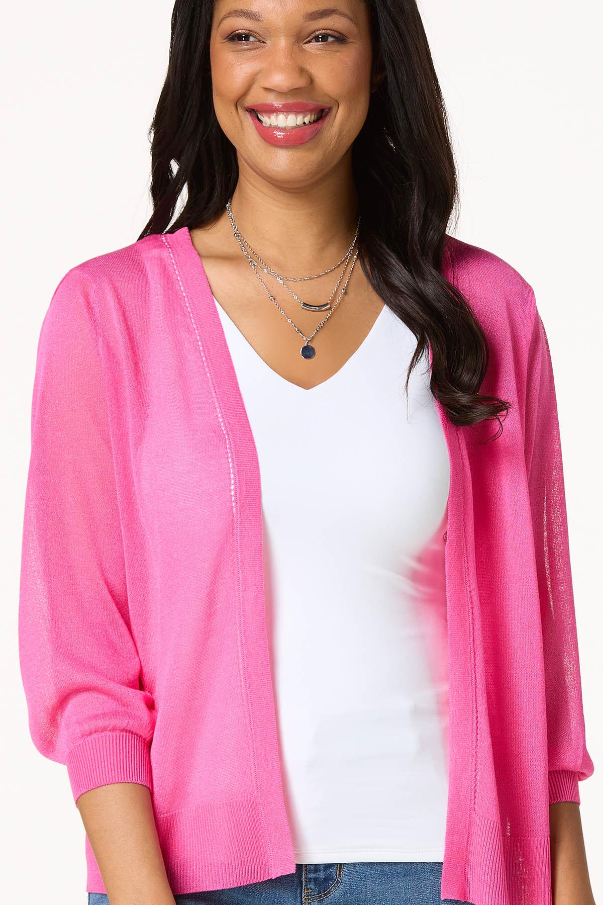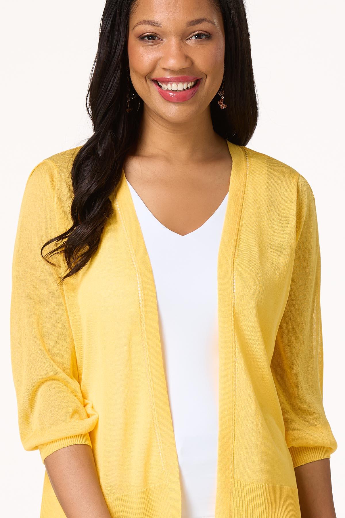 Add a pop of color to your everyday with this sheer, lightweight look. An open design, open stitch trim and relaxed fit top off an easy-breezy fit for a look you’ll love over those cool, sleeveless styles.