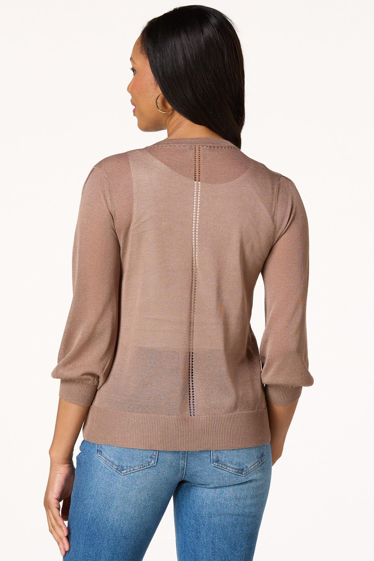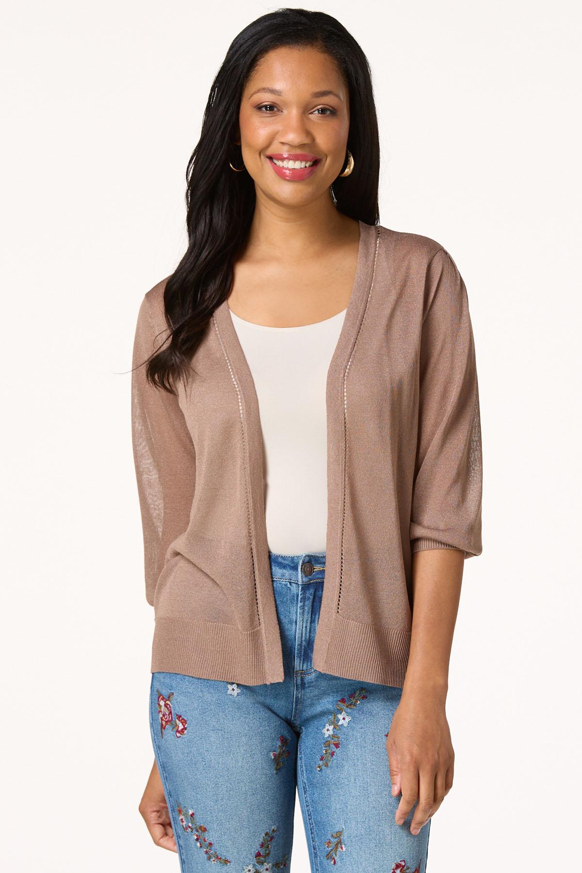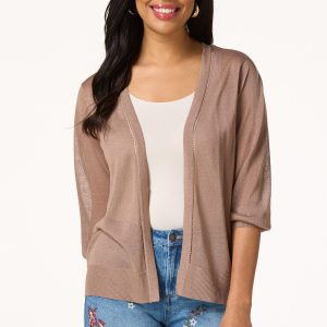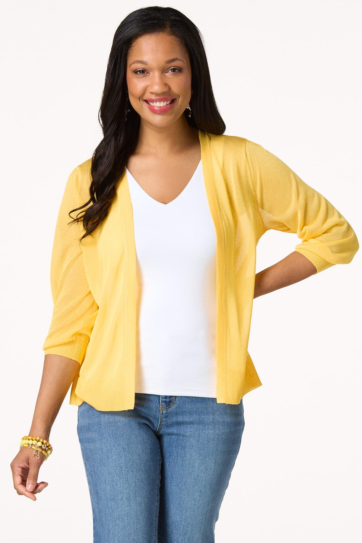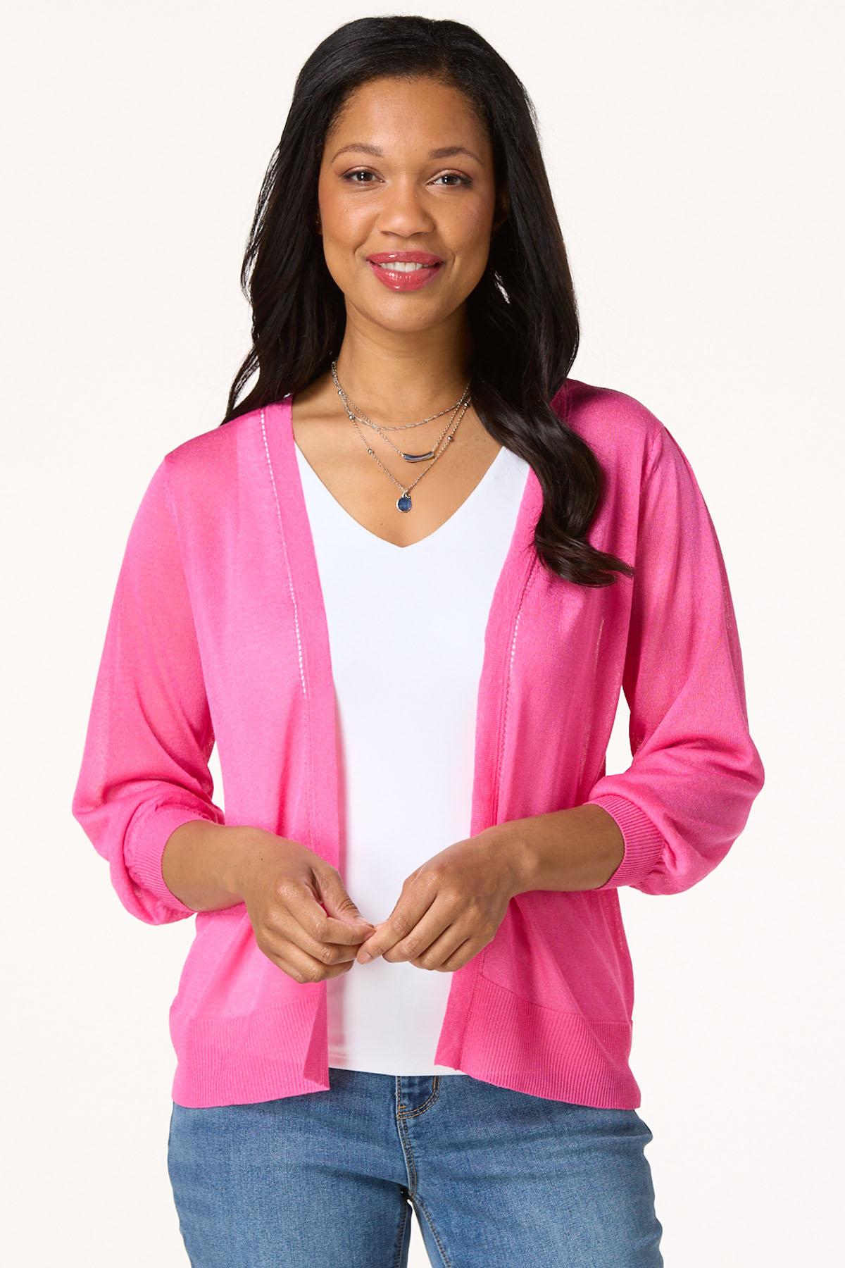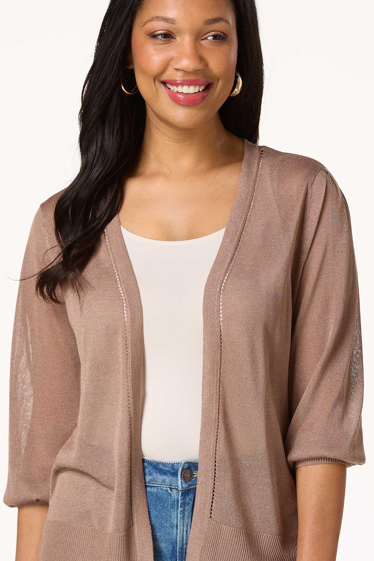 Add a pop of color to your everyday with this sheer, lightweight look. An open design, open stitch trim and relaxed fit top off an easy-breezy fit for a look you’ll love over those cool, sleeveless styles.